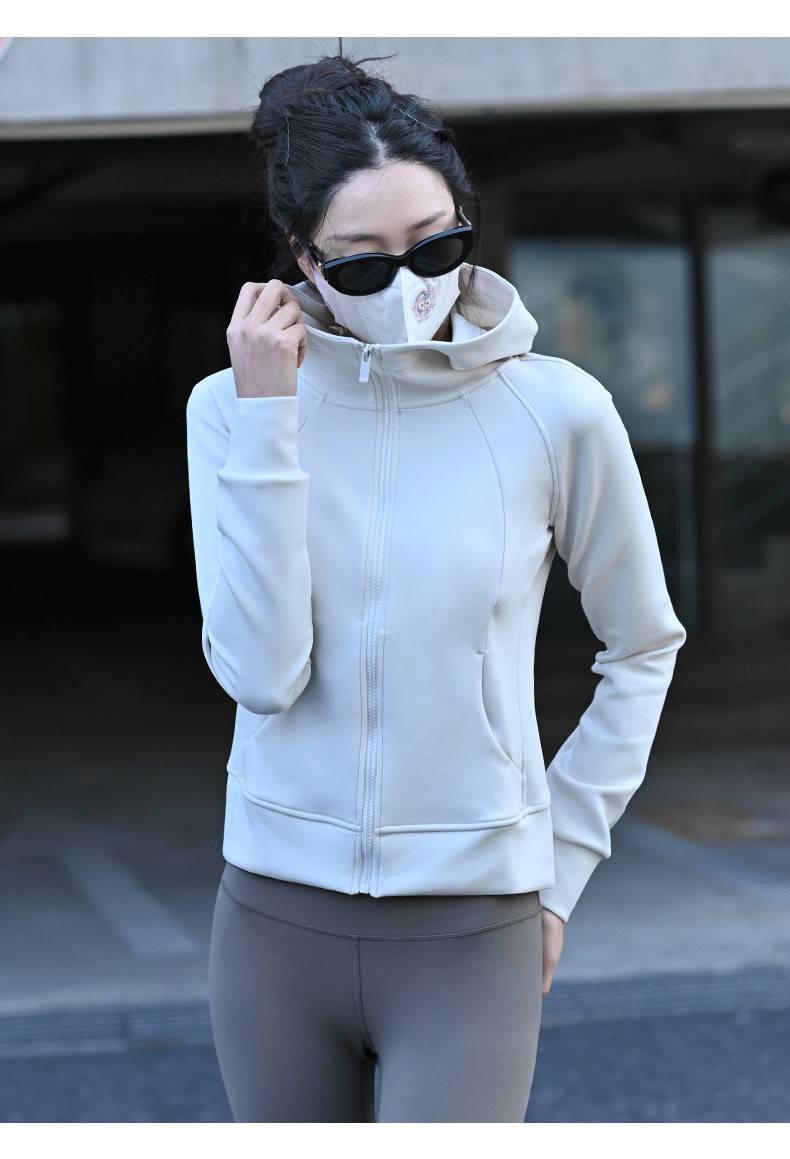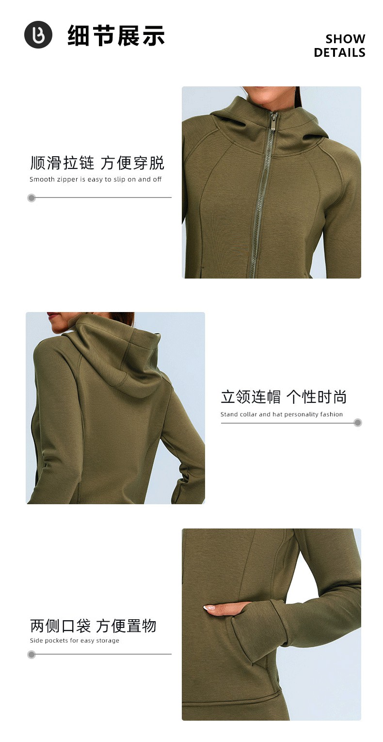 Beemen瑜伽服上衣女外穿秋冬季立领连帽运动长袖外套