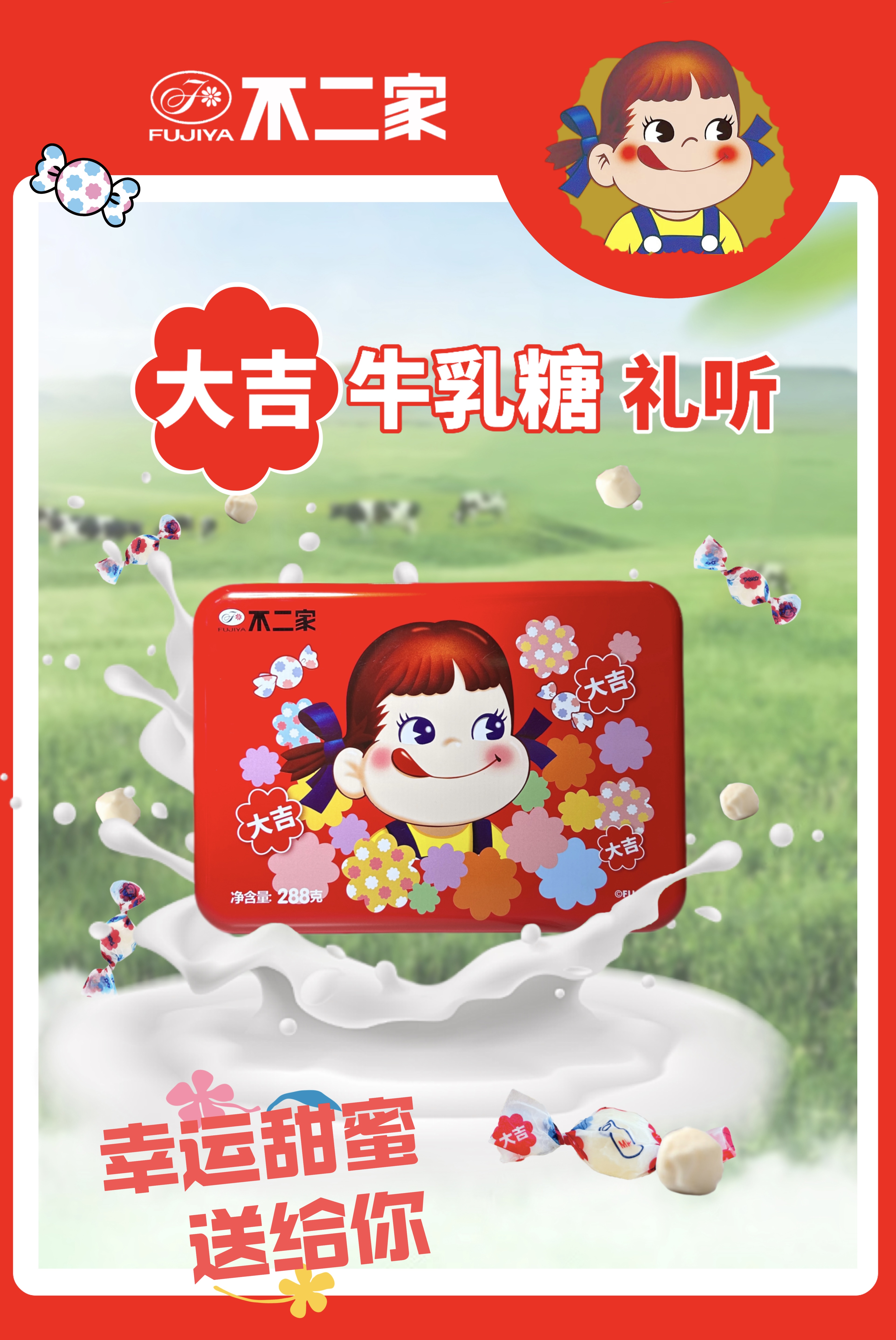 不二家原味牛乳糖288克(约85颗)礼听装 香醇牛奶糖礼物送女友 原味牛乳糖288克礼听(送礼袋)