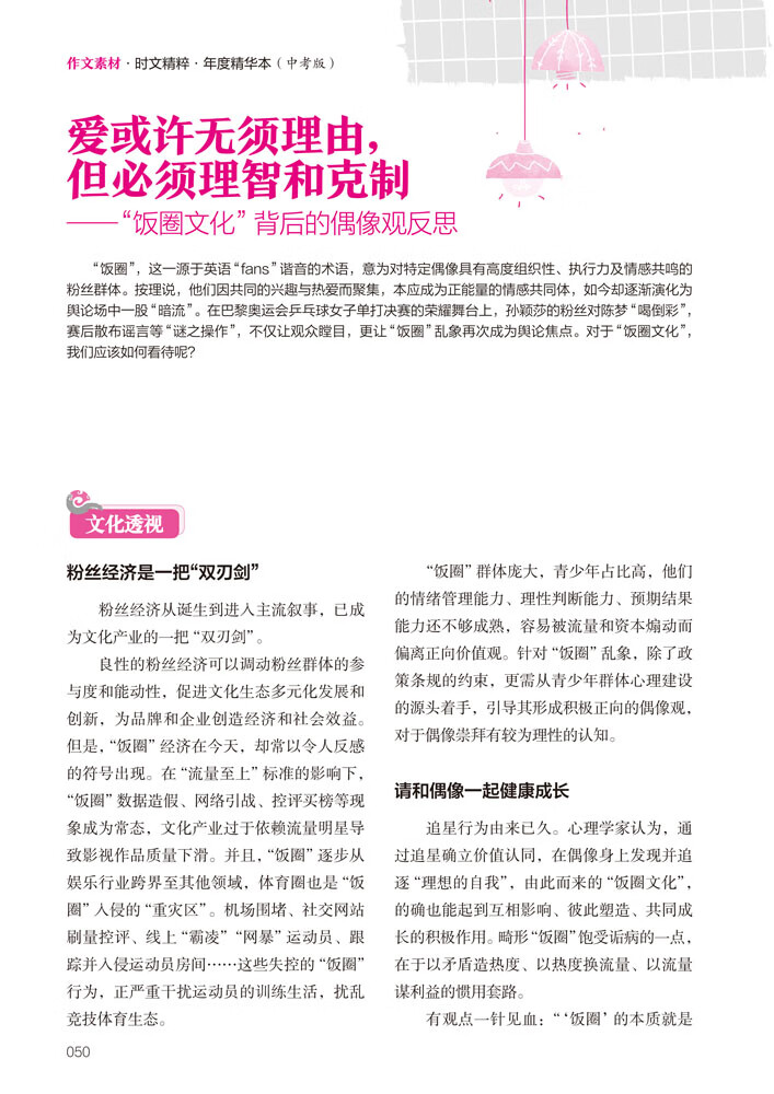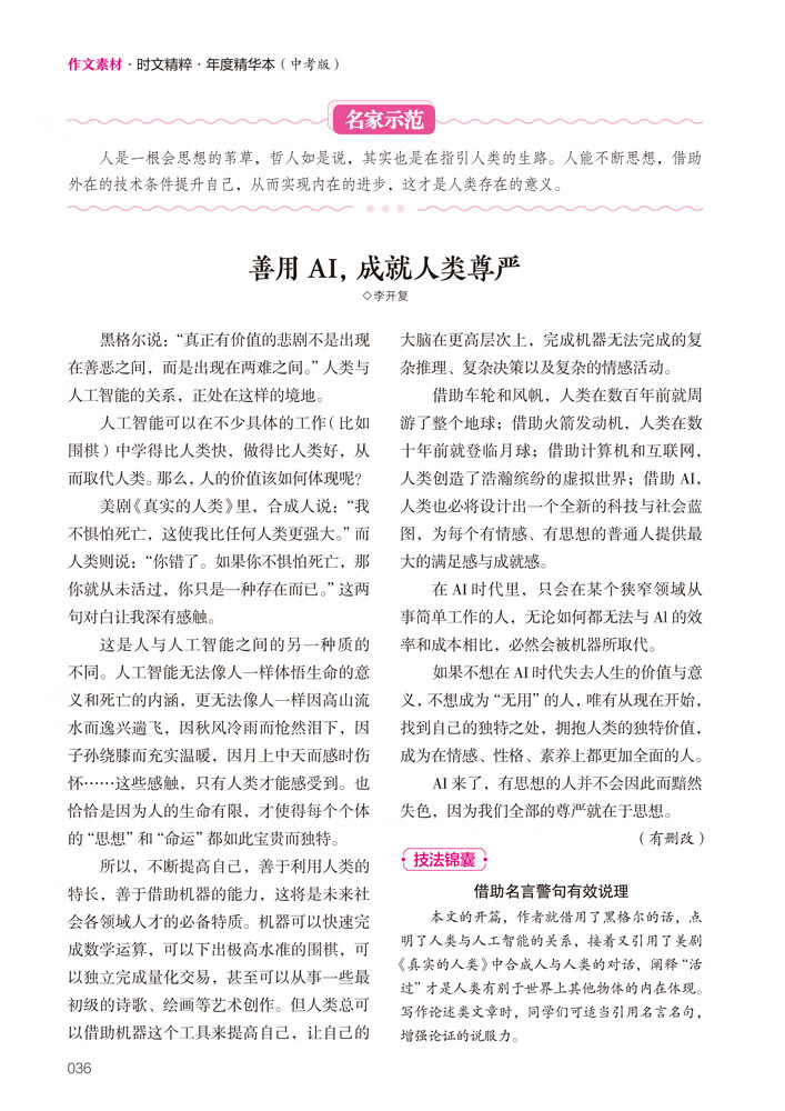 作文素材时文精粹年度精华本中考版(备考2026年)(WX)