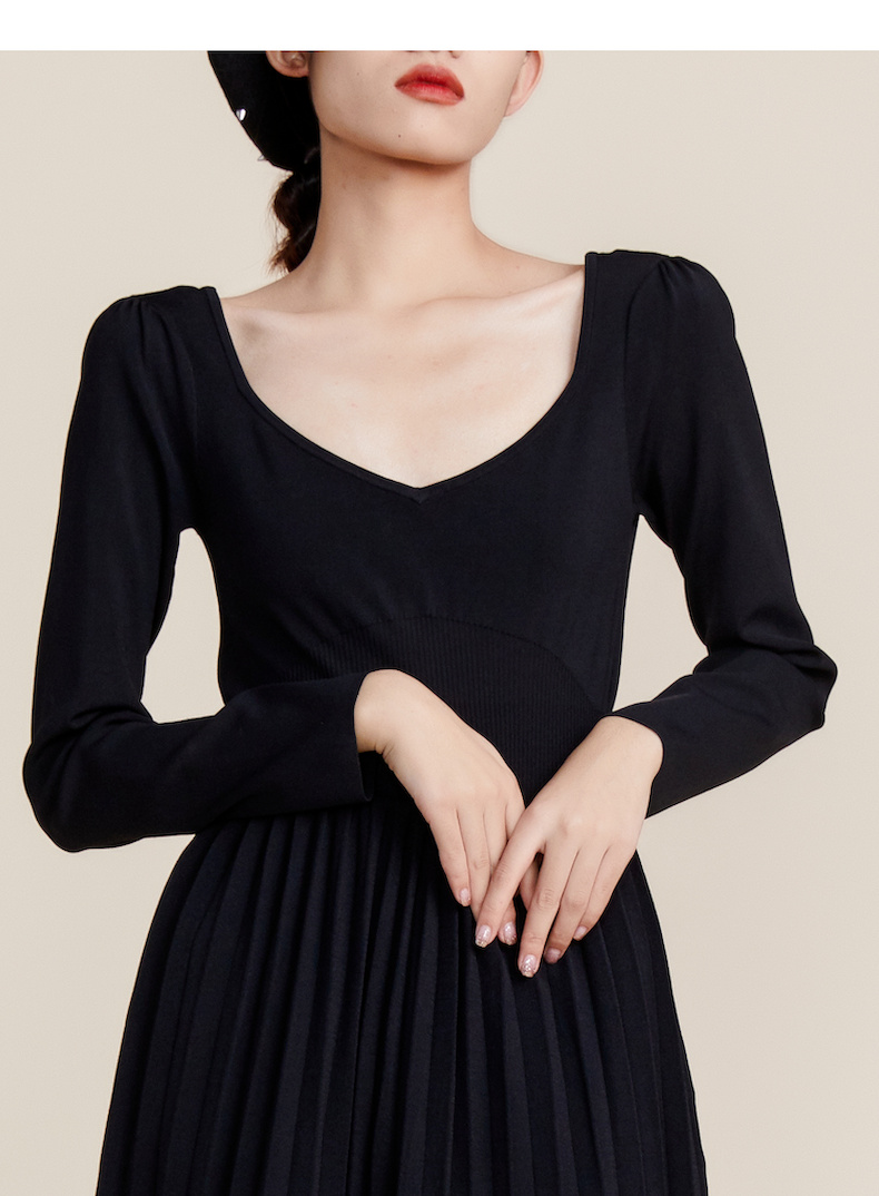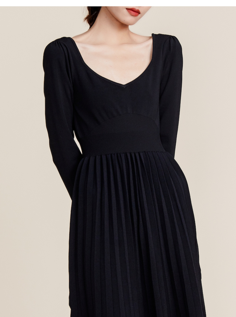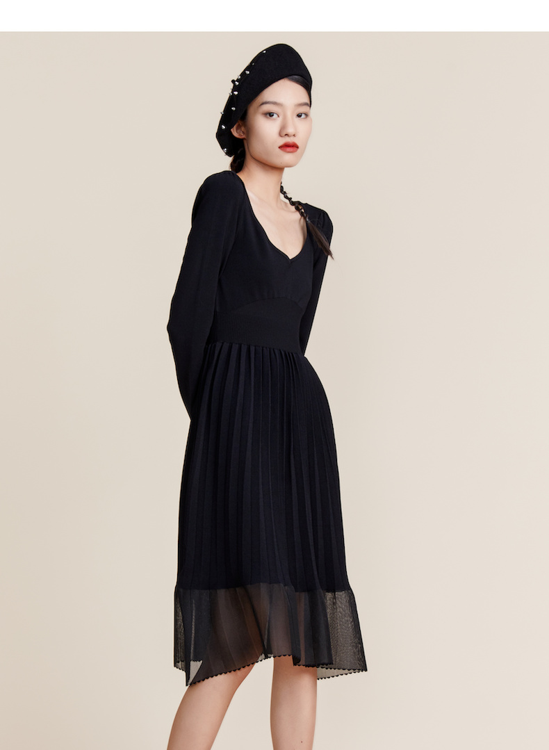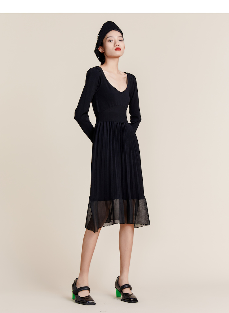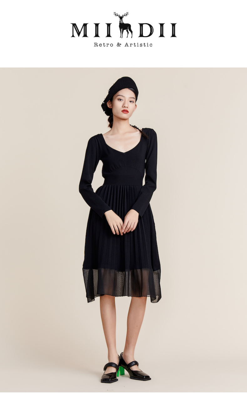 MIIDII谜底2022春新款简约优雅V领收腰显瘦针织连衣裙221MZ0328