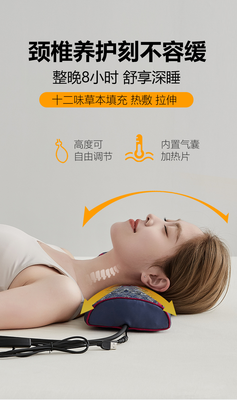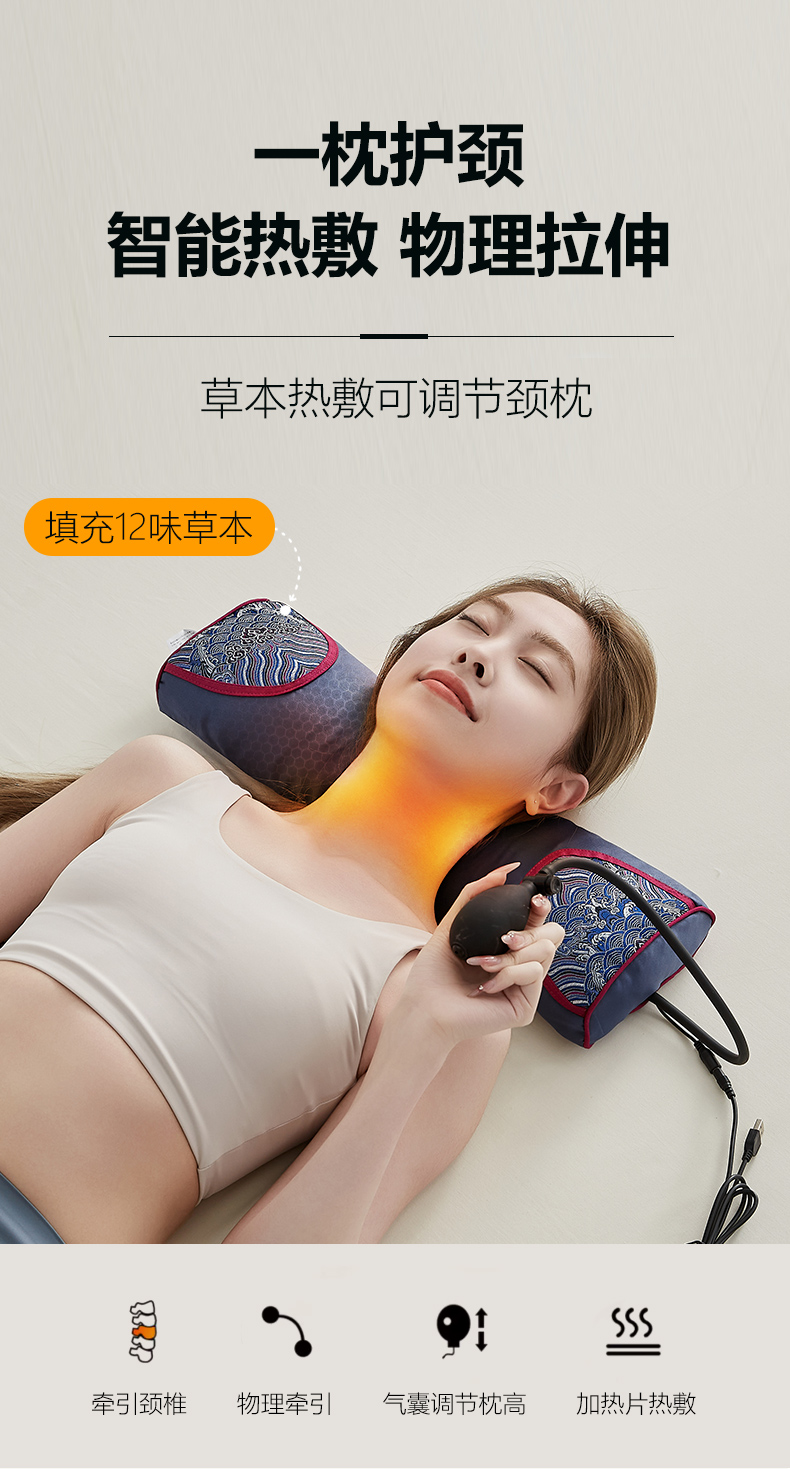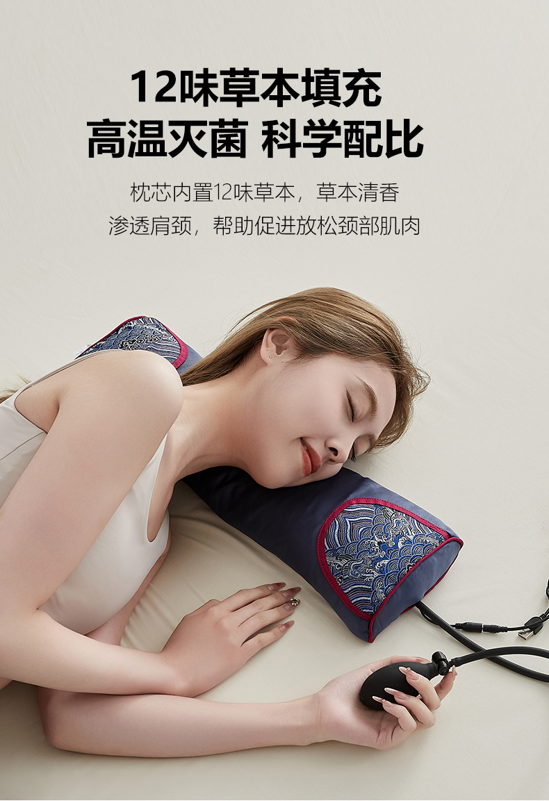 自然醒草本热敷可调节颈枕决明子艾草荞麦壳枕调节高度加热可拆洗手工睡眠枕LK