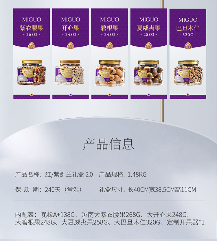 觅菓紫剑兰时尚坚果礼盒 2.0版-1.48kg【年货】KY