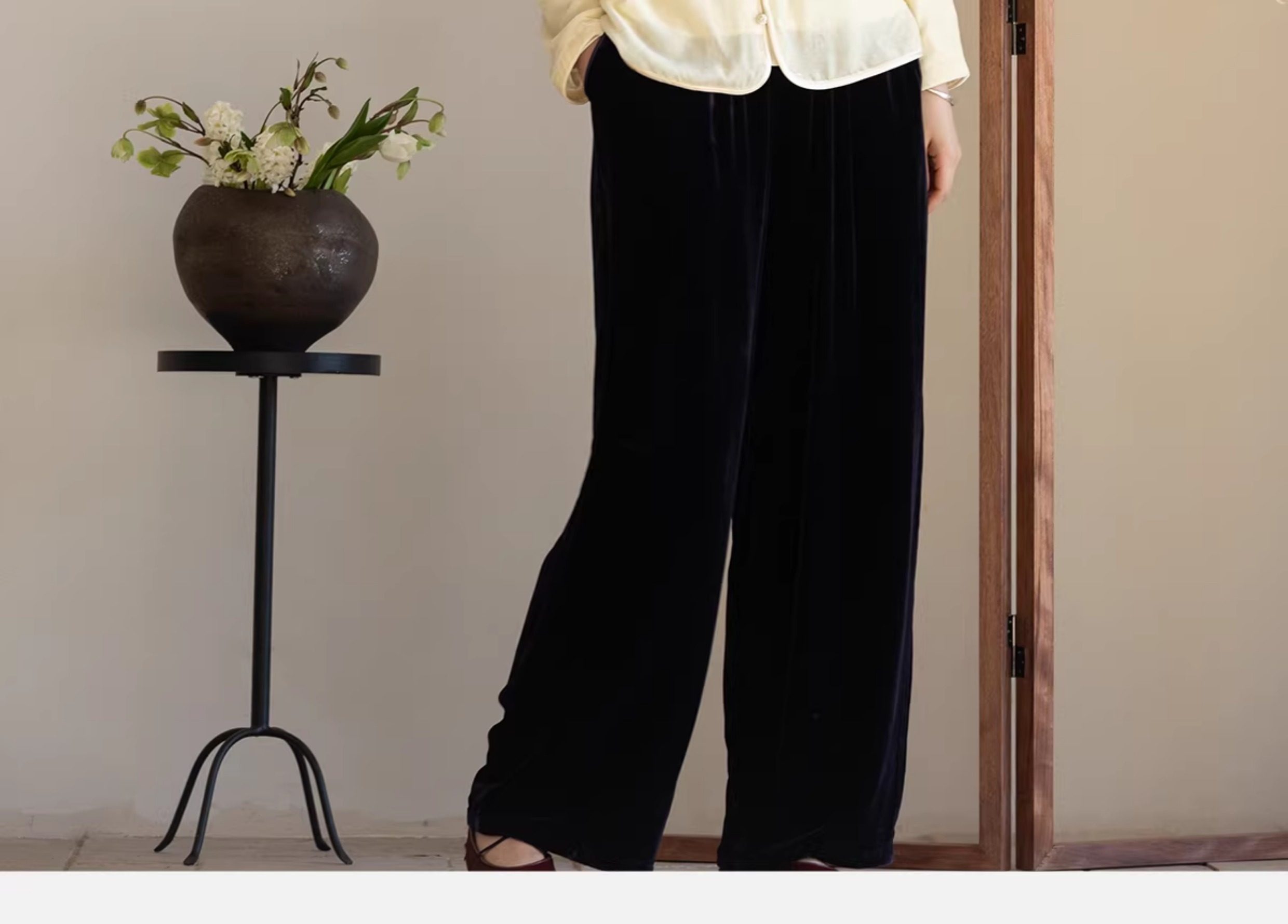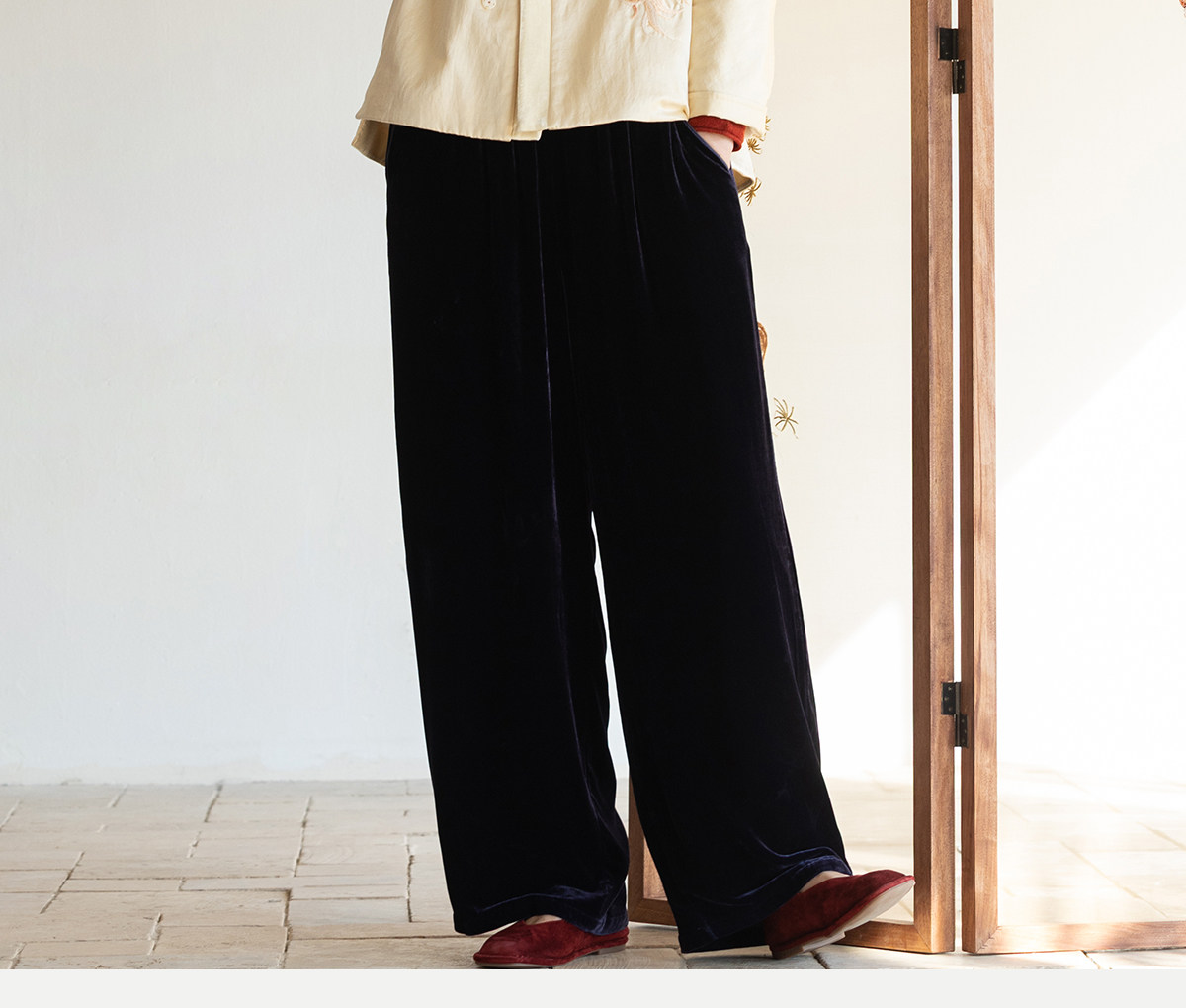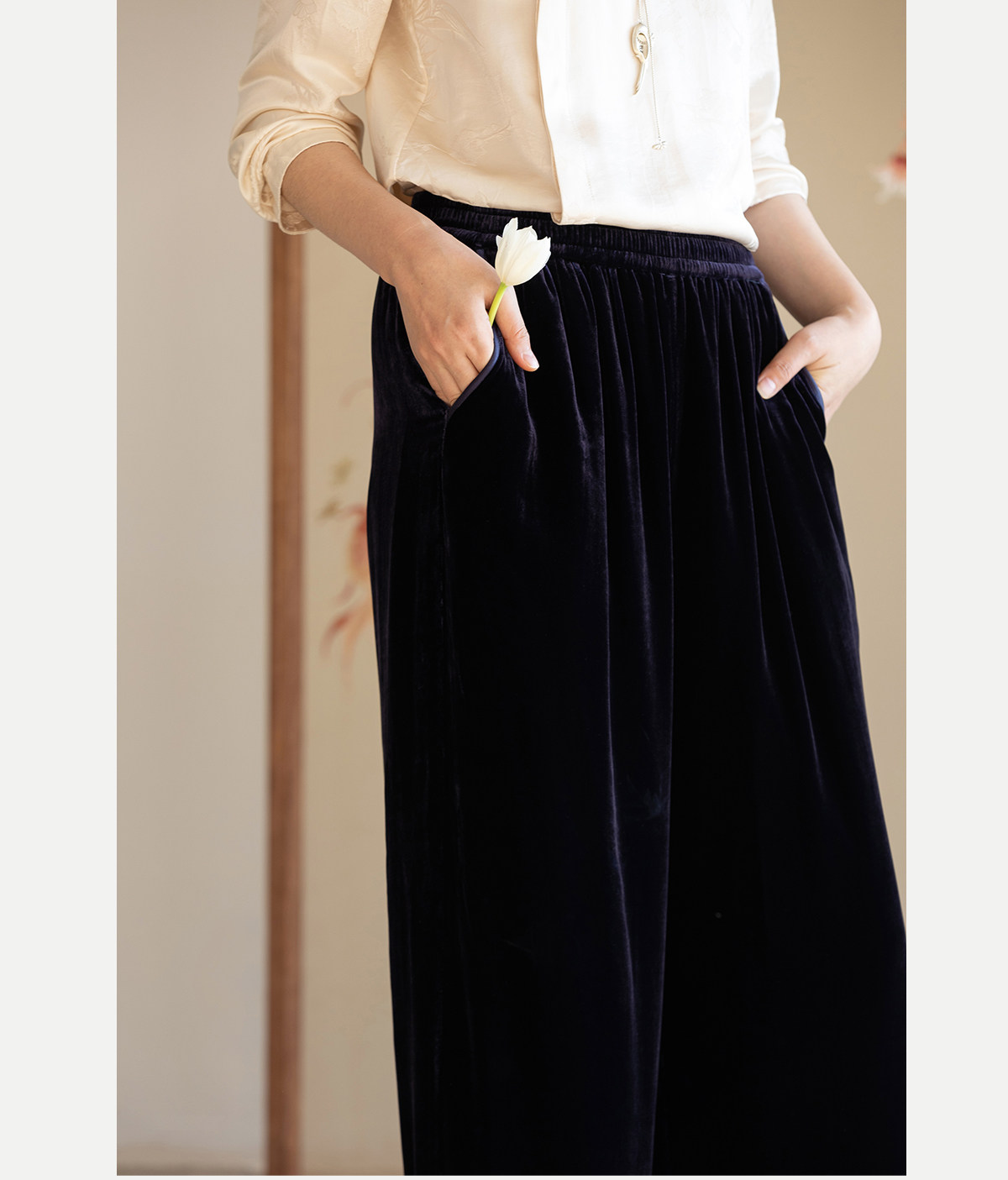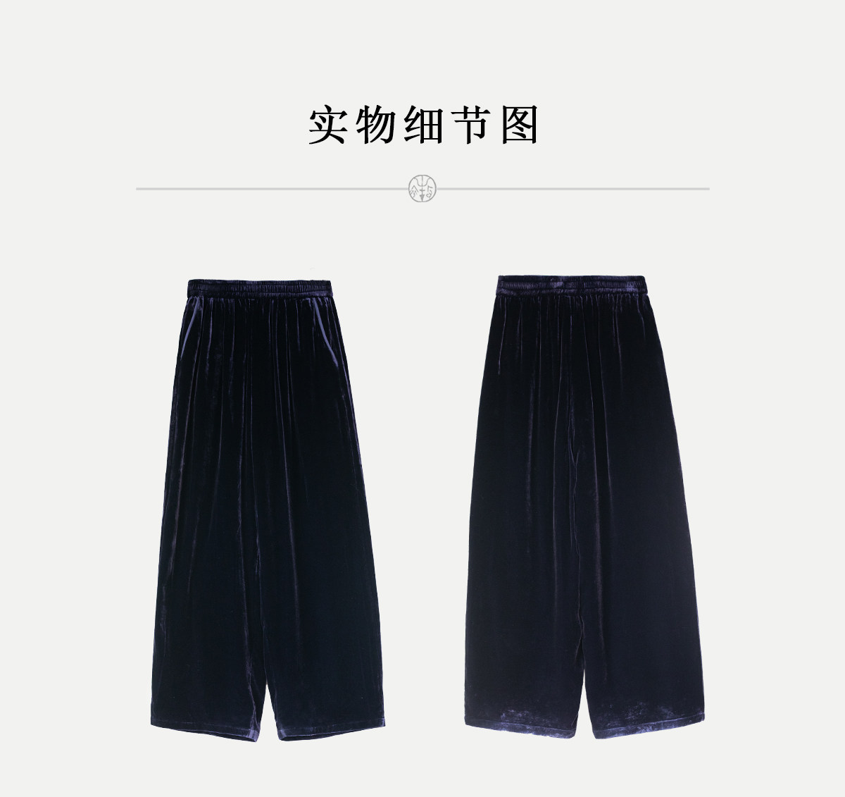 牧衣游原创 丝绒净色休闲长裤新款通勤文艺随性宽松直筒裤 影英