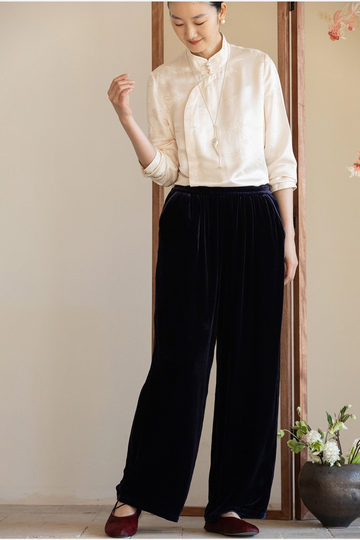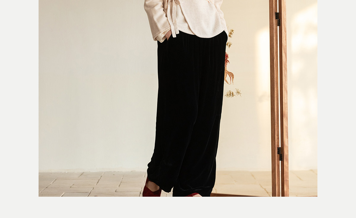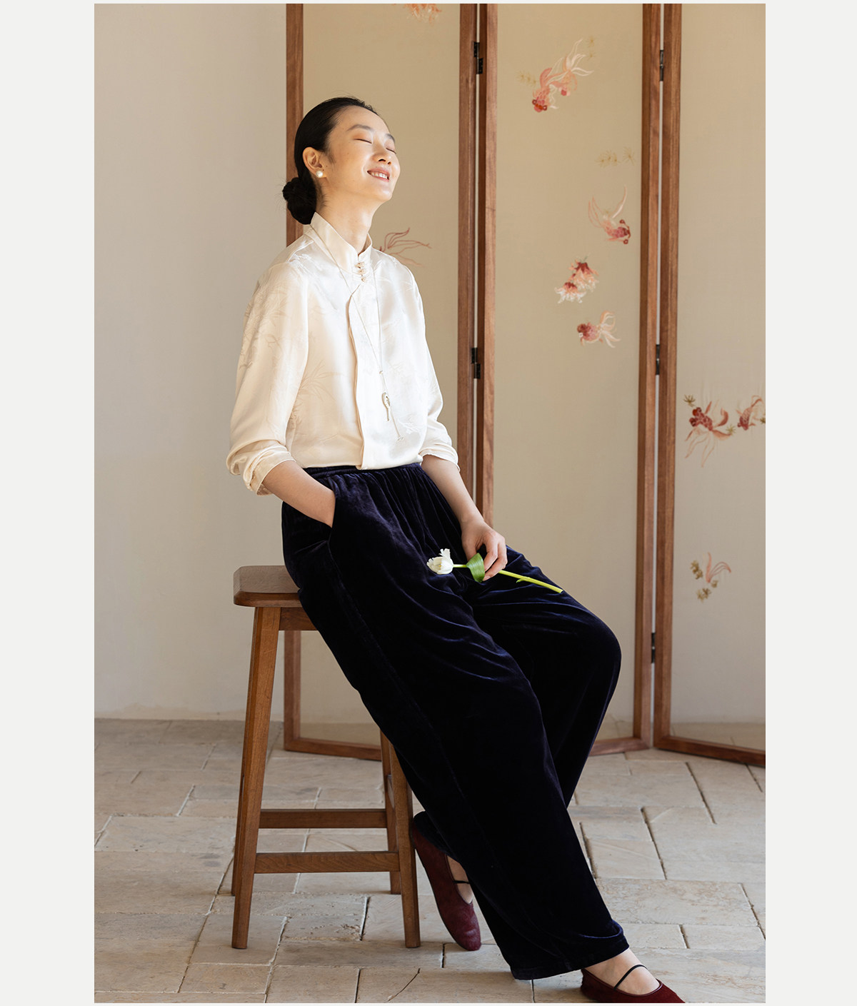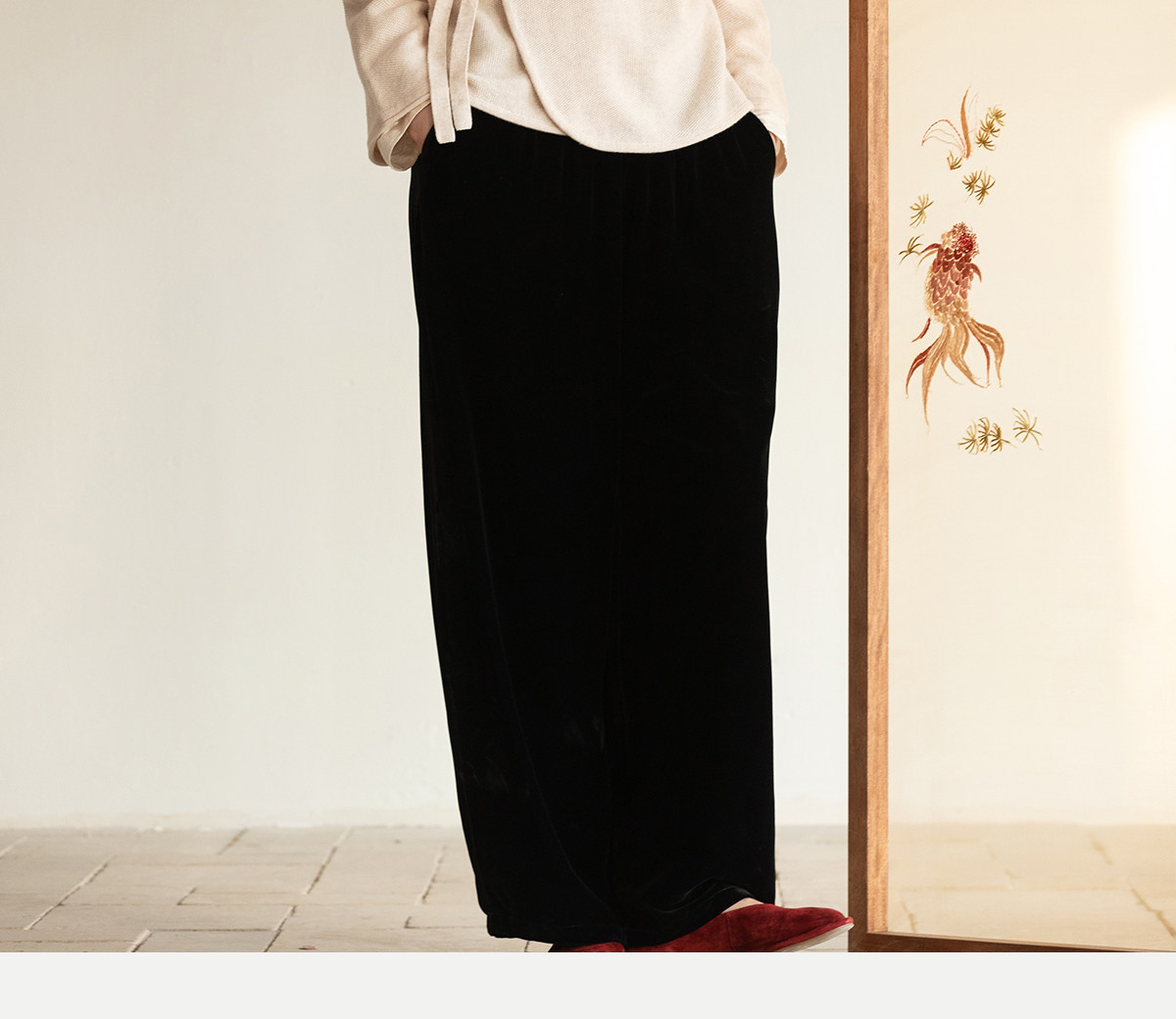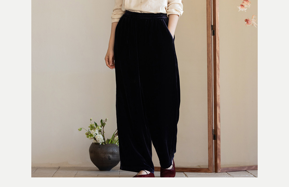牧衣游原创 丝绒净色休闲长裤新款通勤文艺随性宽松直筒裤 影英