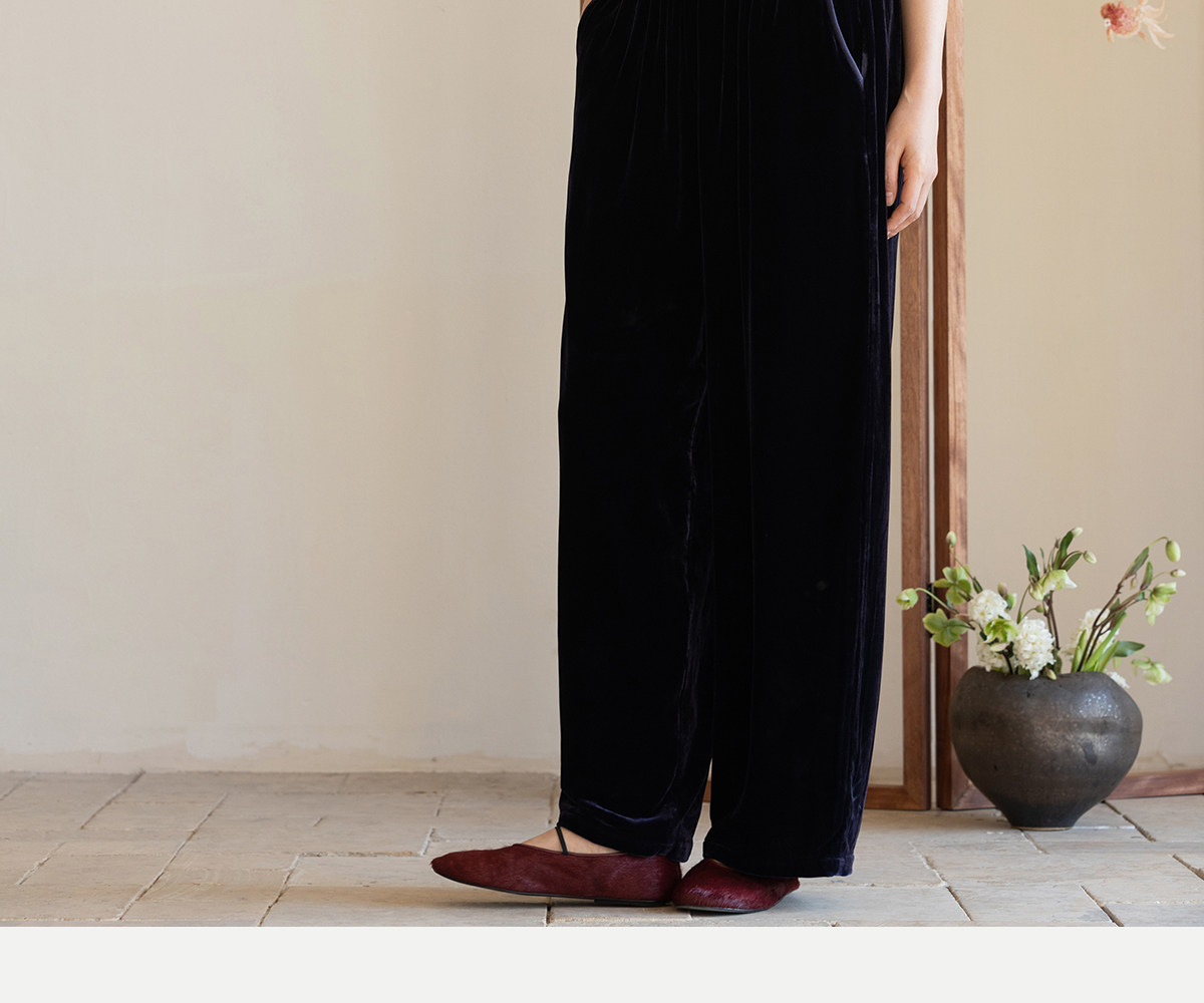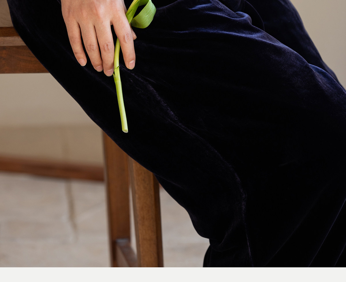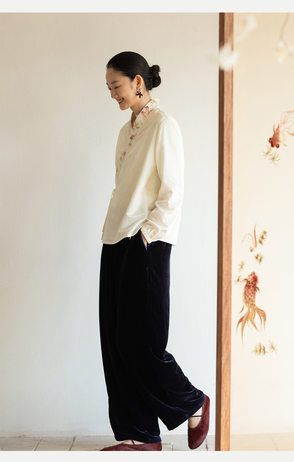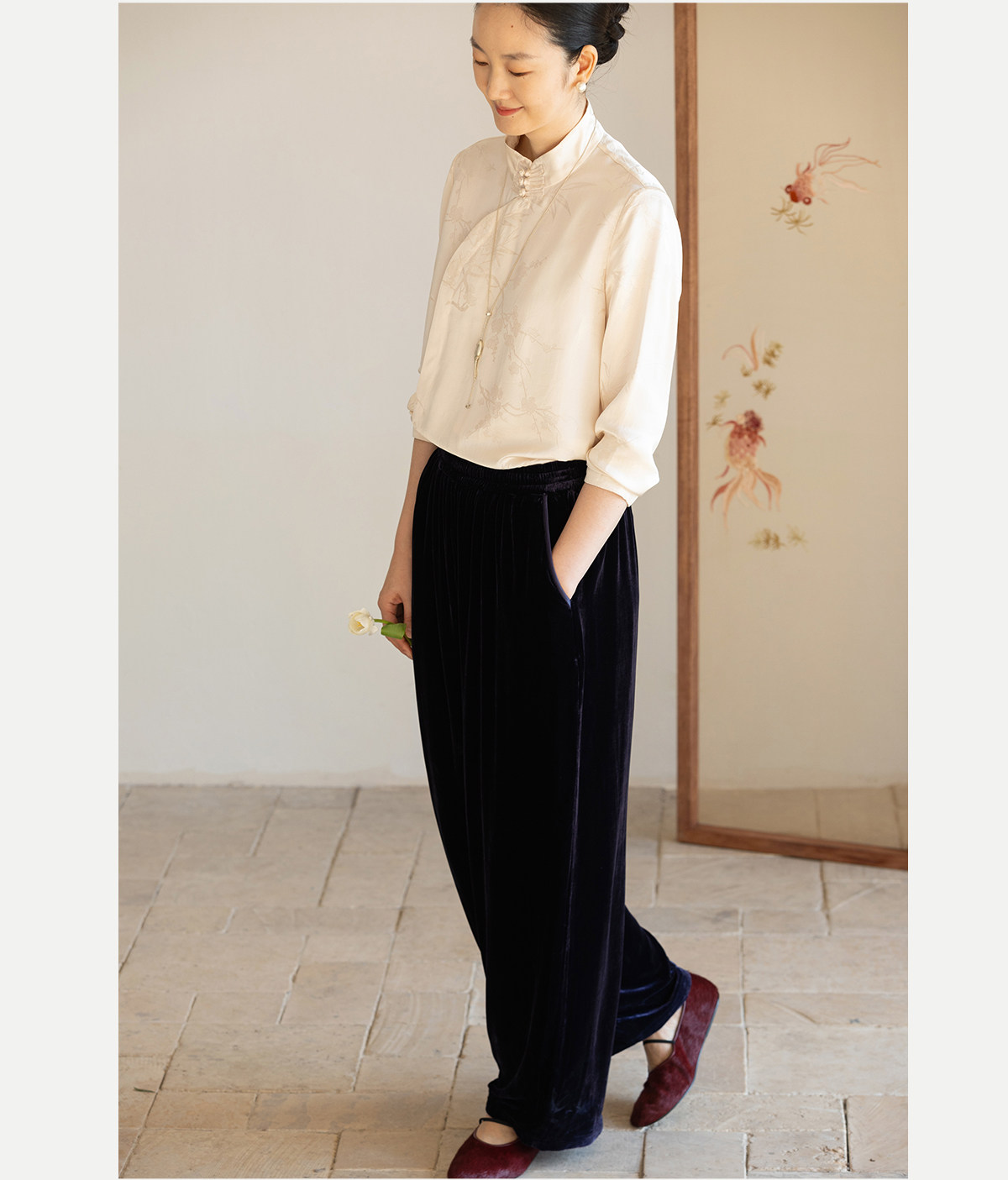 牧衣游原创 丝绒净色休闲长裤新款通勤文艺随性宽松直筒裤 影英