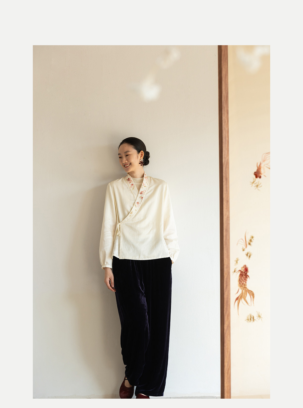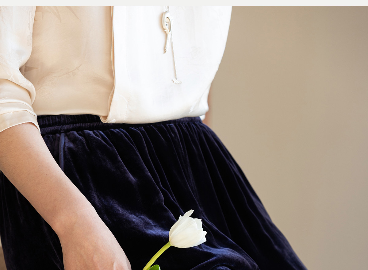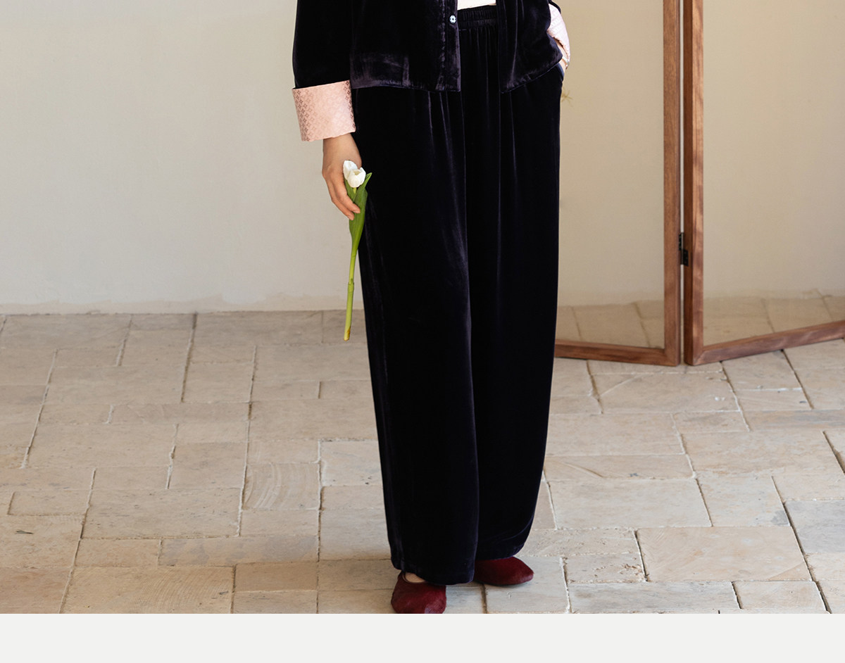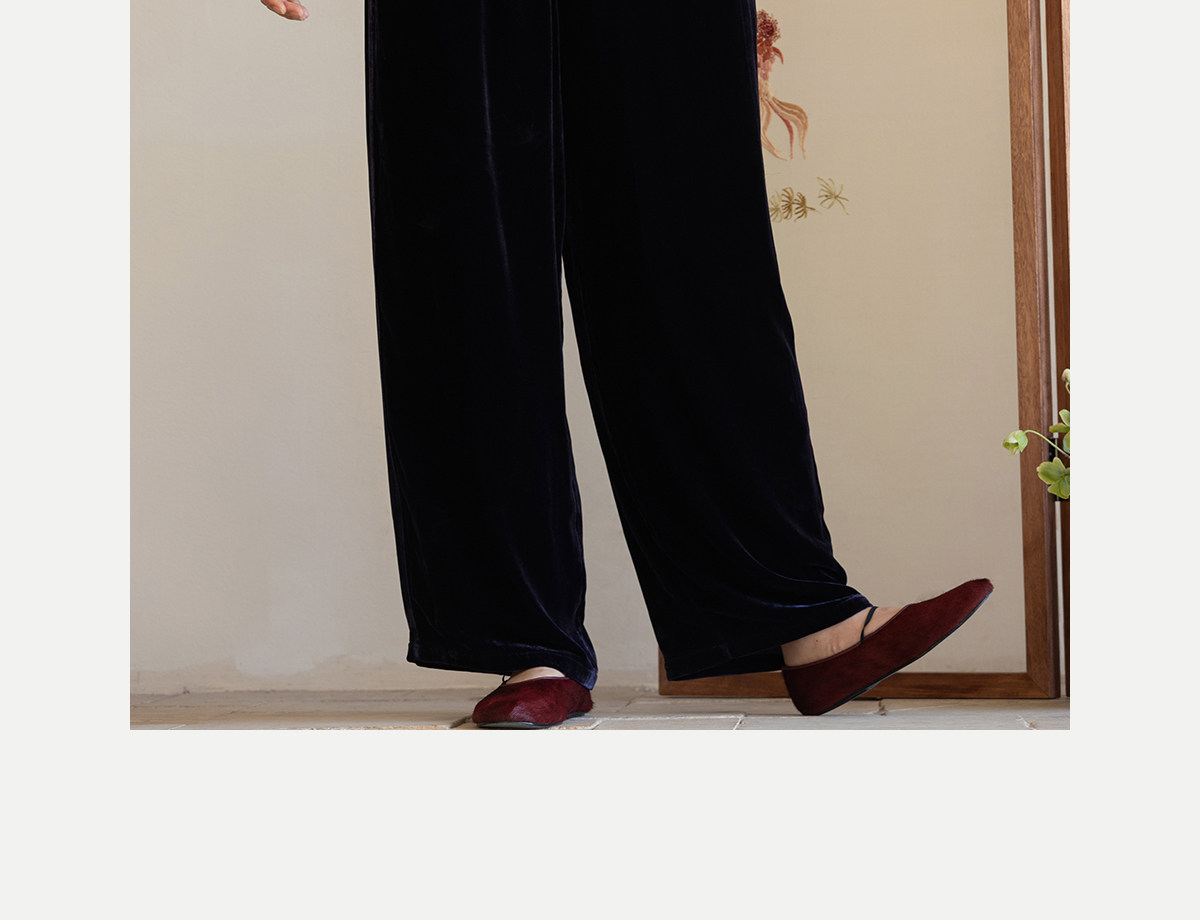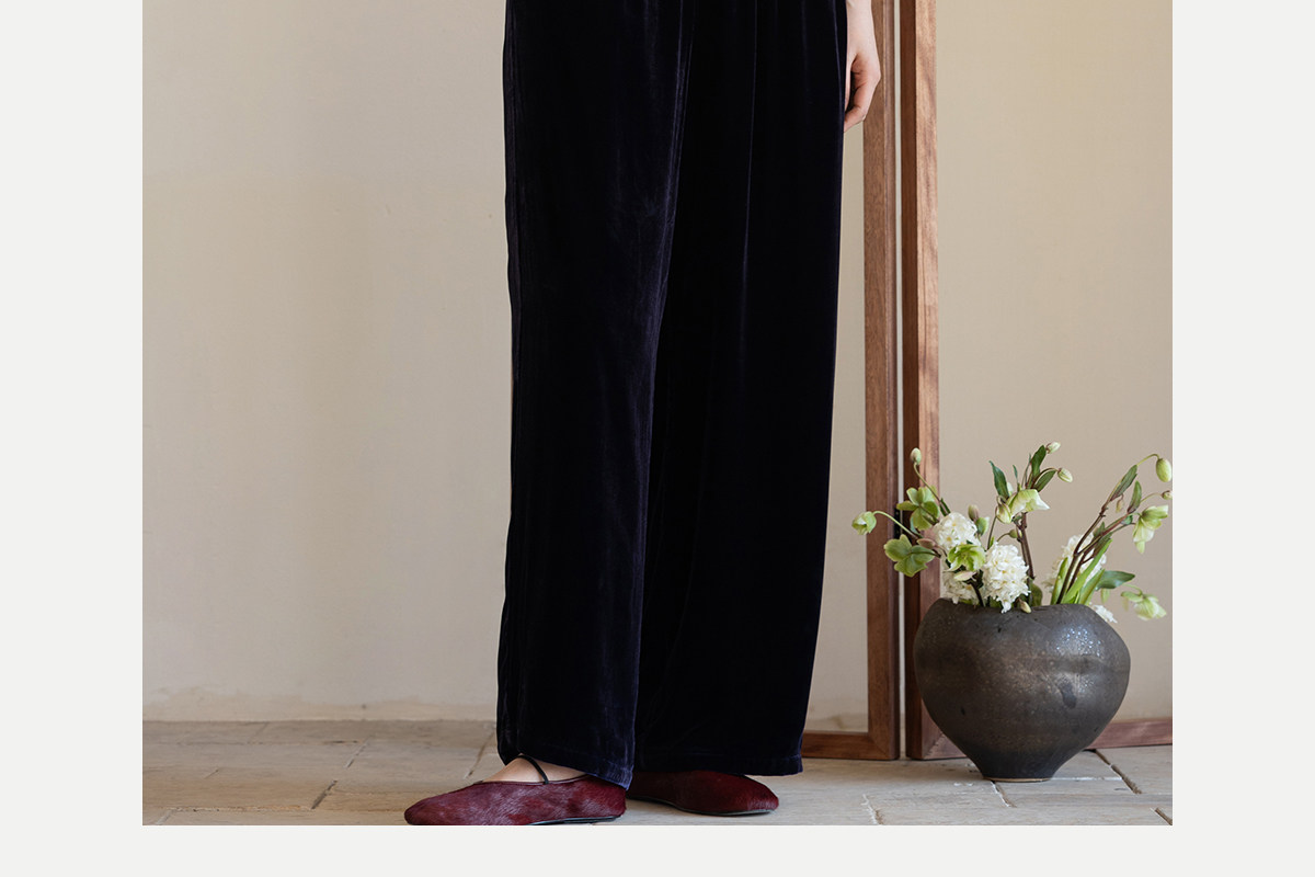 牧衣游原创 丝绒净色休闲长裤新款通勤文艺随性宽松直筒裤 影英