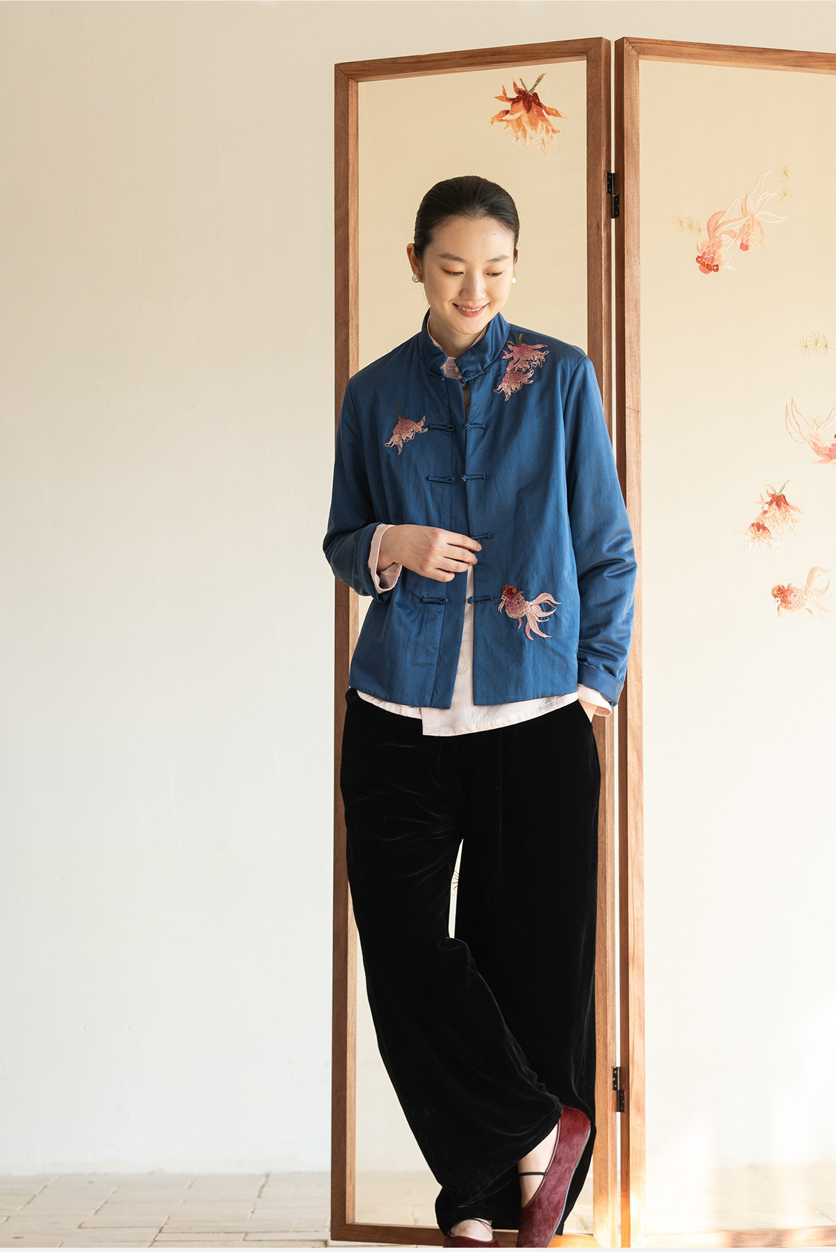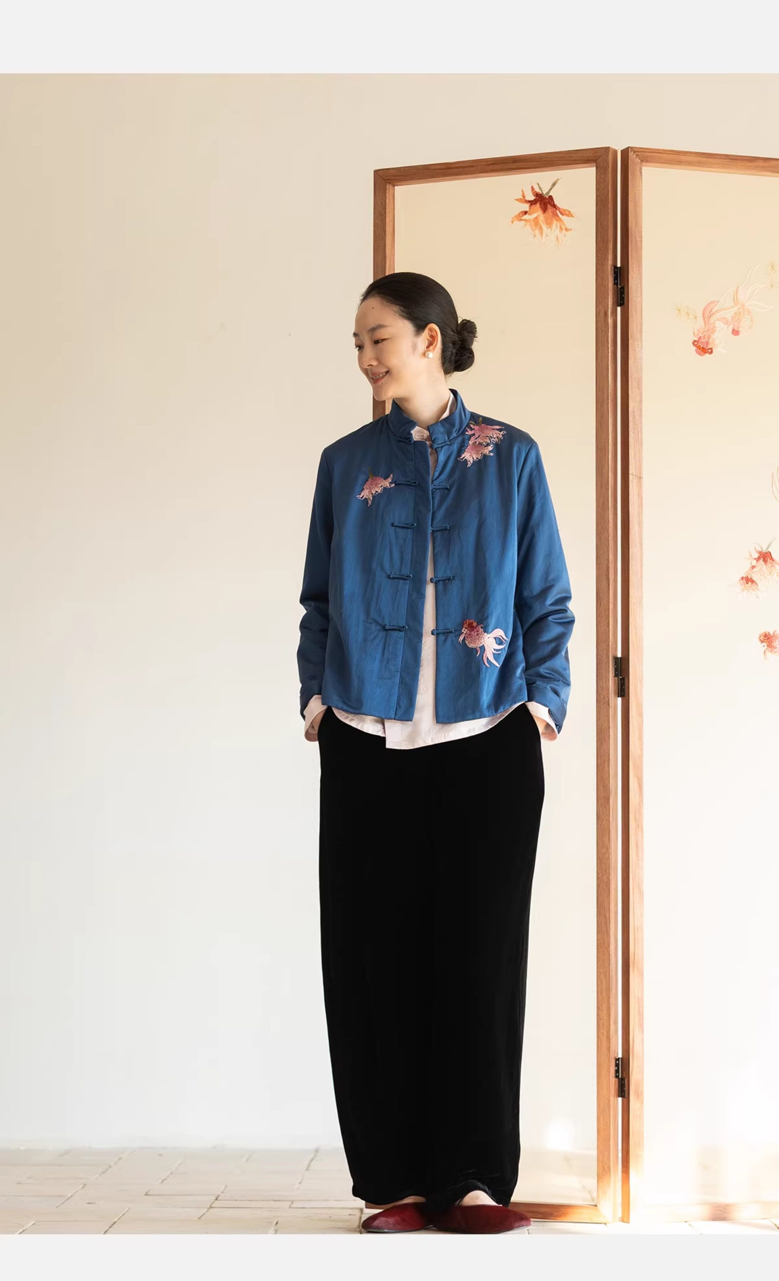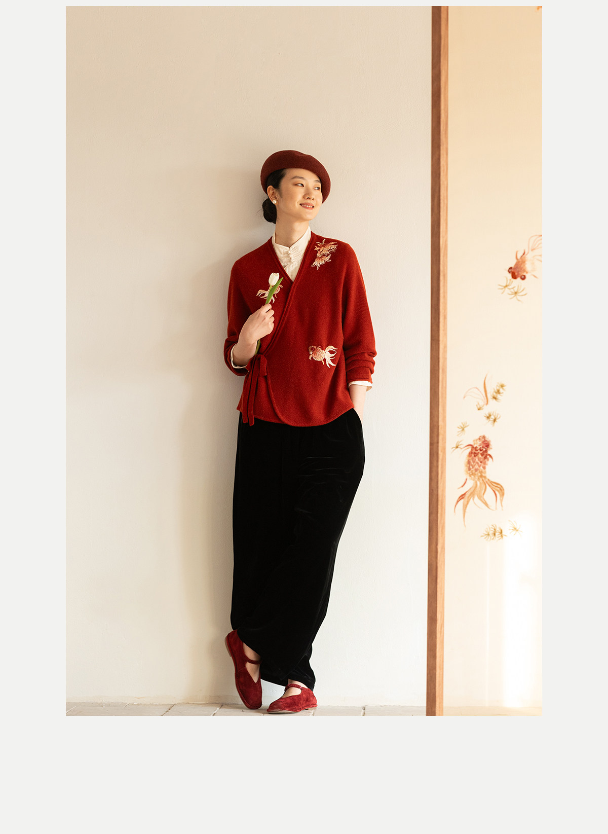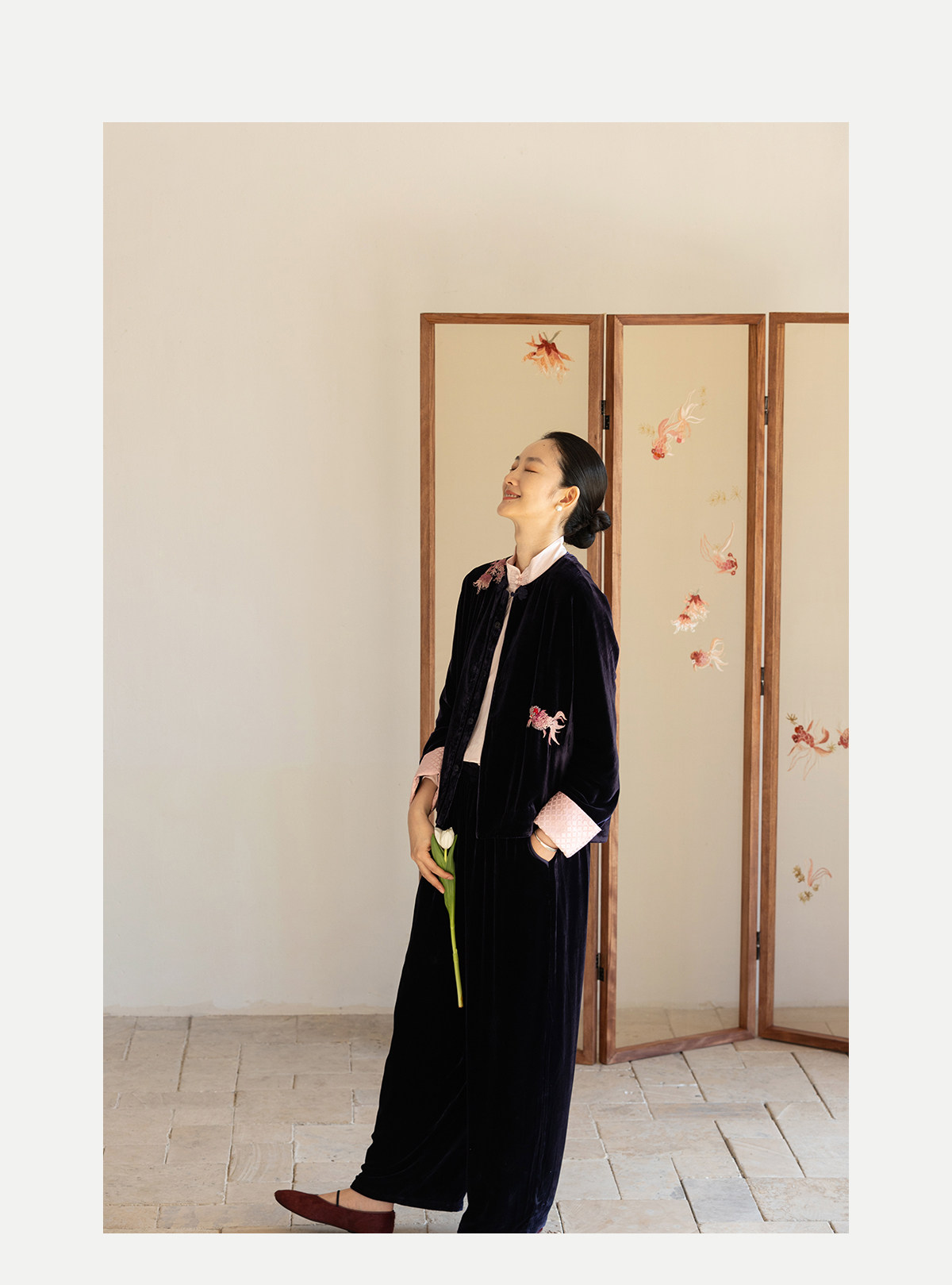 牧衣游原创 丝绒净色休闲长裤新款通勤文艺随性宽松直筒裤 影英
