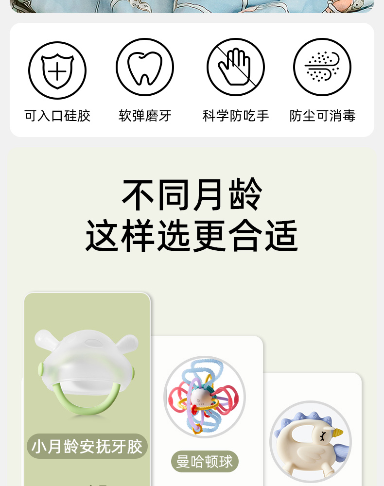 【安抚玩乐】嫚熙婴儿牙胶0-6个月3小月龄口欲期玩具防吃手磨牙棒宝宝安抚咬胶