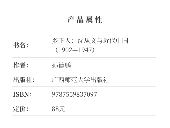 乡下人:沈从文与近代中国(1902—1947)——孙德鹏 著 广西师范大学出版社