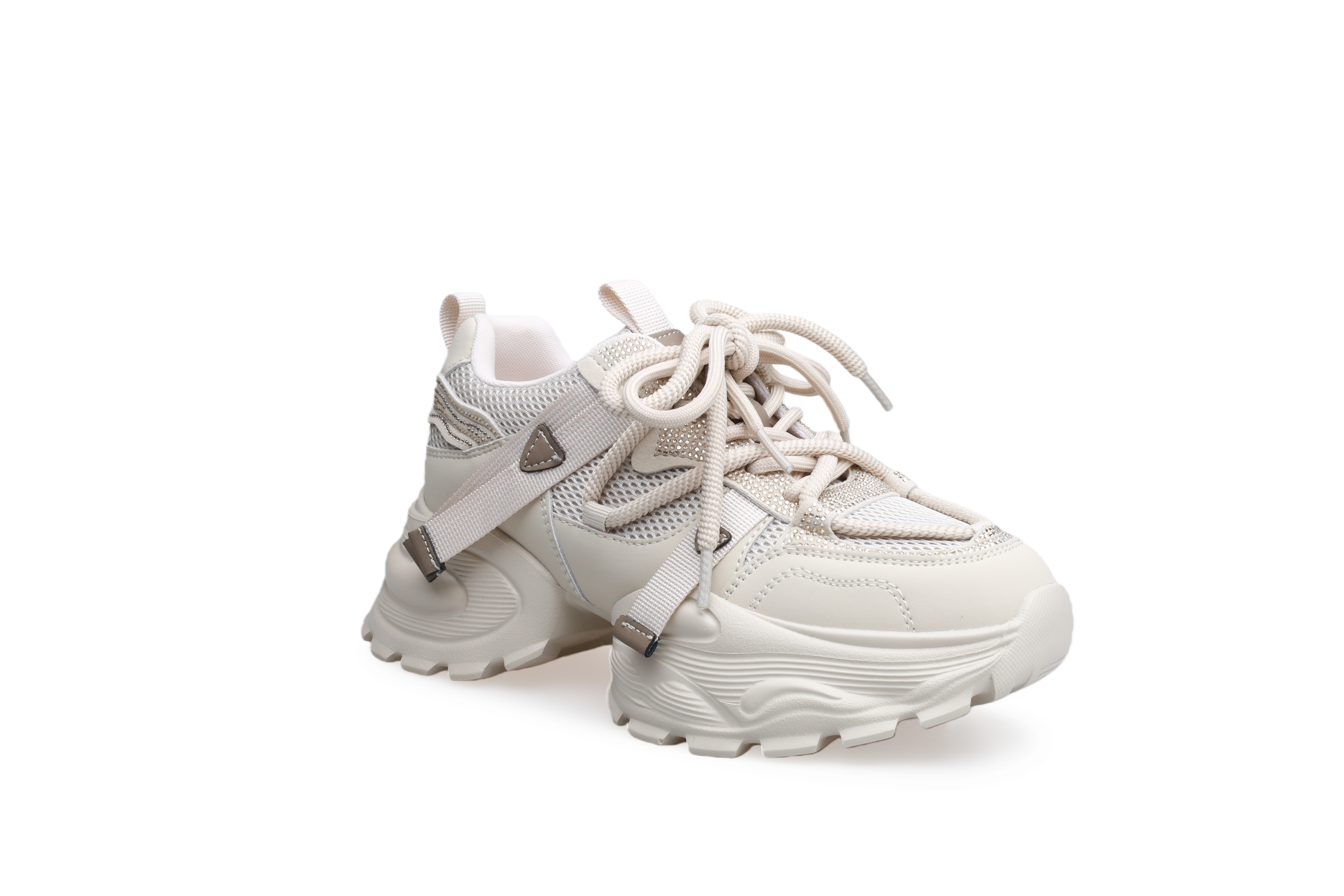 豪麟名鞋奥莱迪嘉女鞋时尚老爹鞋牛皮革/织物DJYSO52WX212杏色 原价1660元