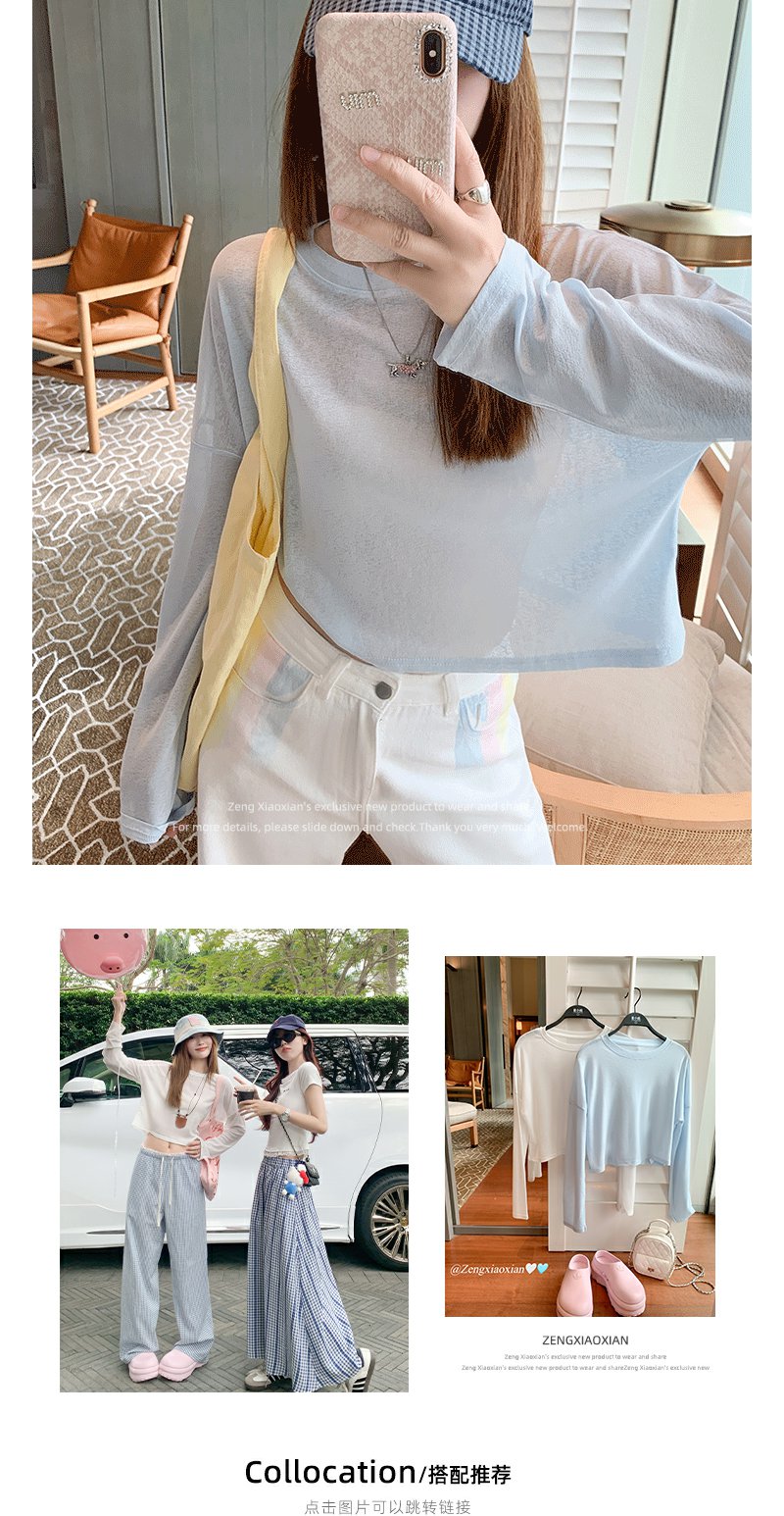 <曾小咸推荐>宽松长袖防晒T恤短款罩衫上衣【预售3-15天发货】