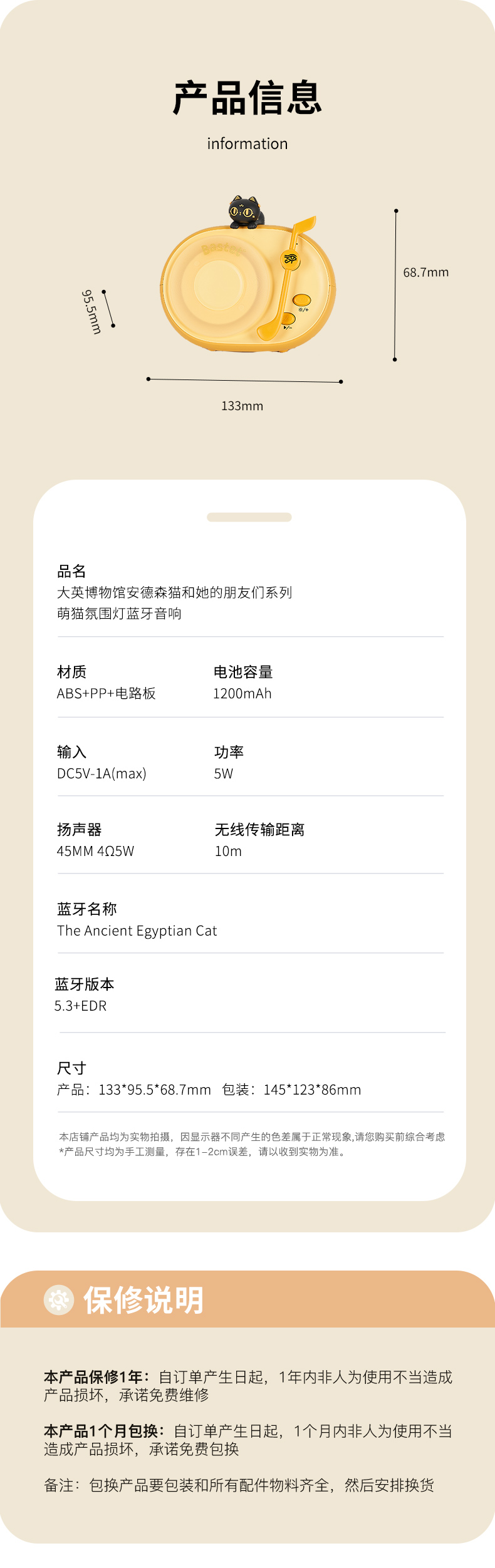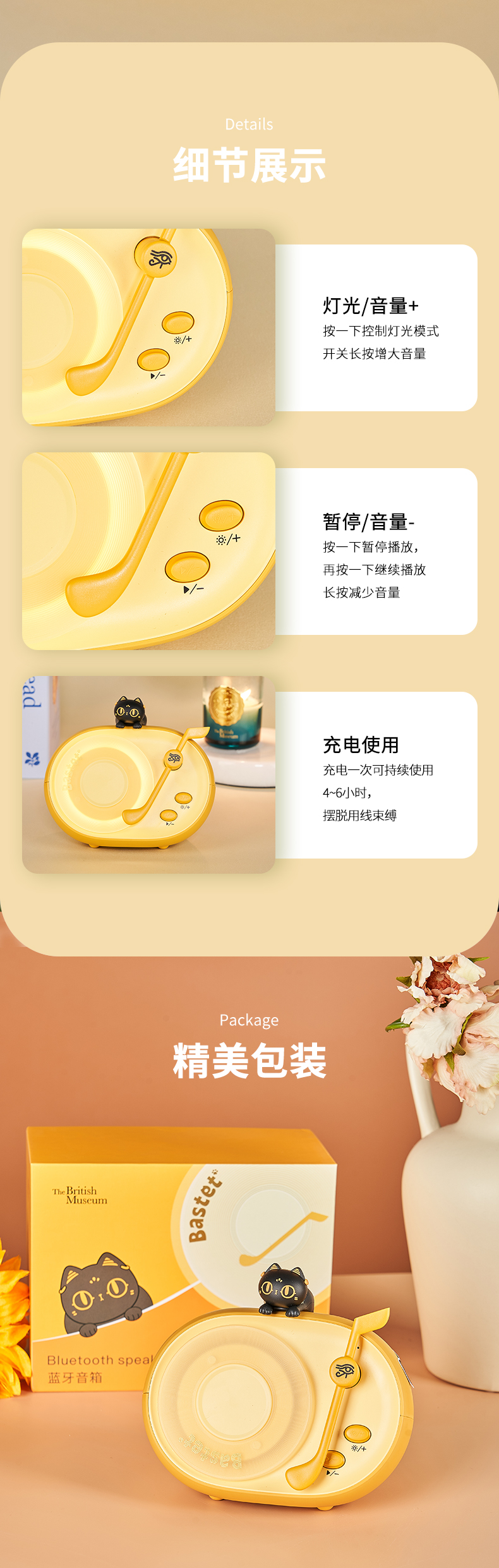大英博物馆 盖亚·安德森猫和她的朋友们系列 萌猫氛围灯蓝牙音响