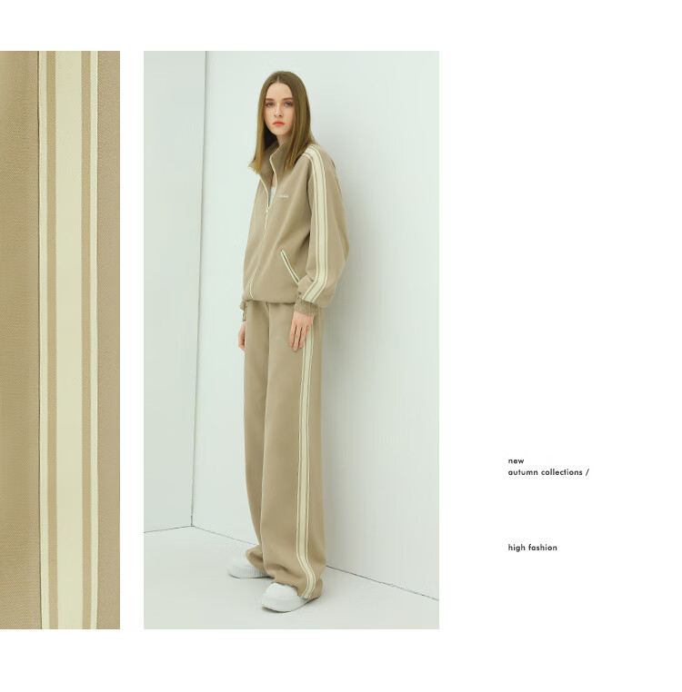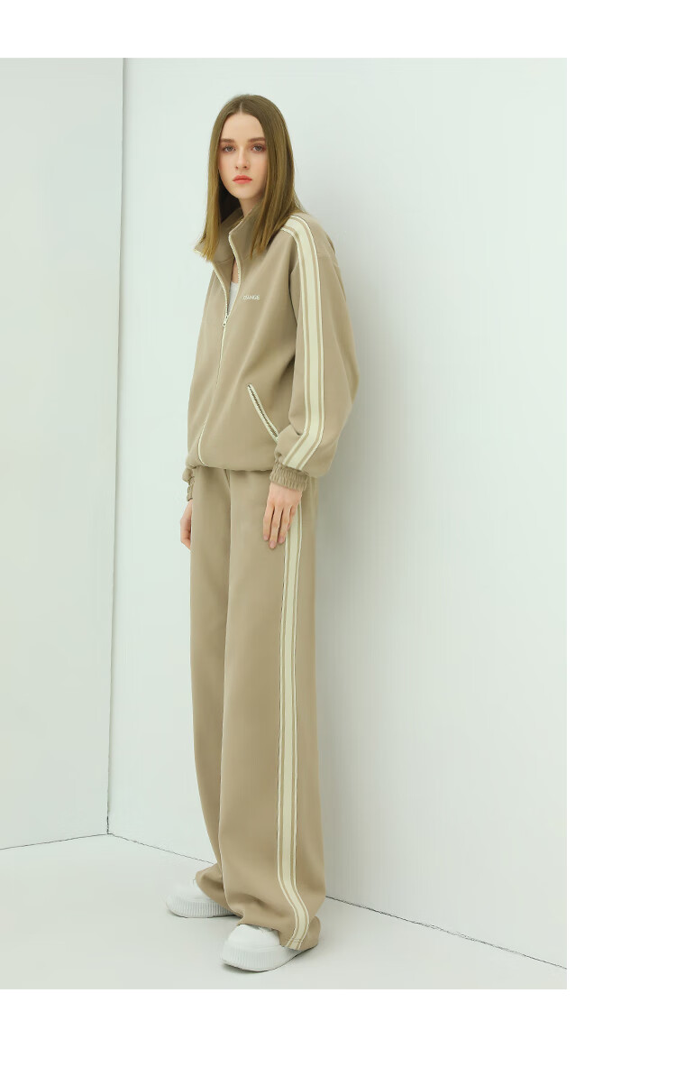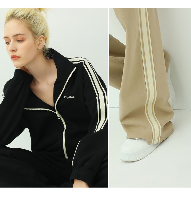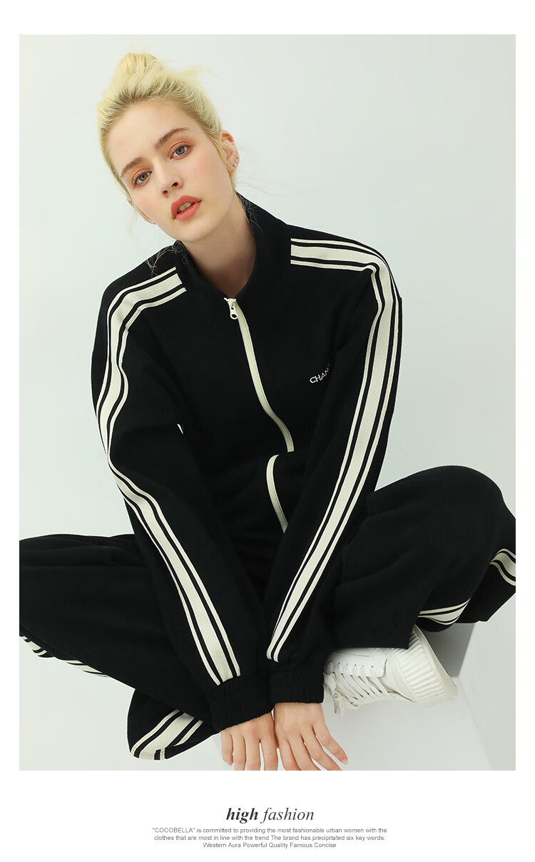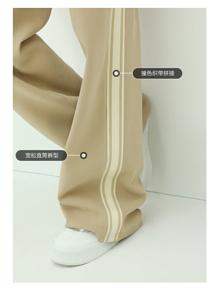 COCOBELLA简约运动风休闲裤女撞色条纹宽松直筒裤PA99