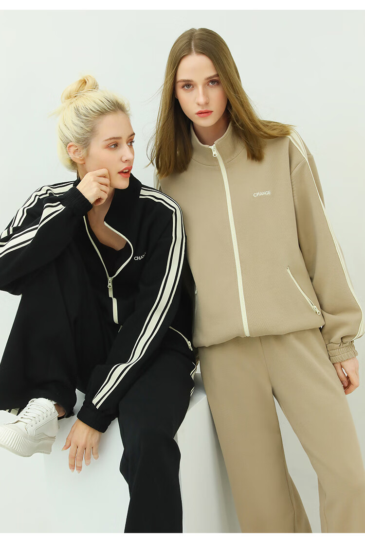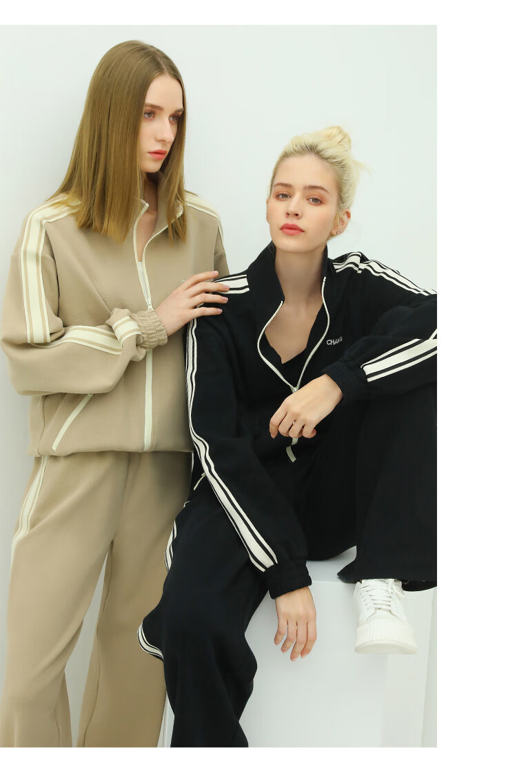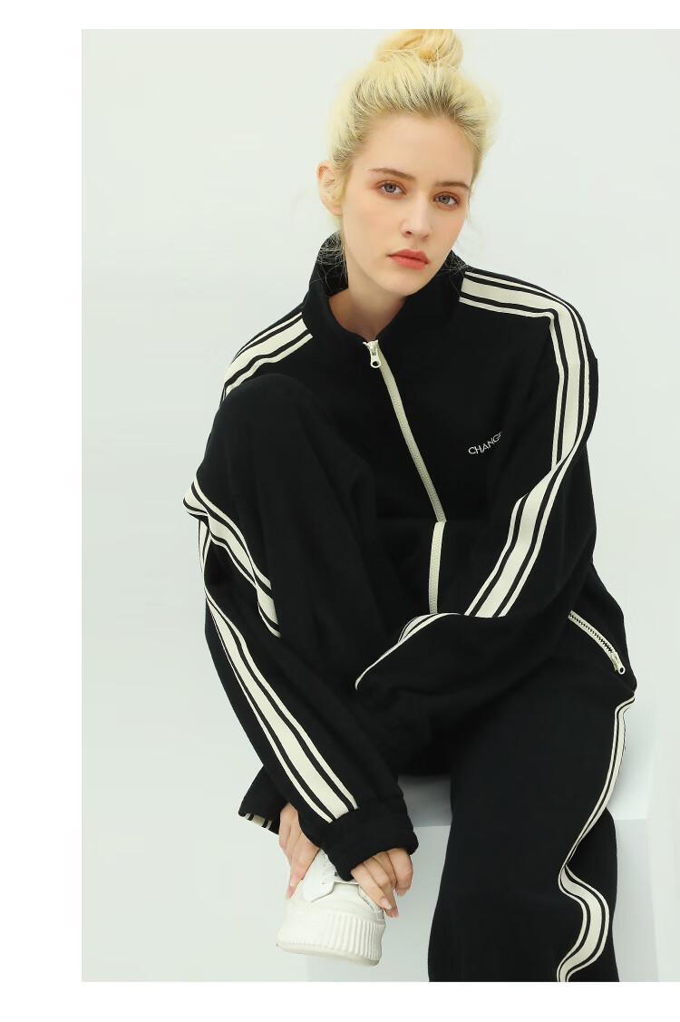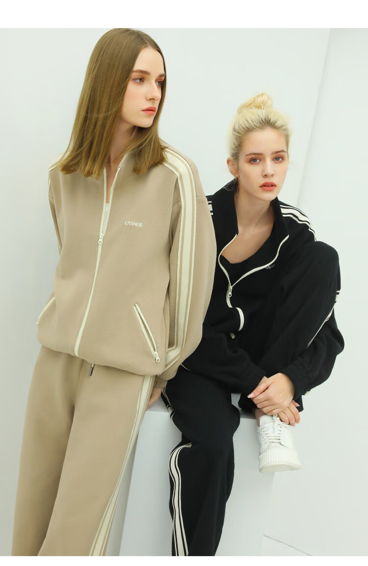 COCOBELLA简约运动风休闲裤女撞色条纹宽松直筒裤PA99