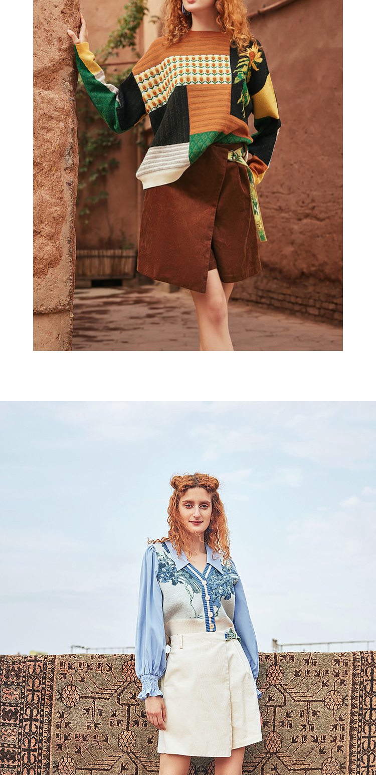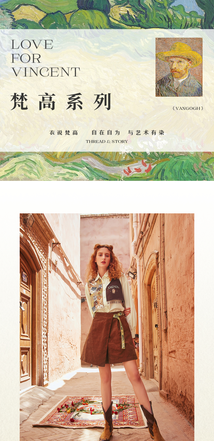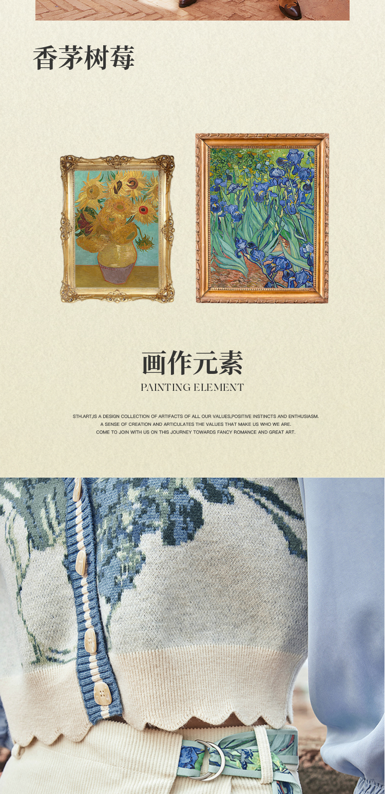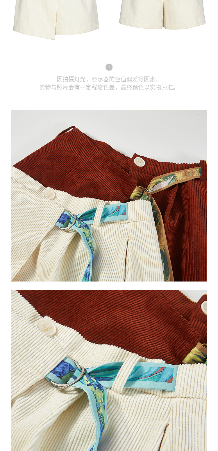 两三事梵高艺术香茅树莓2023秋季新款复古文艺绑带设计休闲裤