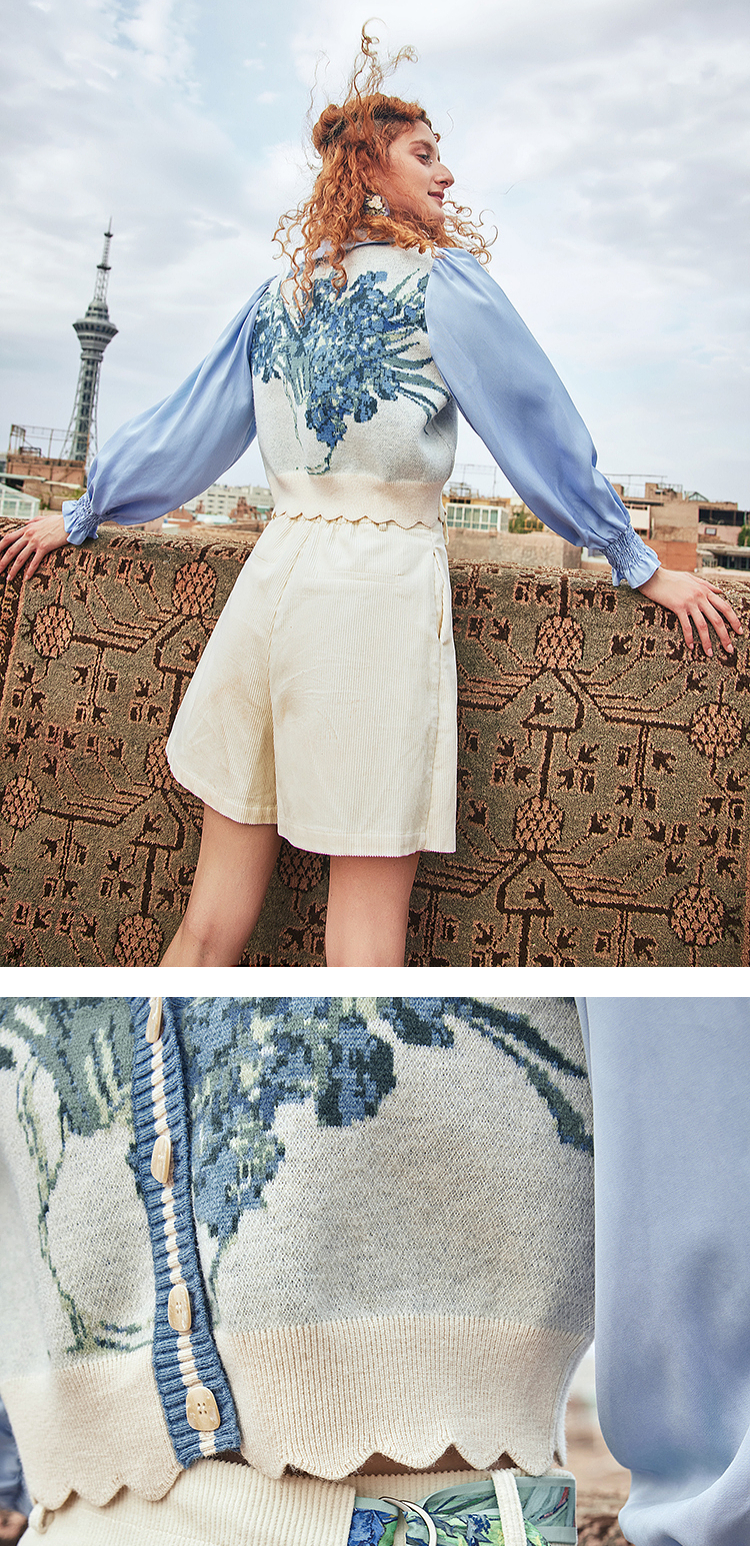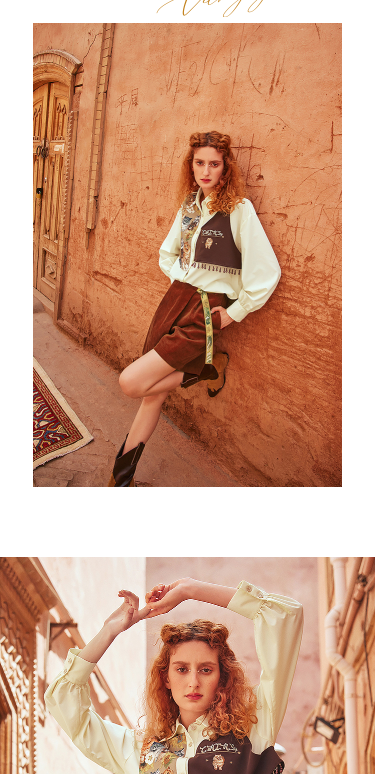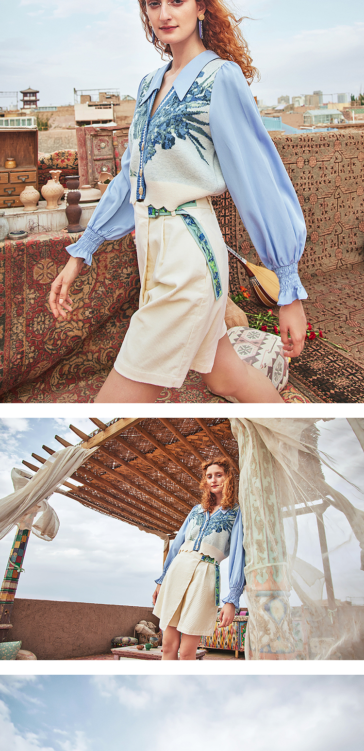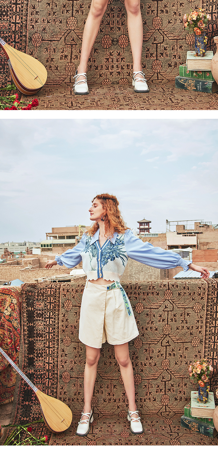 两三事梵高艺术香茅树莓2023秋季新款复古文艺绑带设计休闲裤