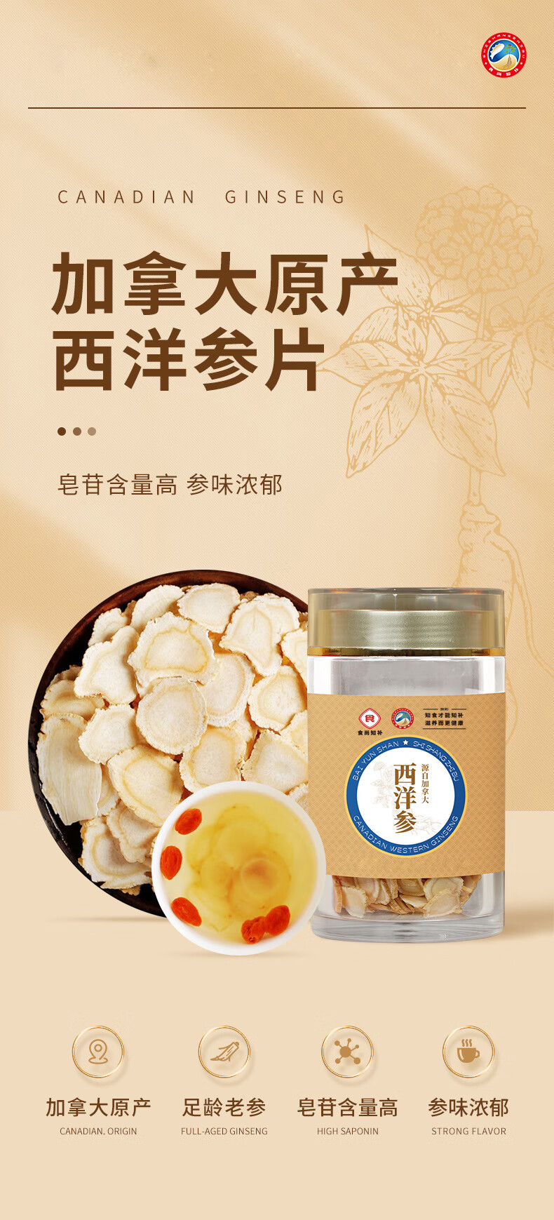 【西洋参片50g】加拿大原产西洋参片50克 足龄老参皂苷含量高