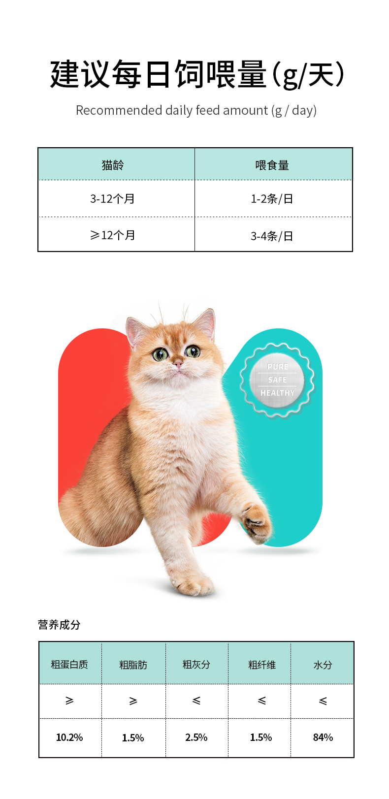 | 货号: 猫条2包 | 宠物零食种类: 罐头/湿粮包 |