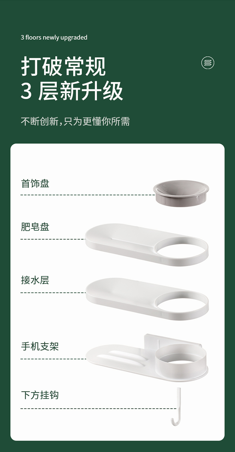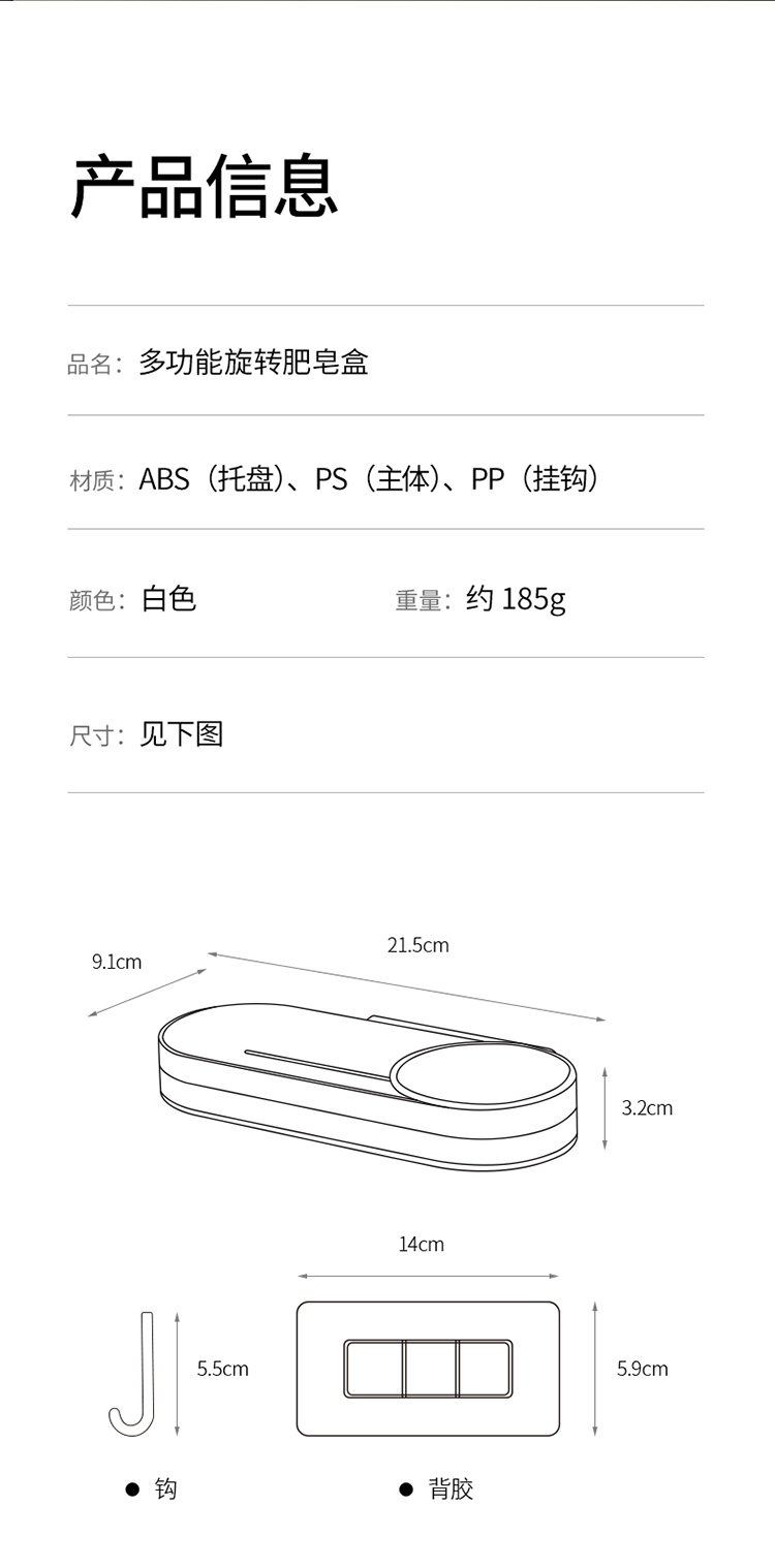 FaSoLa多功能旋转肥皂盒家用壁挂式沥水免打孔香皂盒卫生间置物架