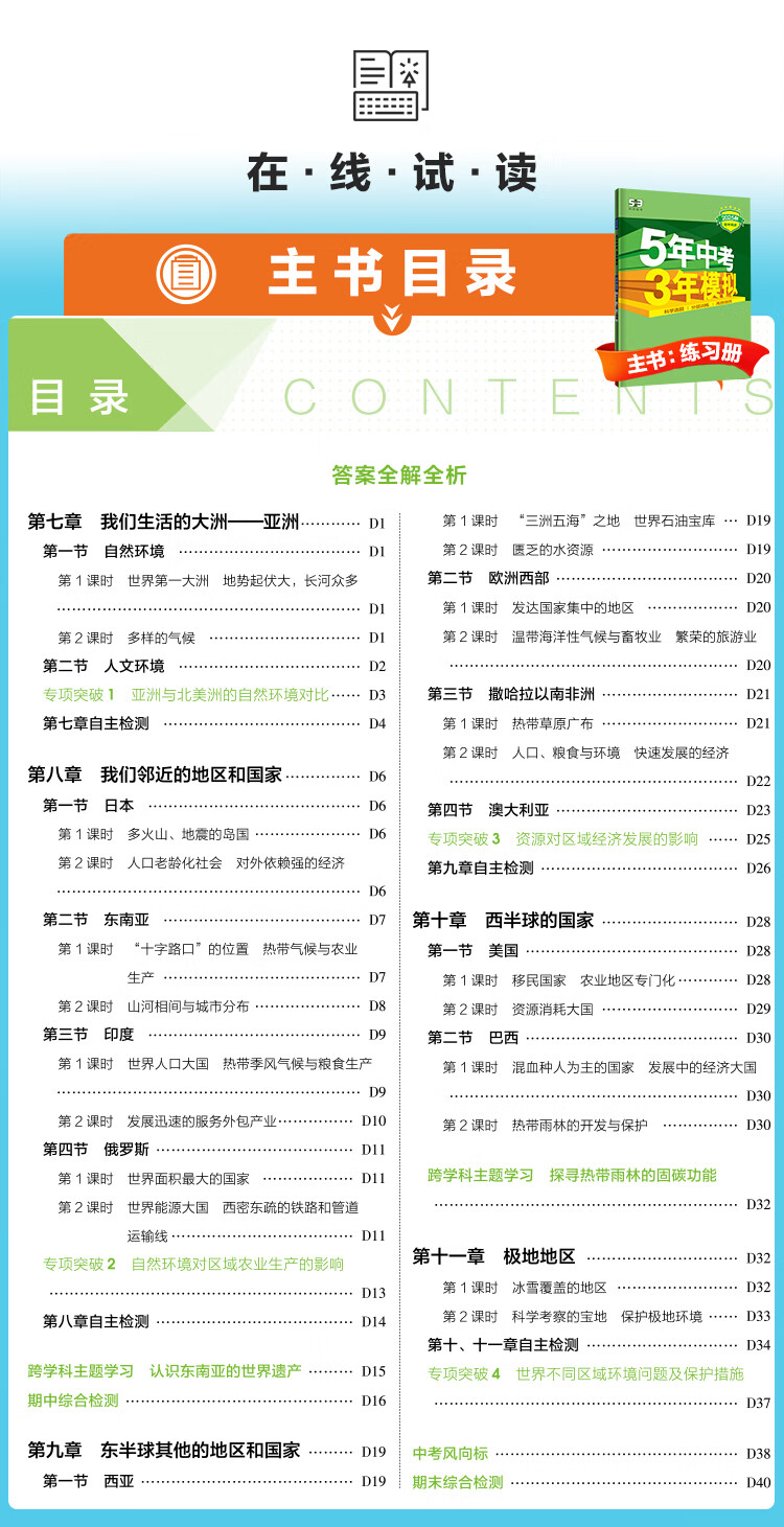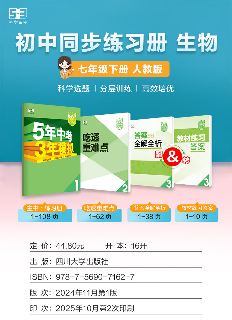 五年中考三年模拟七年级上册下册语文数学英语物理化学道德与法治历史5年中考3年模拟初一练习册