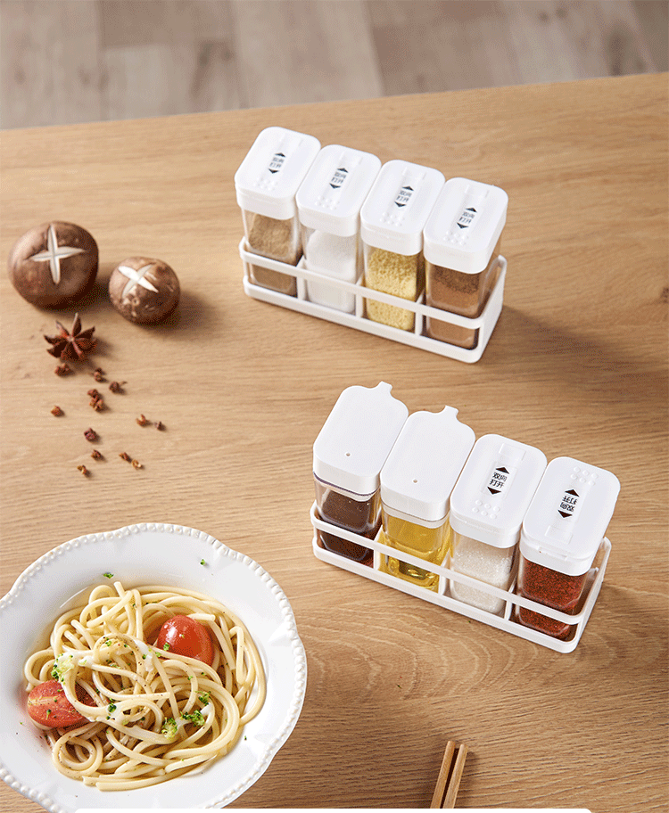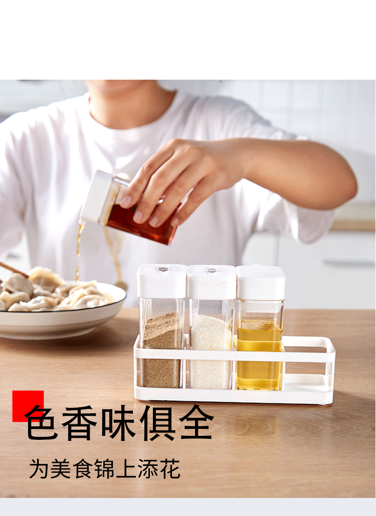 「4件组合装」日式厨房调味调料盒 油壶收纳整理密封防潮调味瓶四格调料罐用品