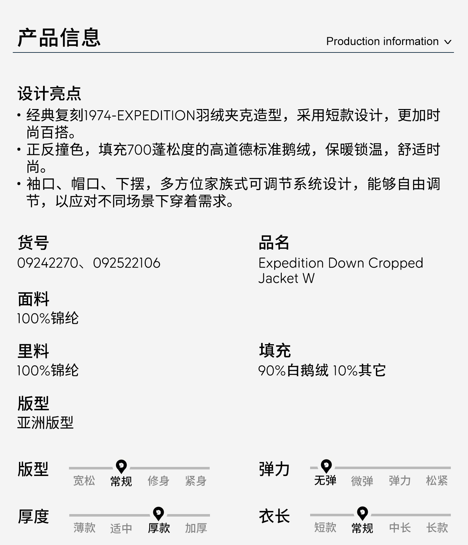 北极狐 25FW新款女士羽绒服700蓬白鹅绒保暖羽绒夹克 092522106