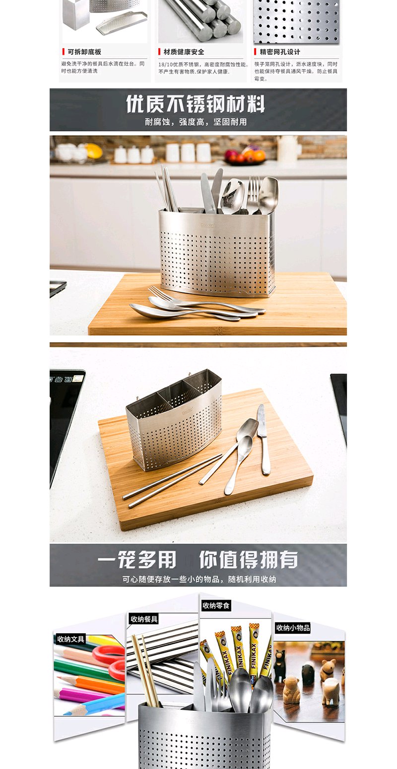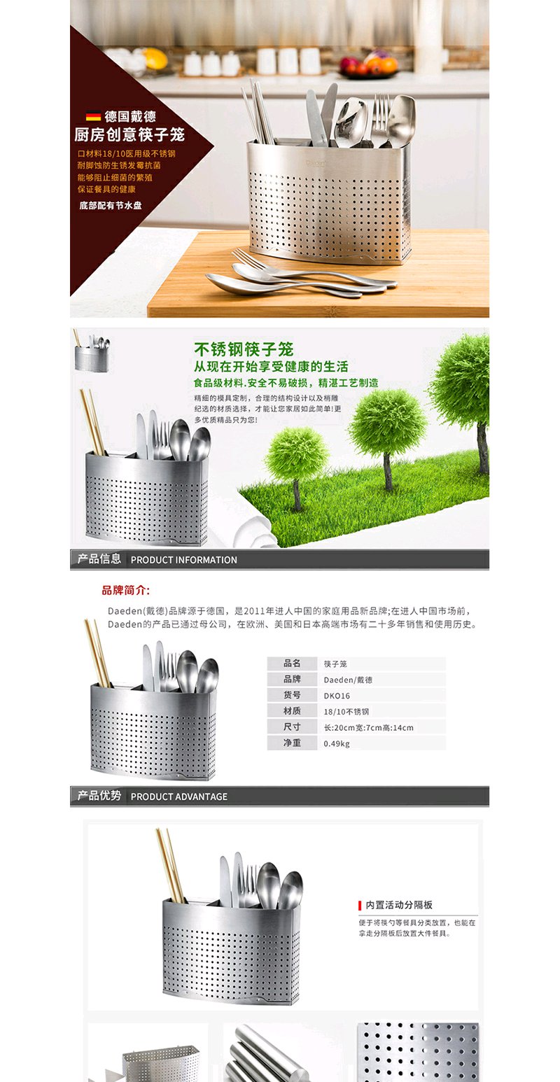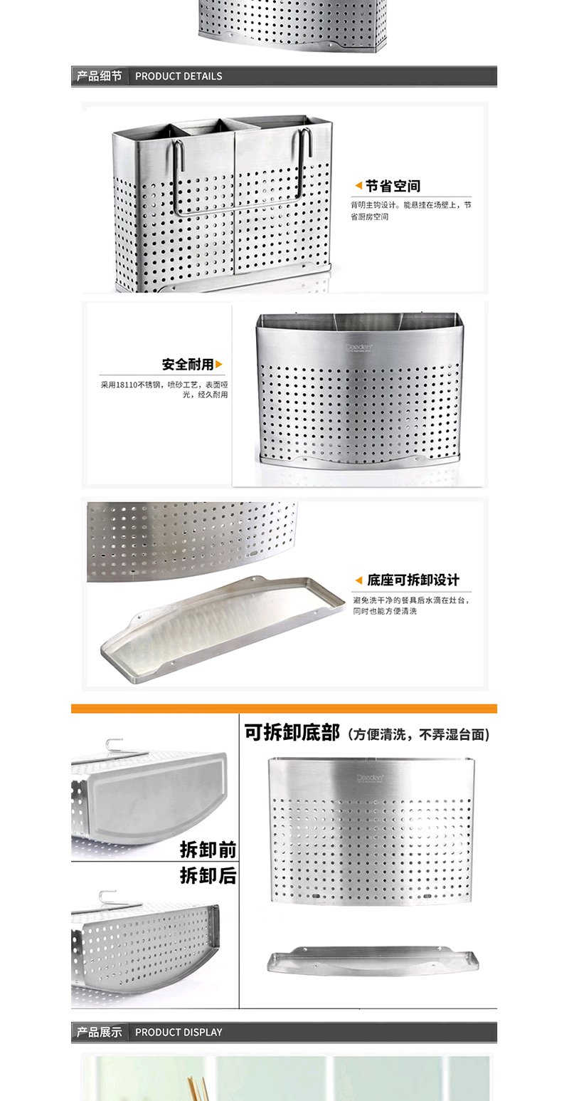 德国戴德 食品级不锈钢筷子笼可挂式筷子筒厨房置物架餐具收纳盒可拆洗