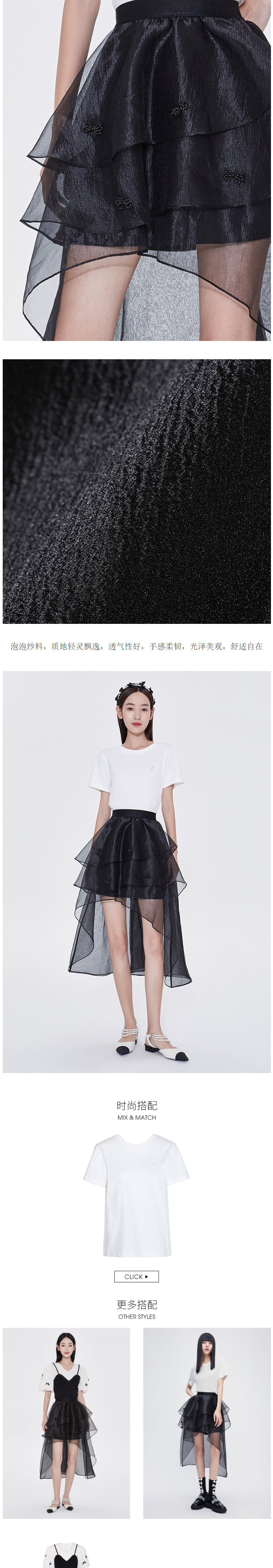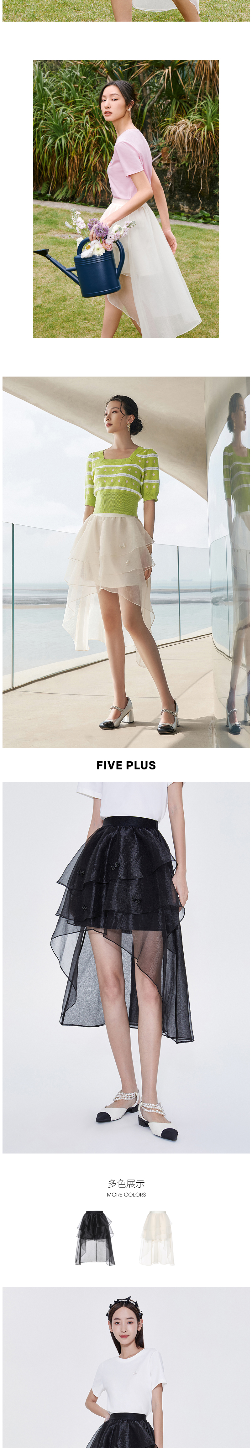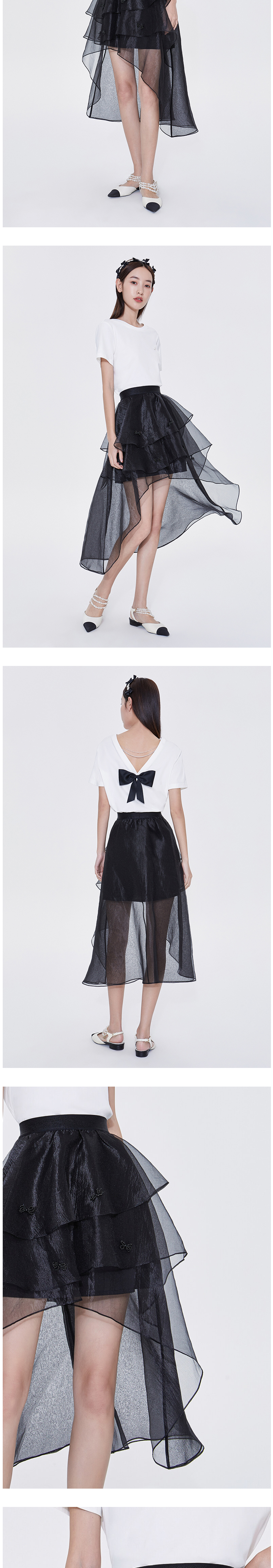 FIVE PLUS2022新款女夏装设计感不规则半身裙女高腰蝴蝶结纱裙子2WN2071440