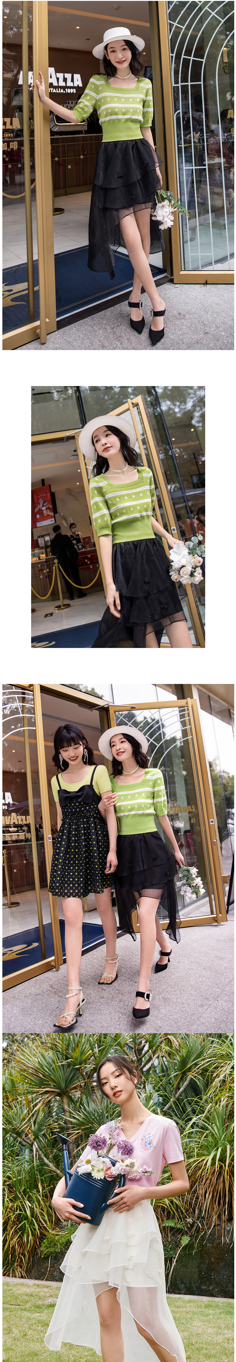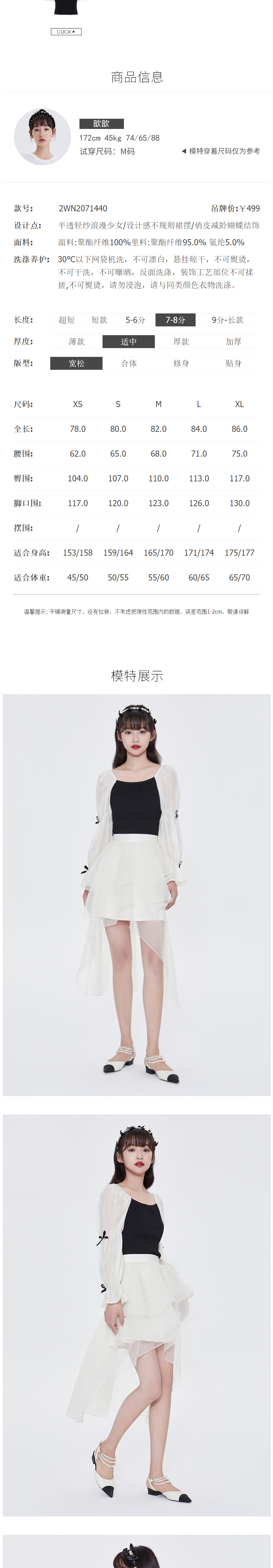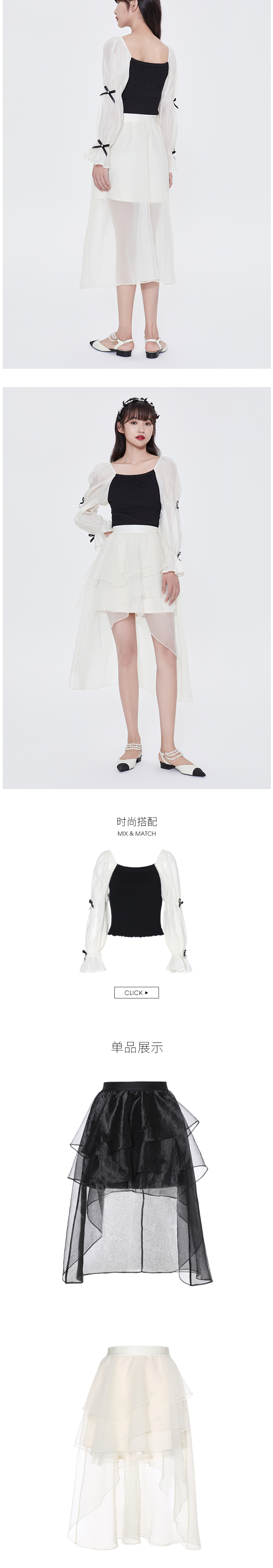 FIVE PLUS2022新款女夏装设计感不规则半身裙女高腰蝴蝶结纱裙子2WN2071440