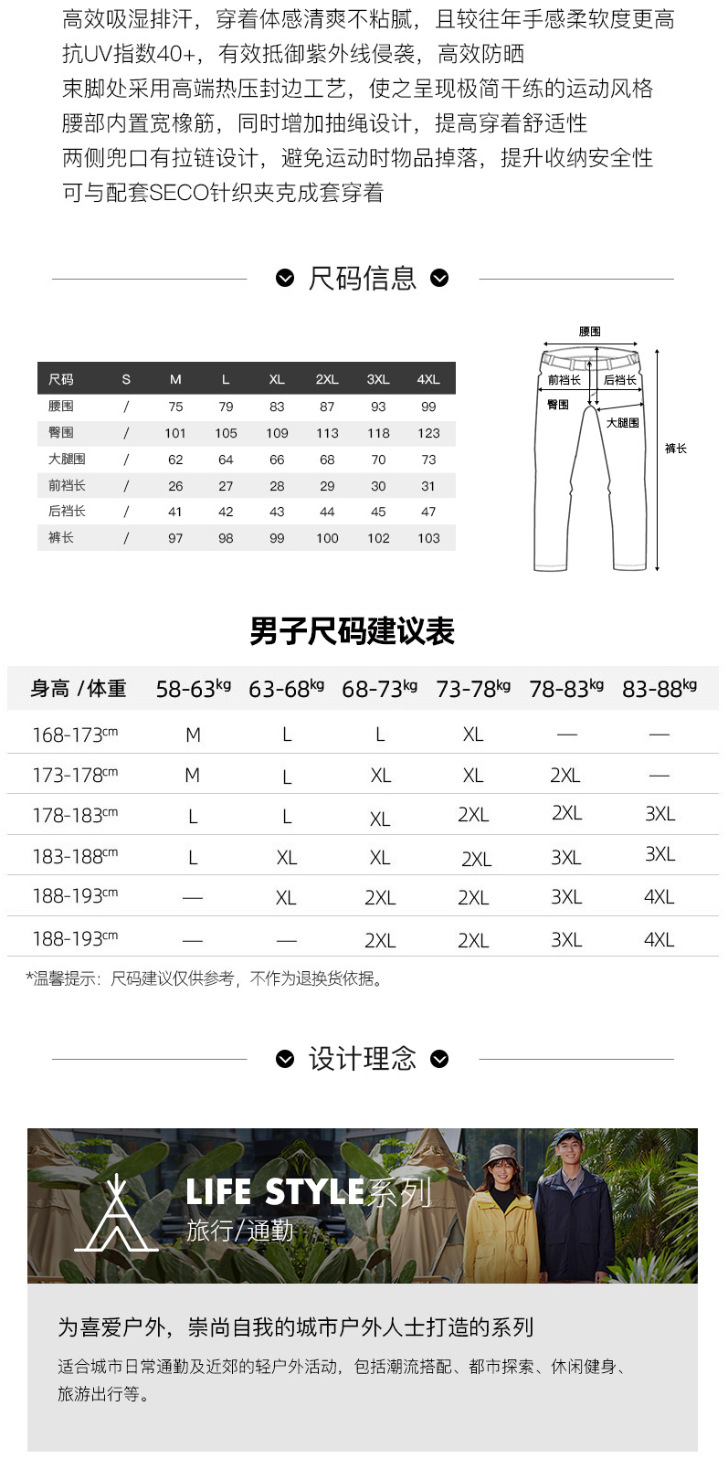 KOLONSPORT可隆长裤男款防晒户外休闲裤运动裤子LHLP2MT629