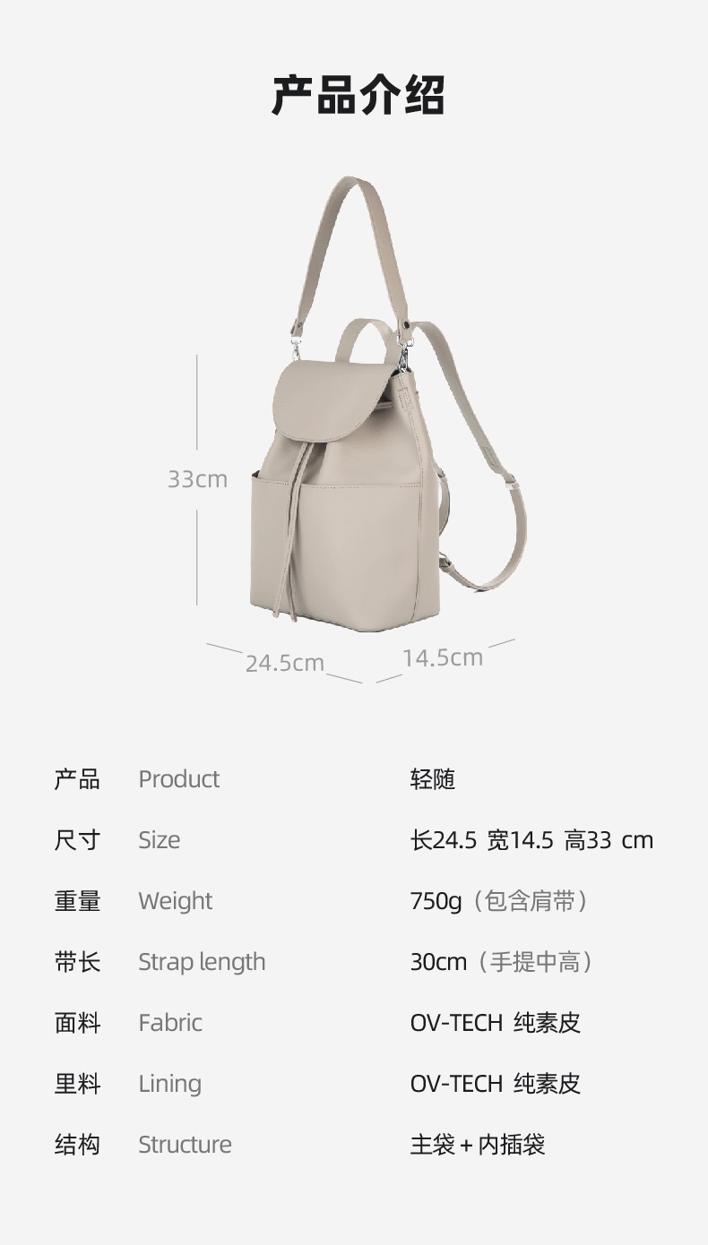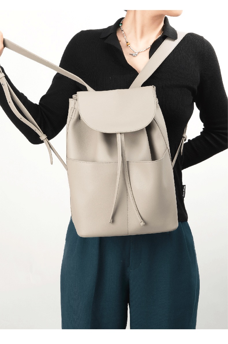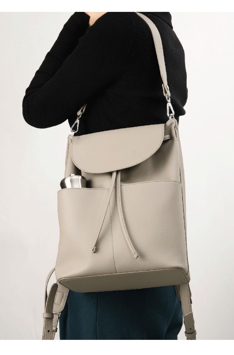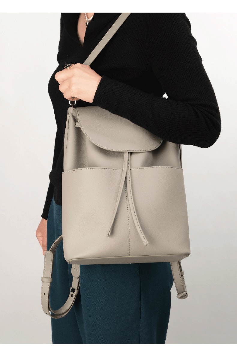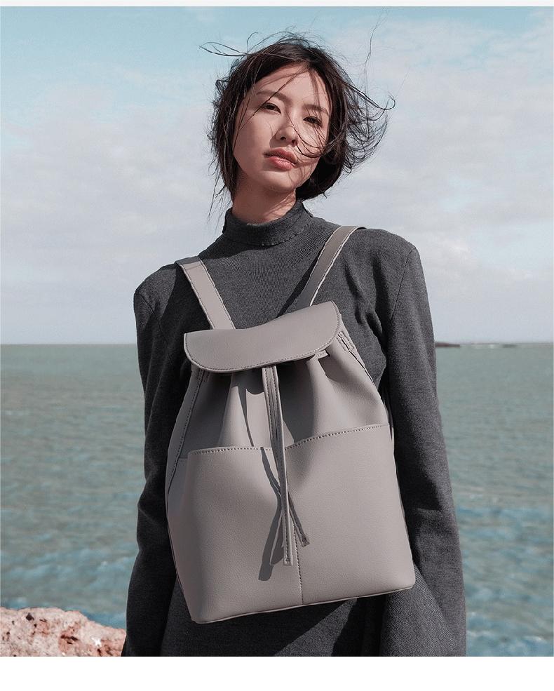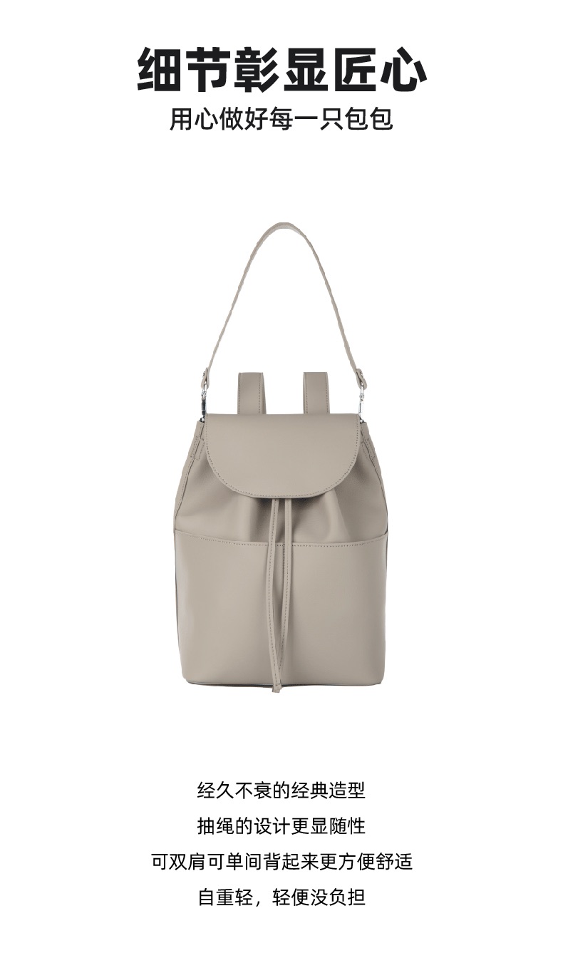 OVONZO偶梵 女双肩包抽绳单肩包原创经典Jania高级 感大容量素皮包包