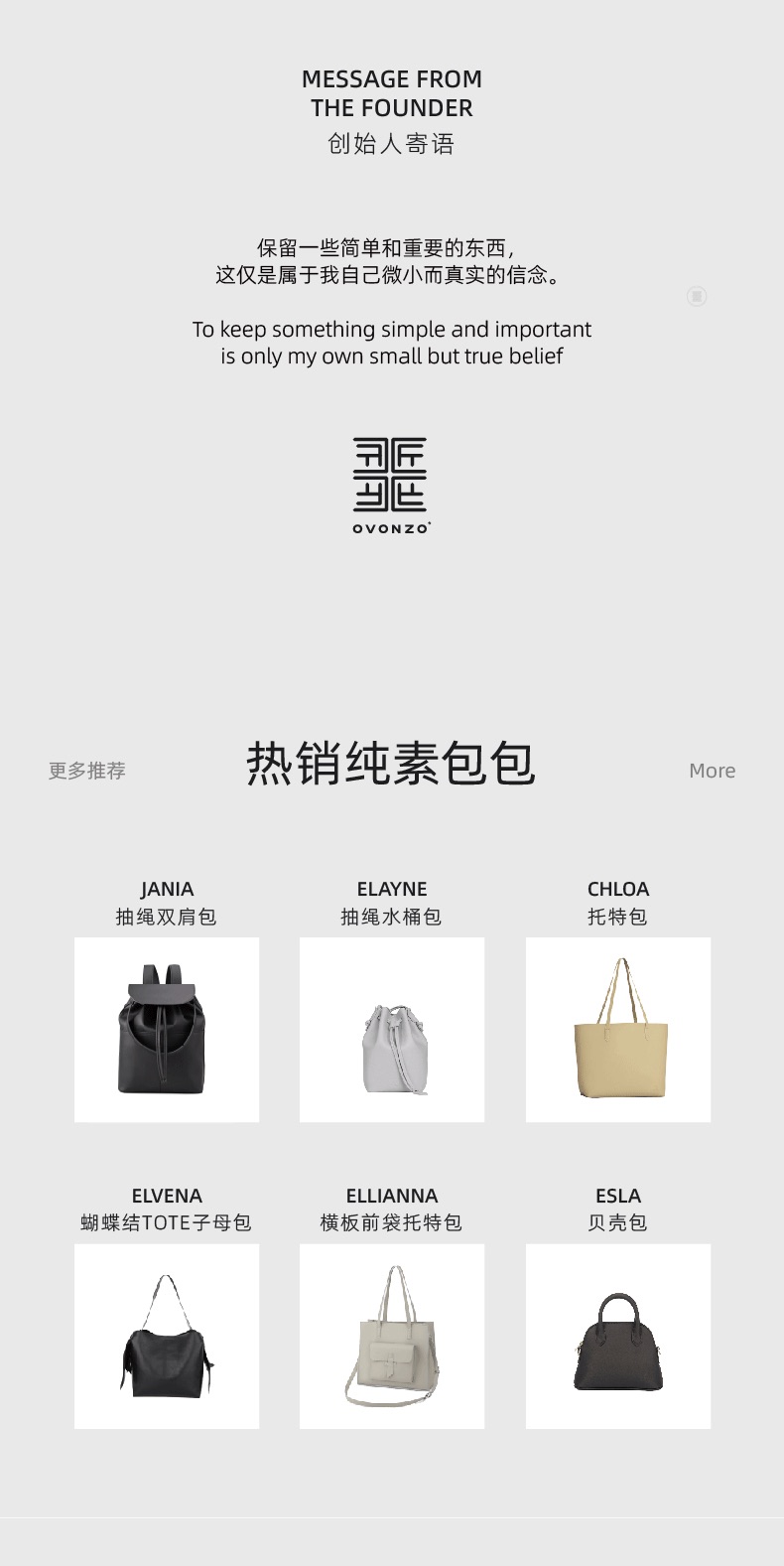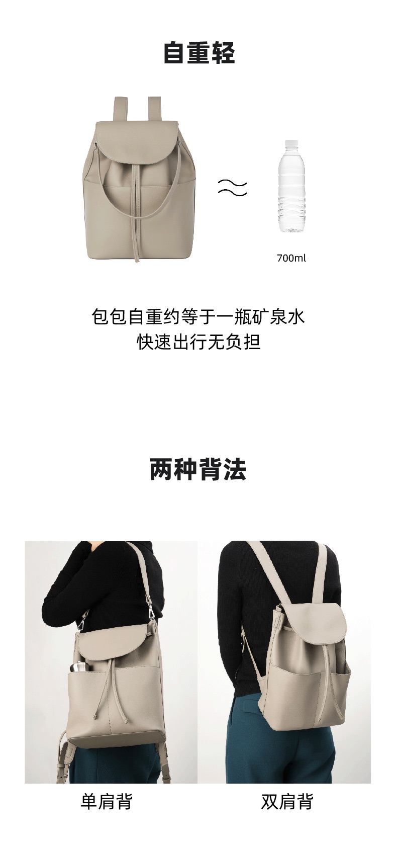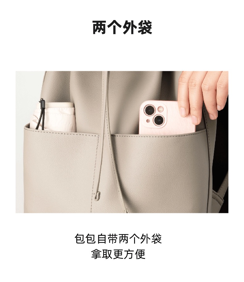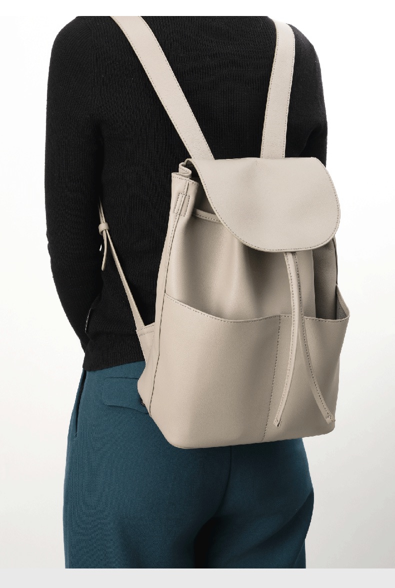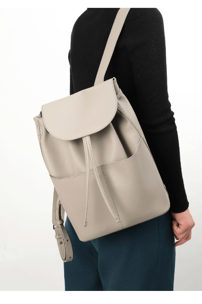 OVONZO偶梵 女双肩包抽绳单肩包原创经典Jania高级 感大容量素皮包包