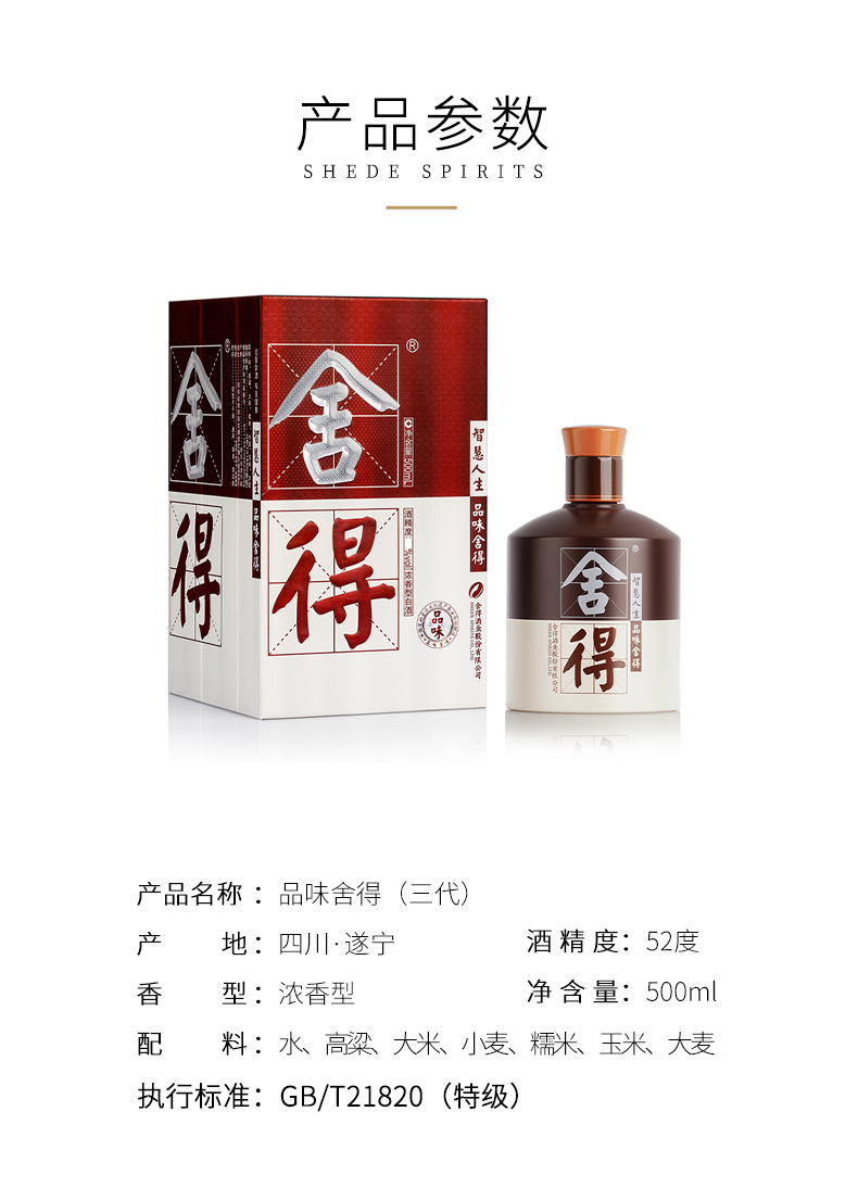 舍得酒 品味舍得 KA版(三代)52度 500ml*1瓶 粮食酒 高度浓香型 白酒