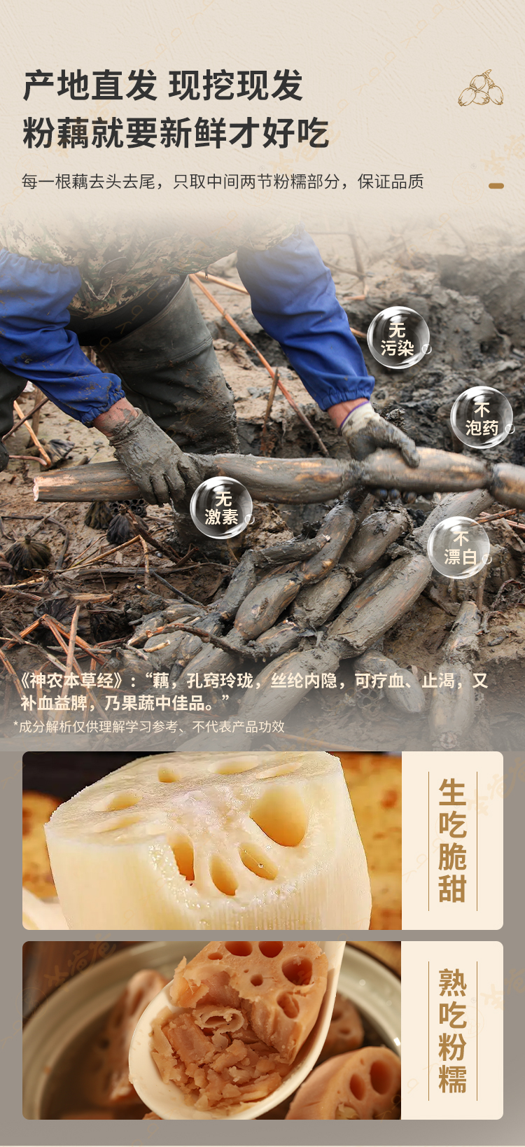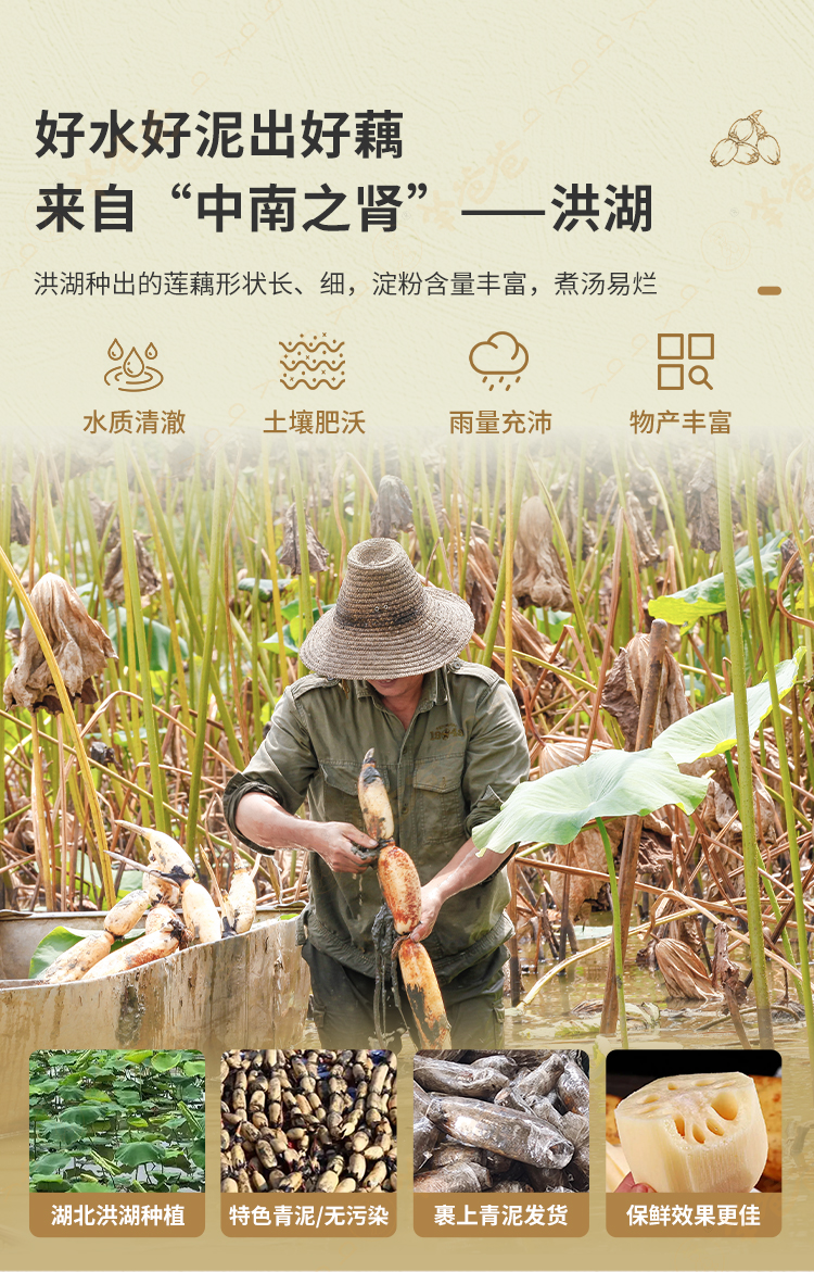 原产地发货【洪湖粉藕】应季食鲜藕,煨莲藕排骨汤,粉糯香甜
