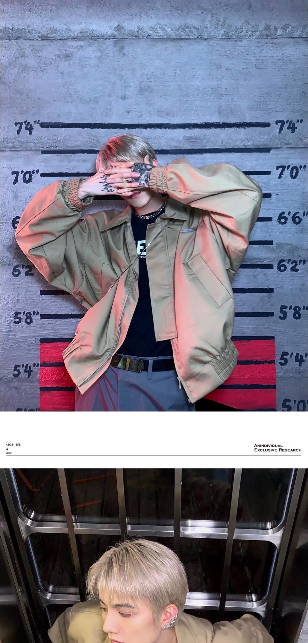 THE AIER 21AW 新品秋冬短款垫肩夹克外套男简约常规立领宽松两色