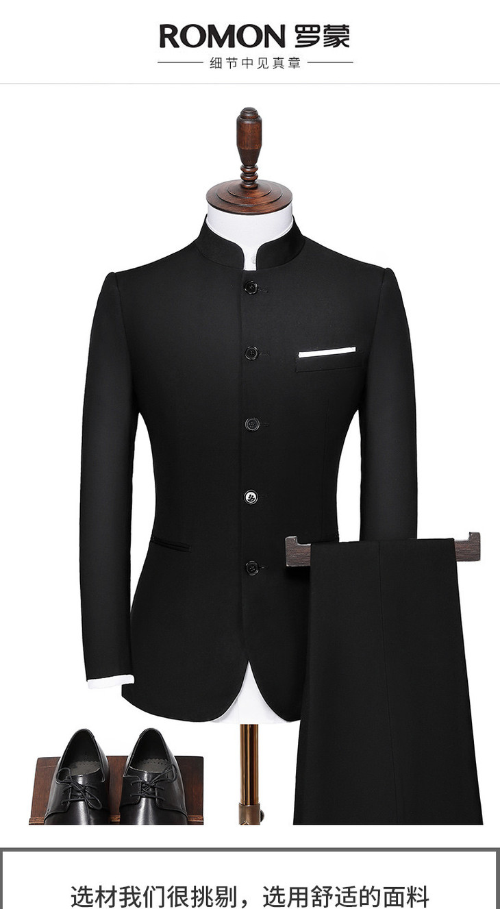 【人气热卖】罗蒙立领西服套装男士正装商务休闲爸爸装立领中山装礼服
