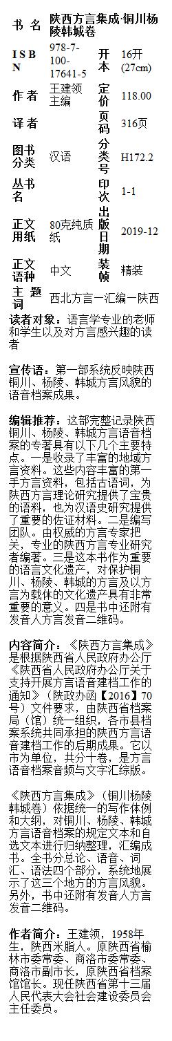 《陕西方言集成》(铜川杨陵韩城卷)调查人ⅲ