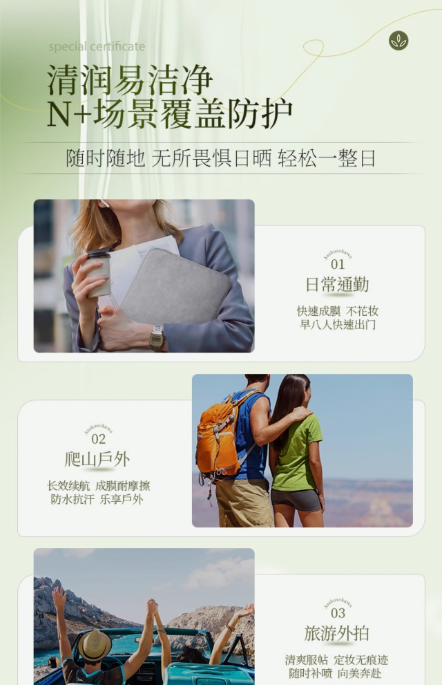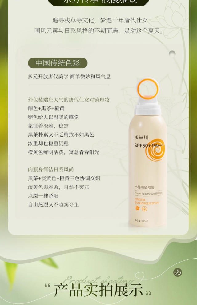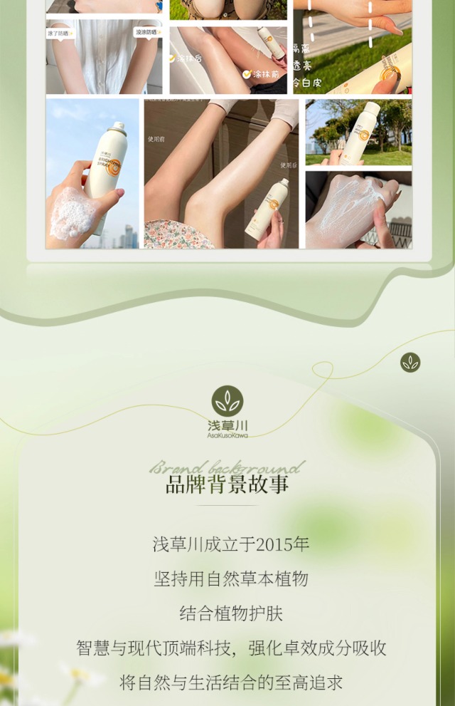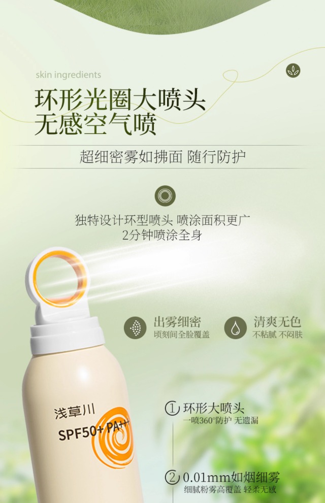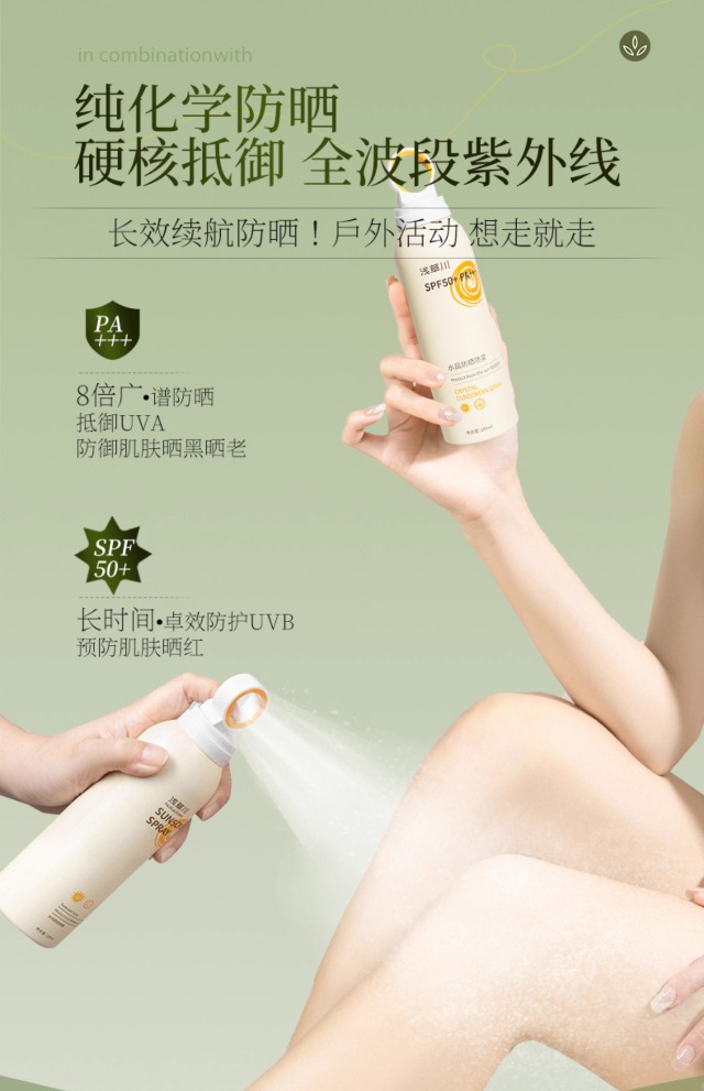【立减40】⭐️79元3瓶水晶款浅草川戴森头防晒霜喷雾180ml/瓶 学生军训专用身体防紫外线防汗水男女正品