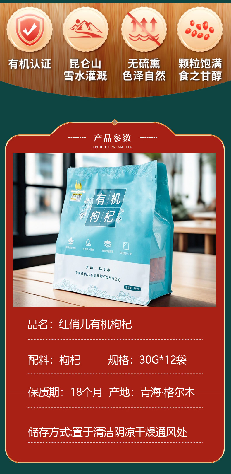 红俏儿 有机红枸杞 青海高原头茬枸杞子 无熏硫滋补泡水枸杞茶 360g袋装