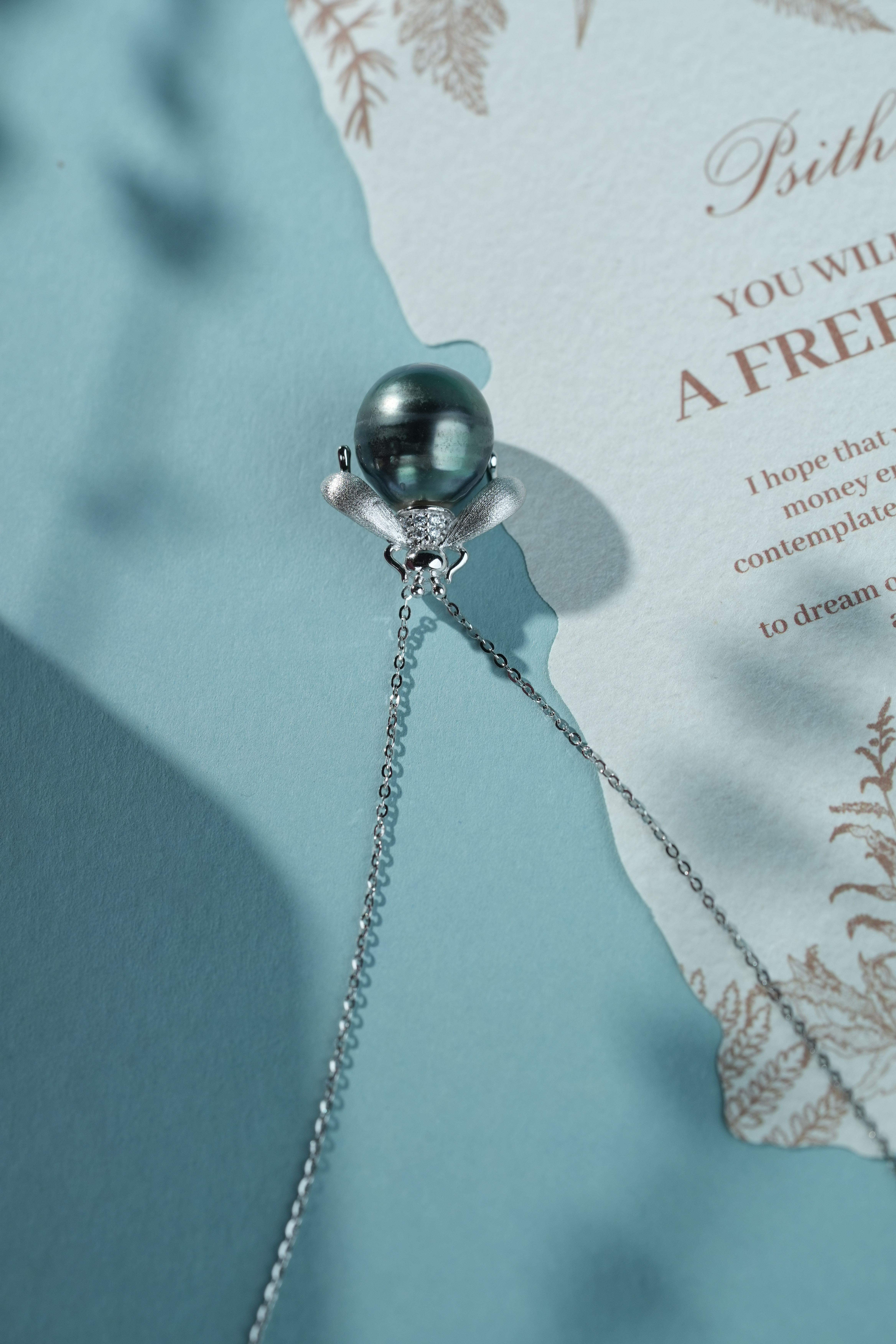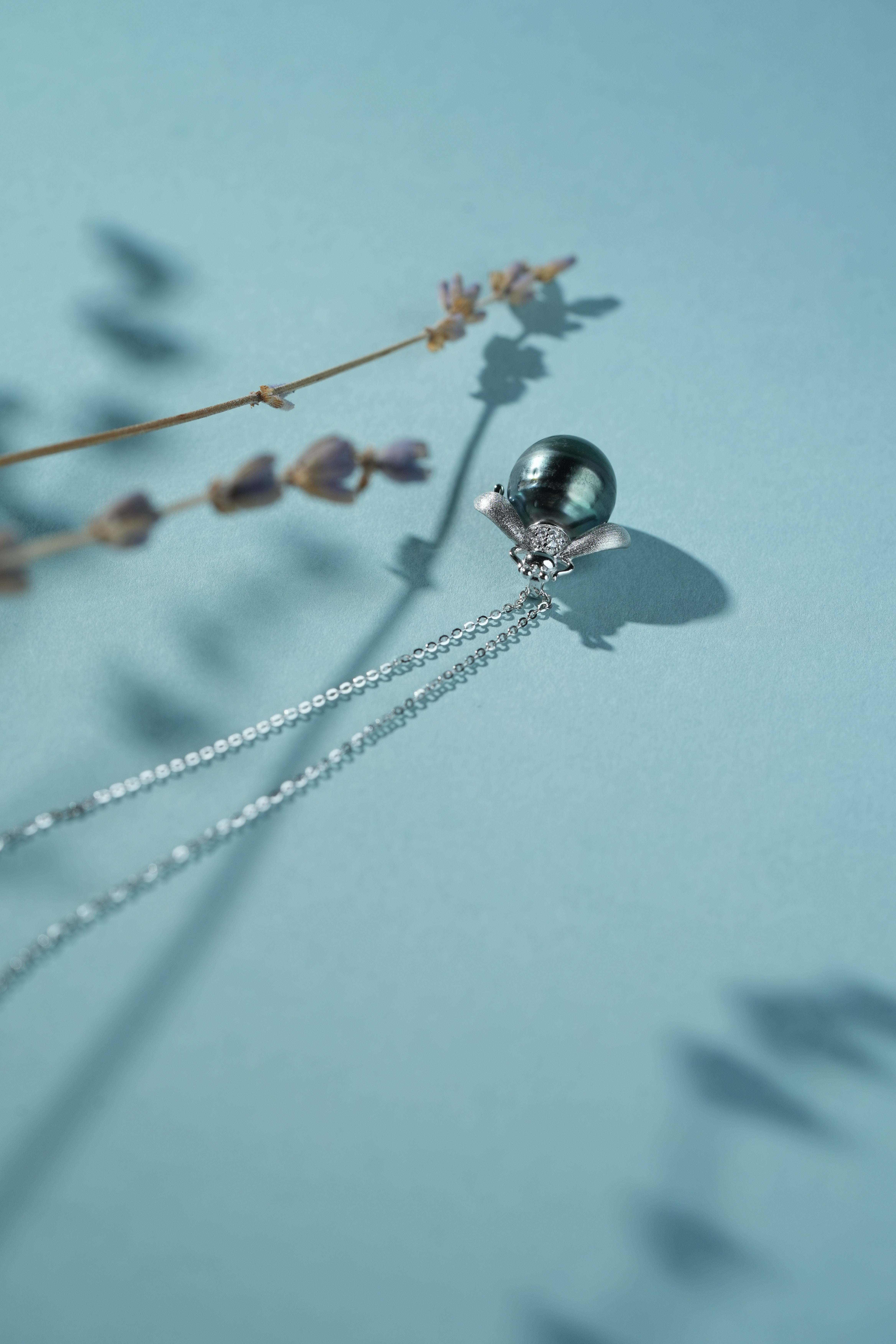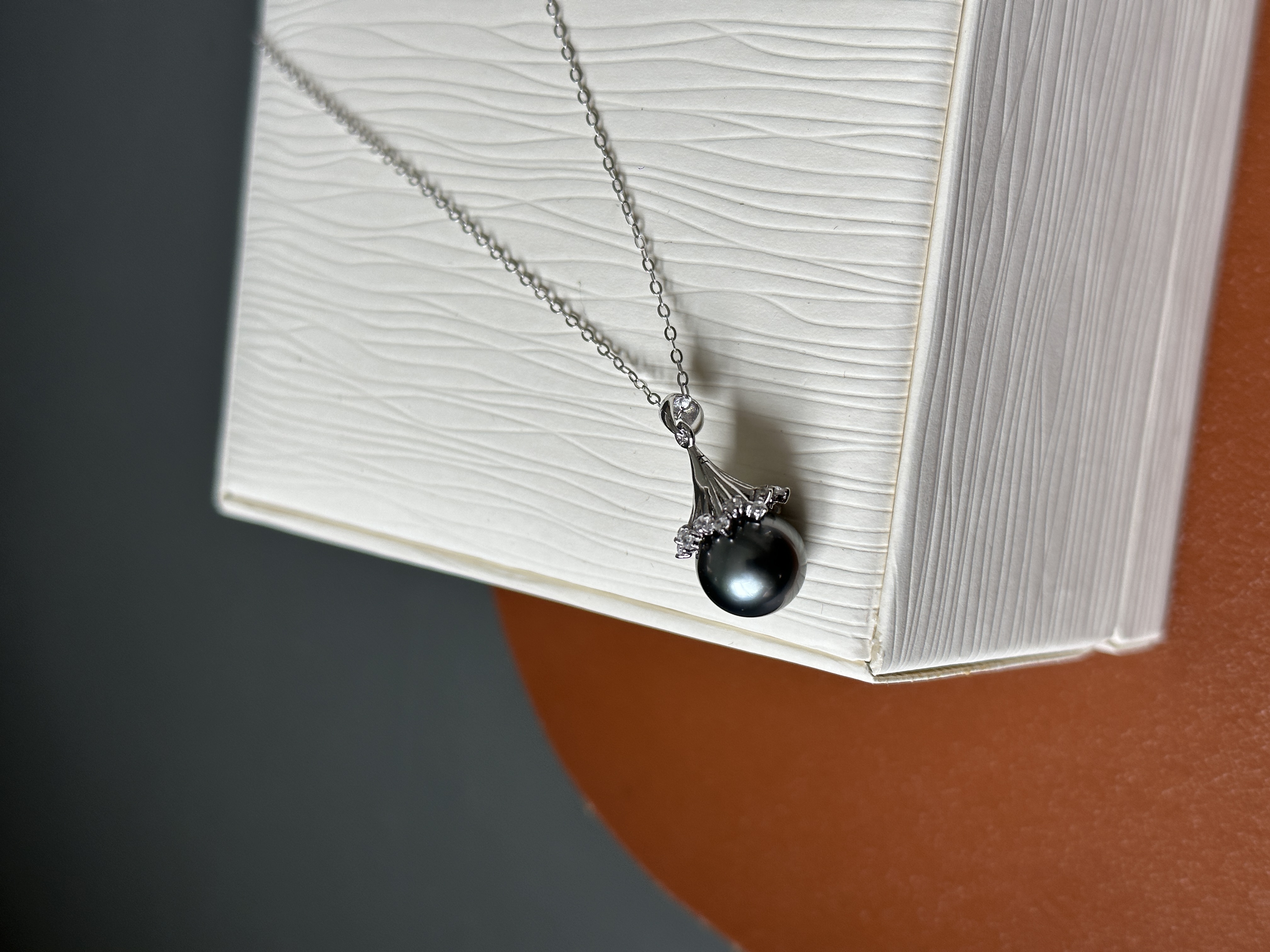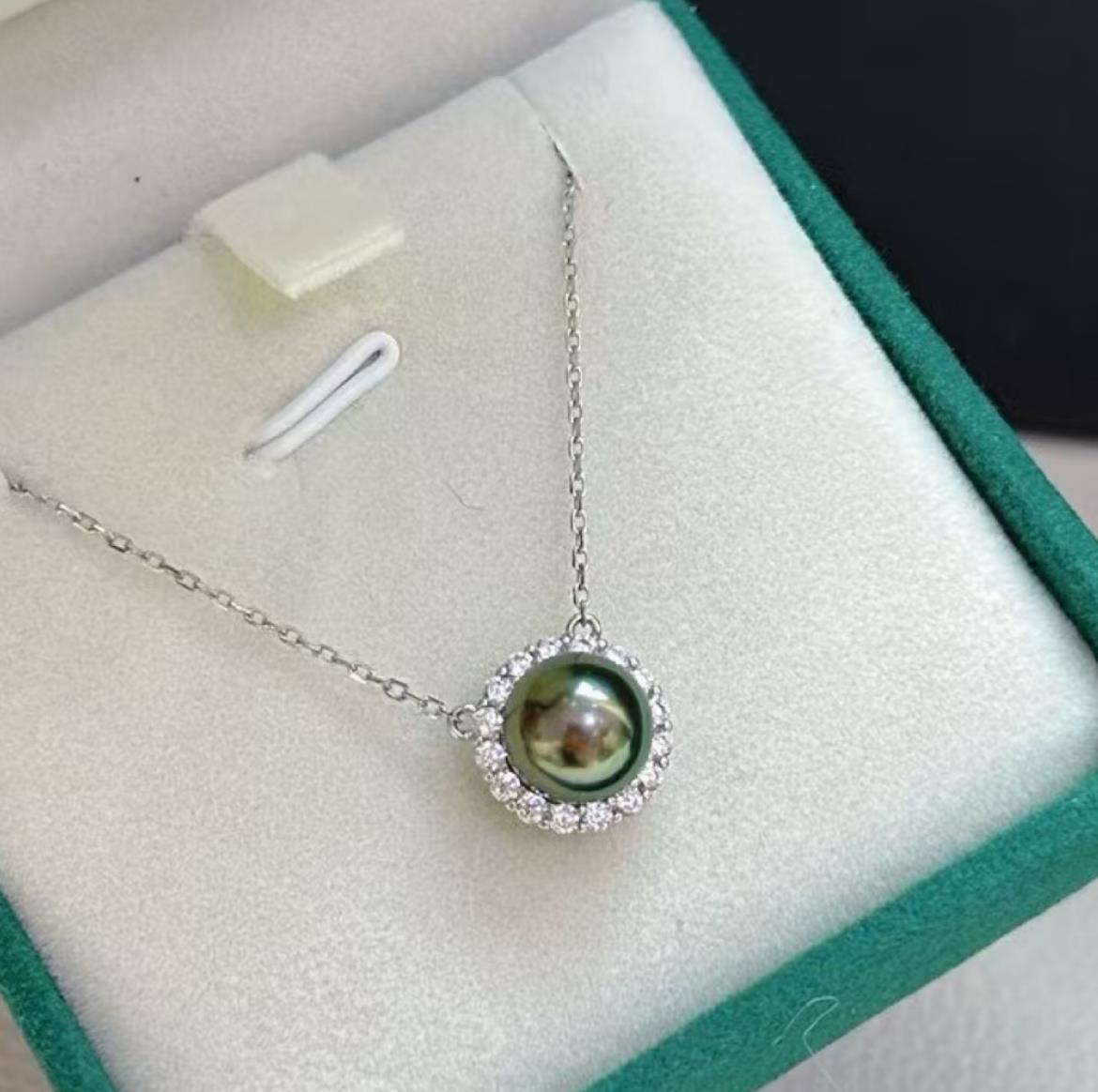 珍珠光泽高贵、内敛,美丽的黑珍珠吊坠绕过脖子、划过锁骨、垂坠在胸前,让你的气质更加矜贵。