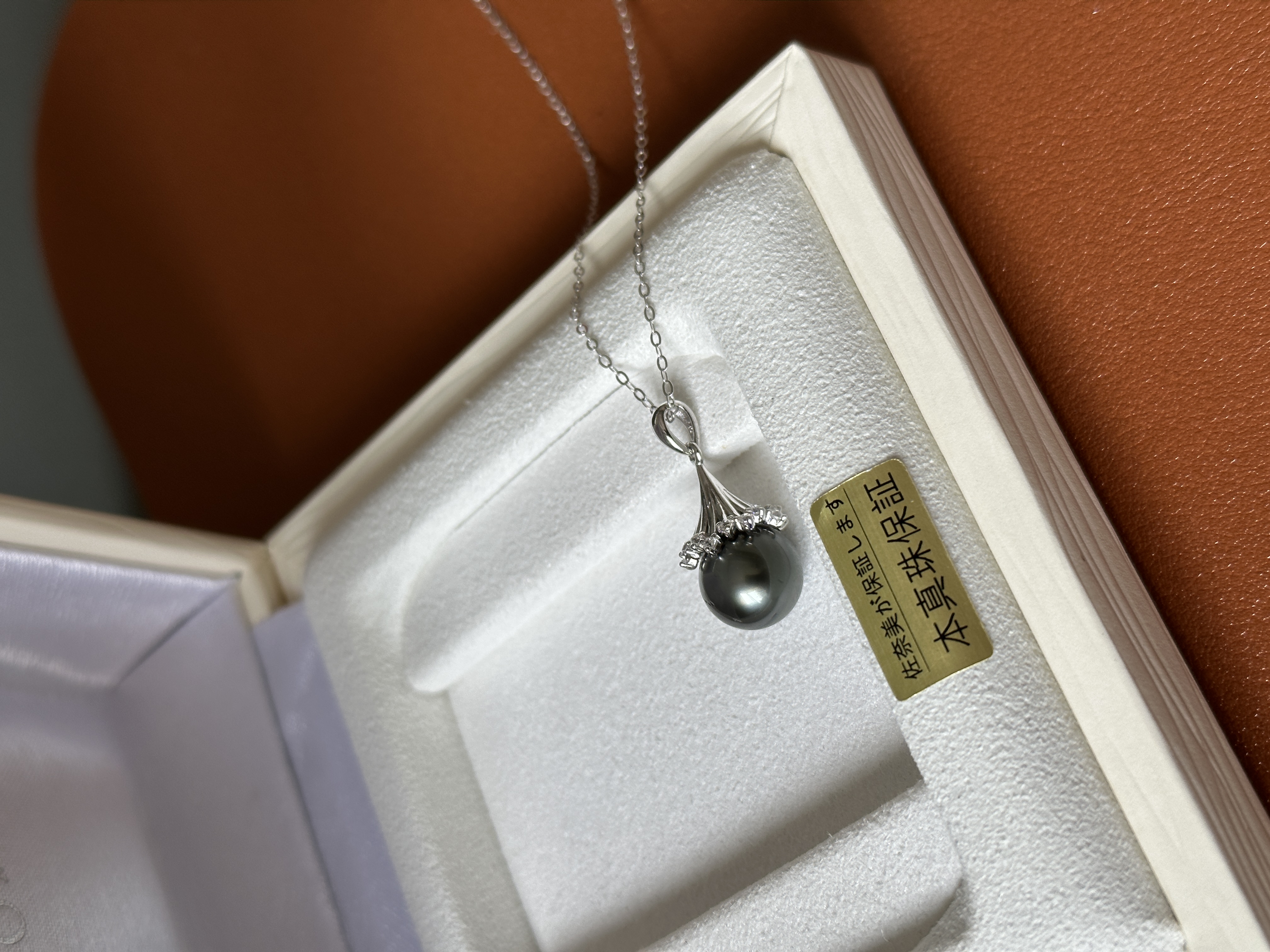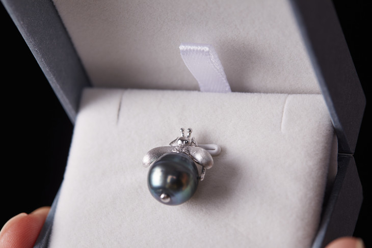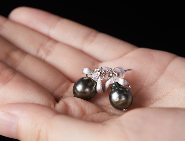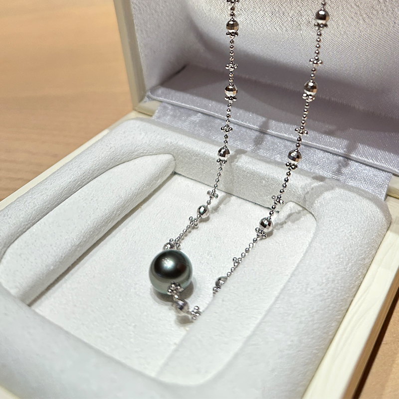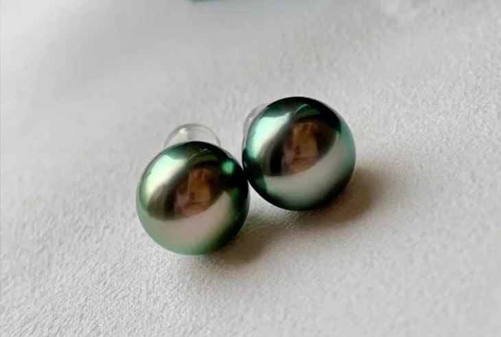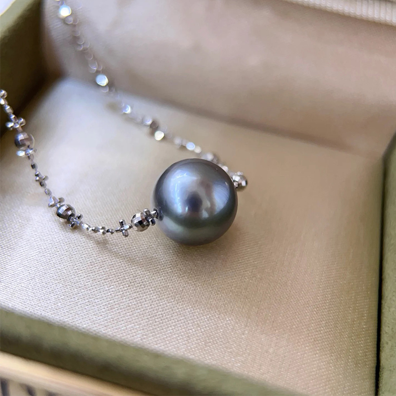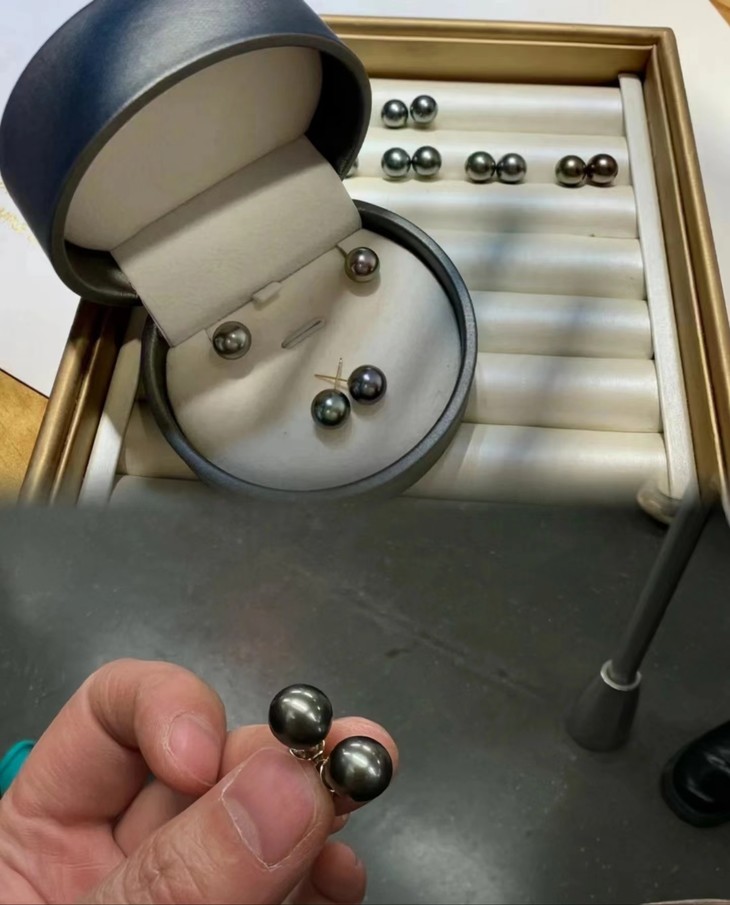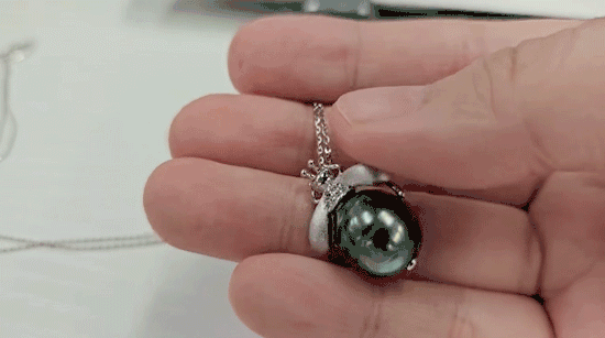 这颗大溪地黑珍珠真的太油亮了,阳光底下甚至泛出一点点绿色冷调,特别好看。