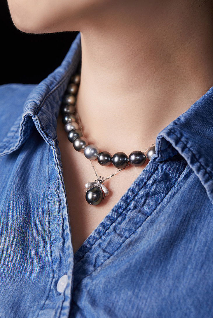 无需认真化妆,也不用精心搭配衣服,一件黑珍珠首饰上身,便自带光芒万彩。