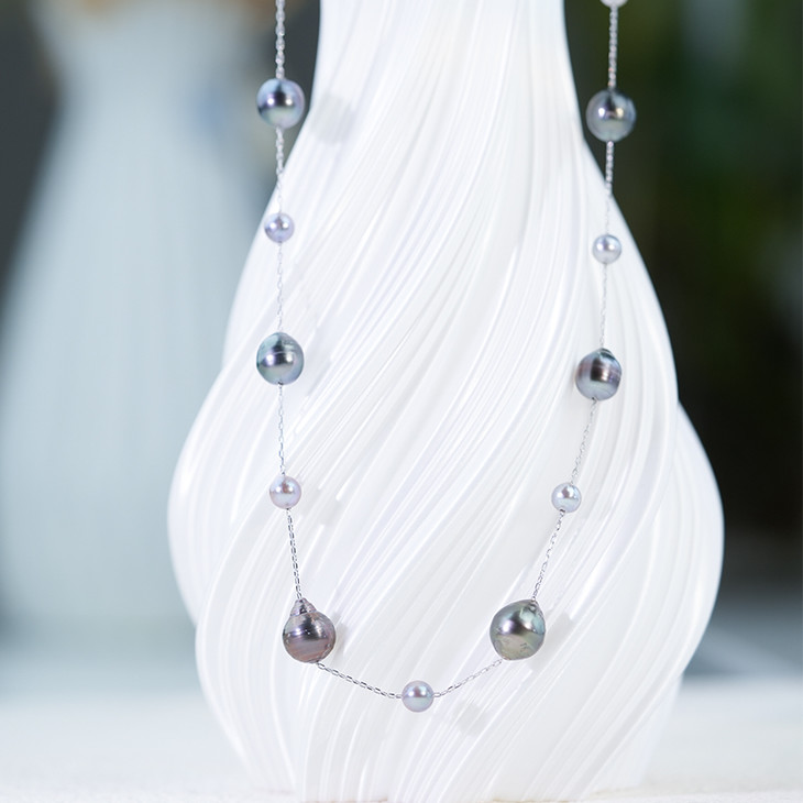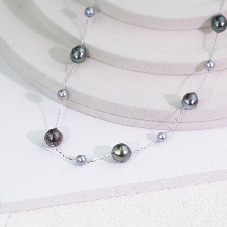 大溪地巴洛克真多麻色满天星项链