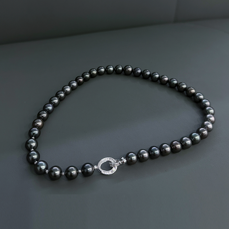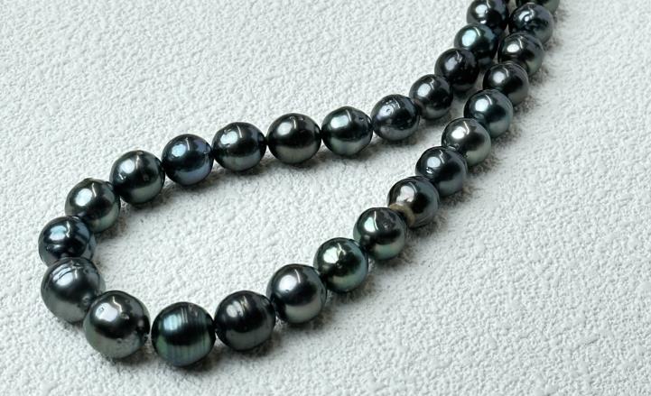 大溪地螺纹黑珍珠项链(8-12mm)