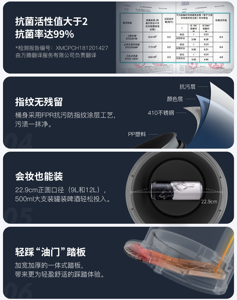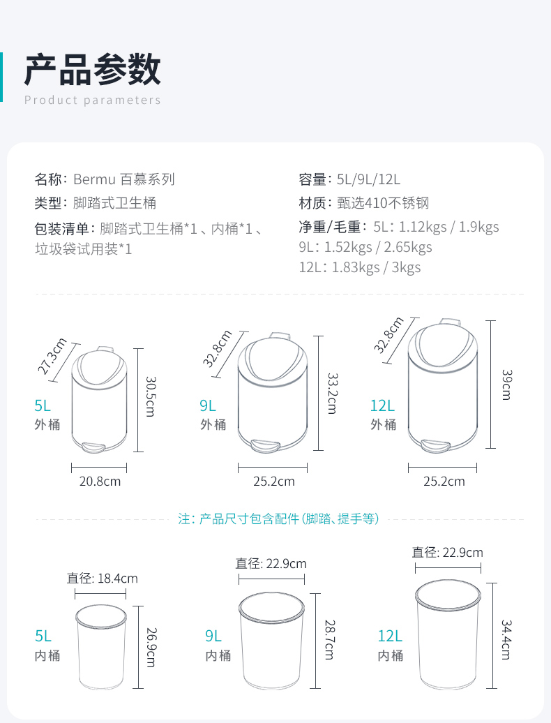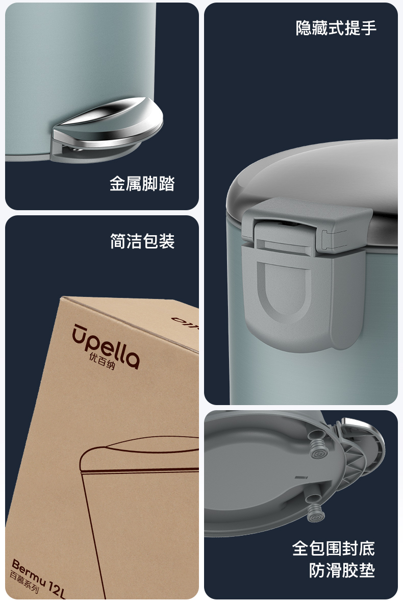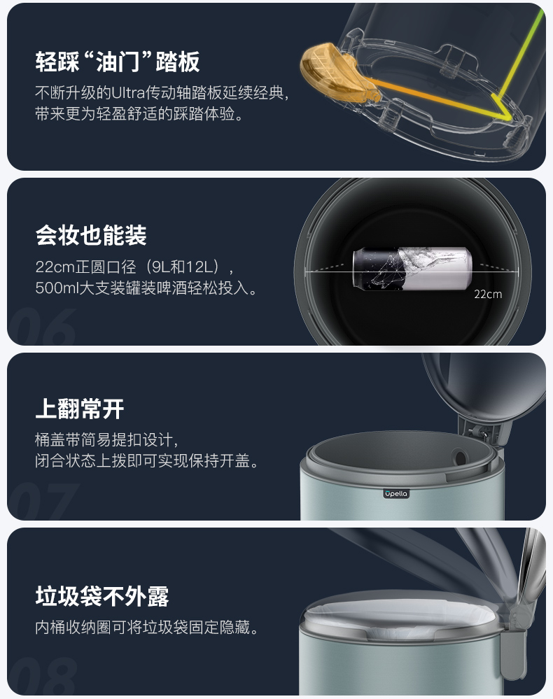 优百纳NEW百慕系列脚踏式卫生桶垃圾桶-5升(薄荷绿)