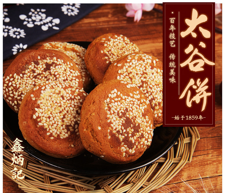 - 鑫炳记始于1859年,历经五代传承,传承百年工艺,从选取原料到烘烤出炉,都严格遵守祖传古方,让百年太谷饼焕发新的魅力。