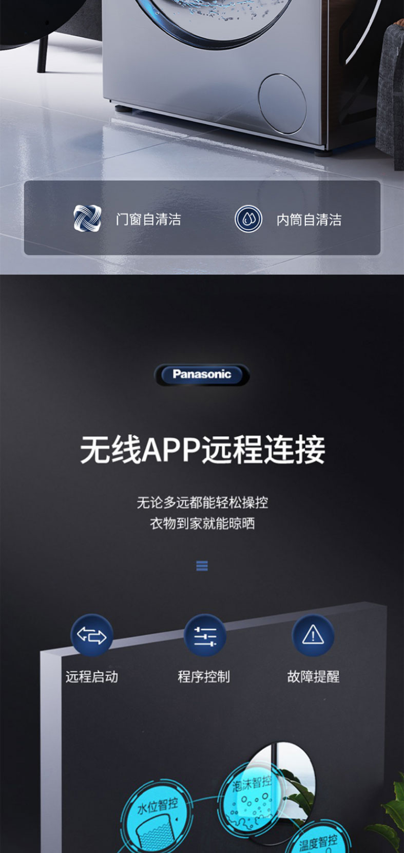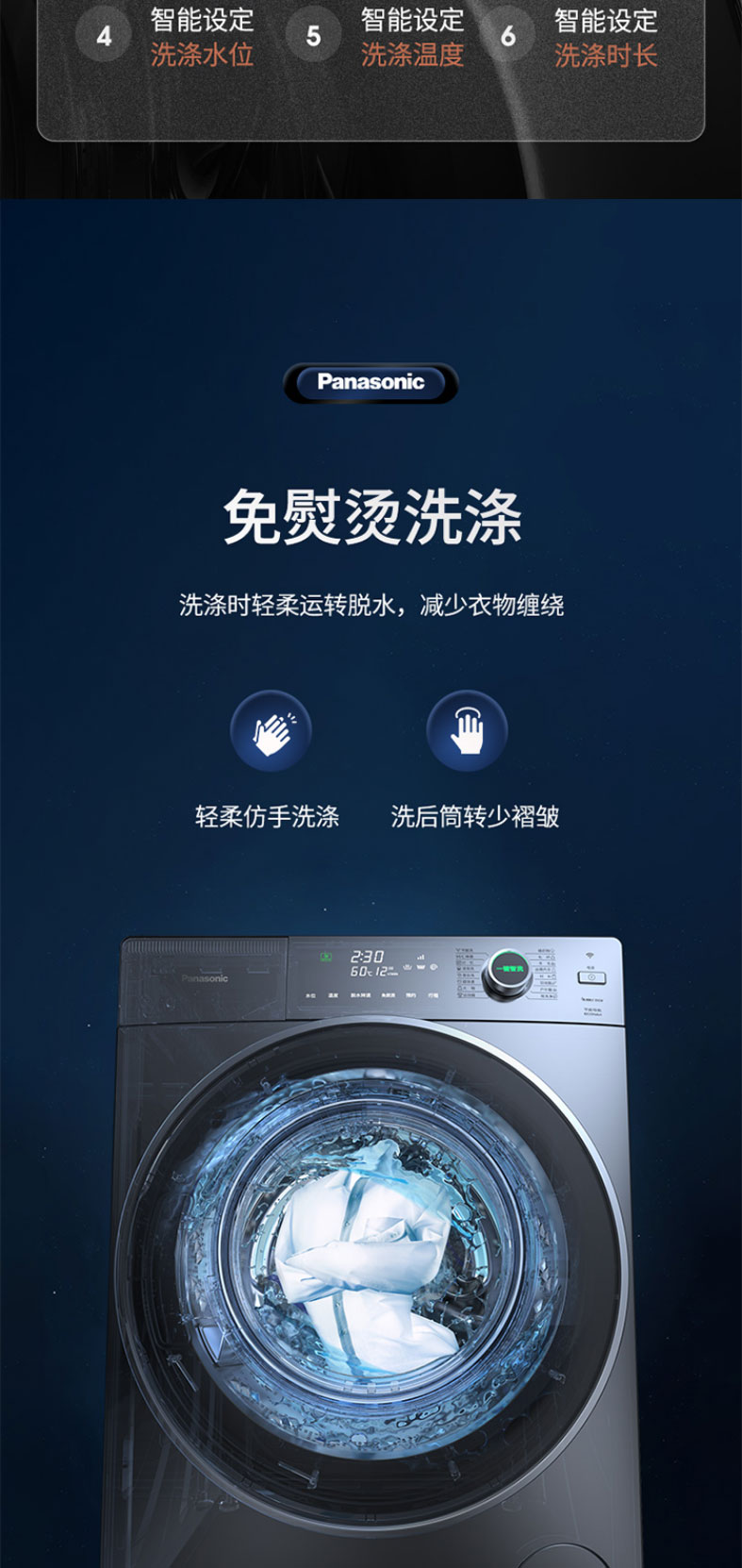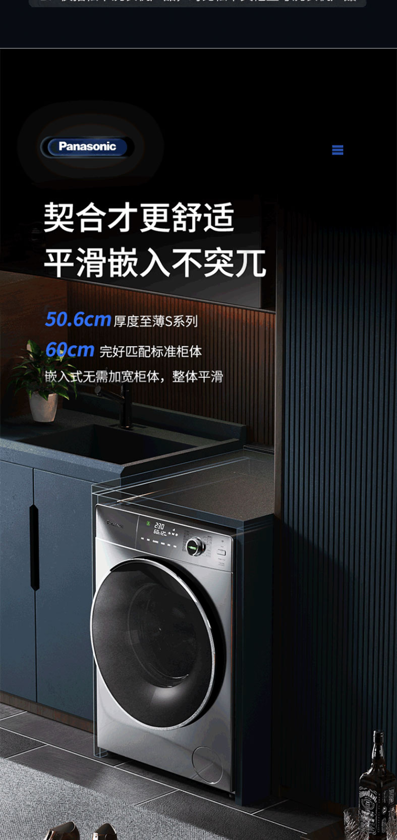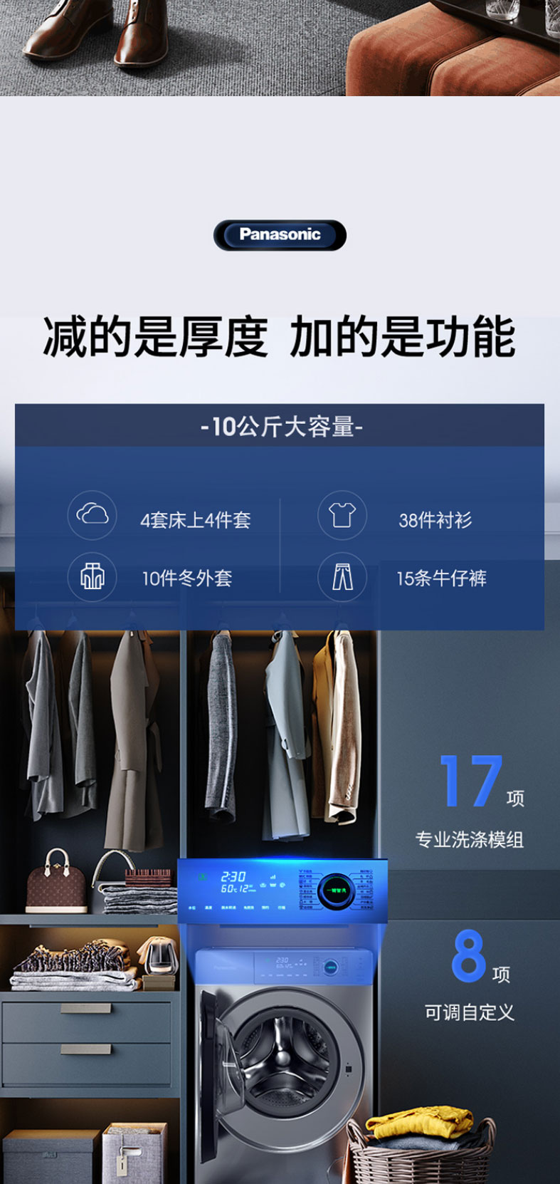 松下滚筒洗衣机全自动超薄10kg 50.6cm纤薄厚度 一键智洗XQG100-S135