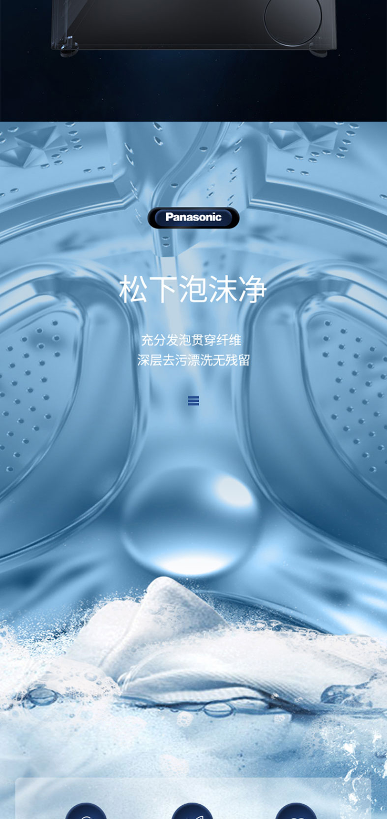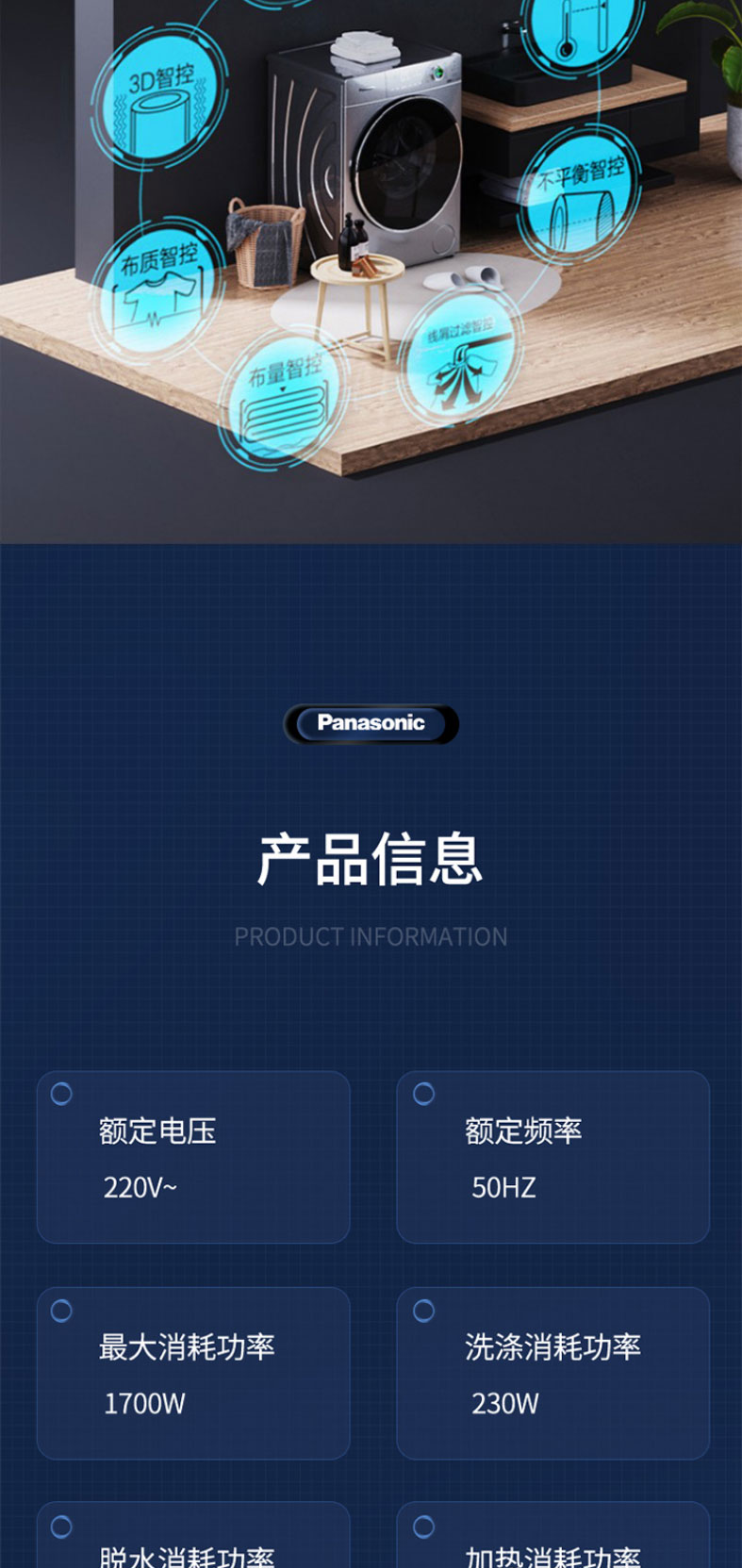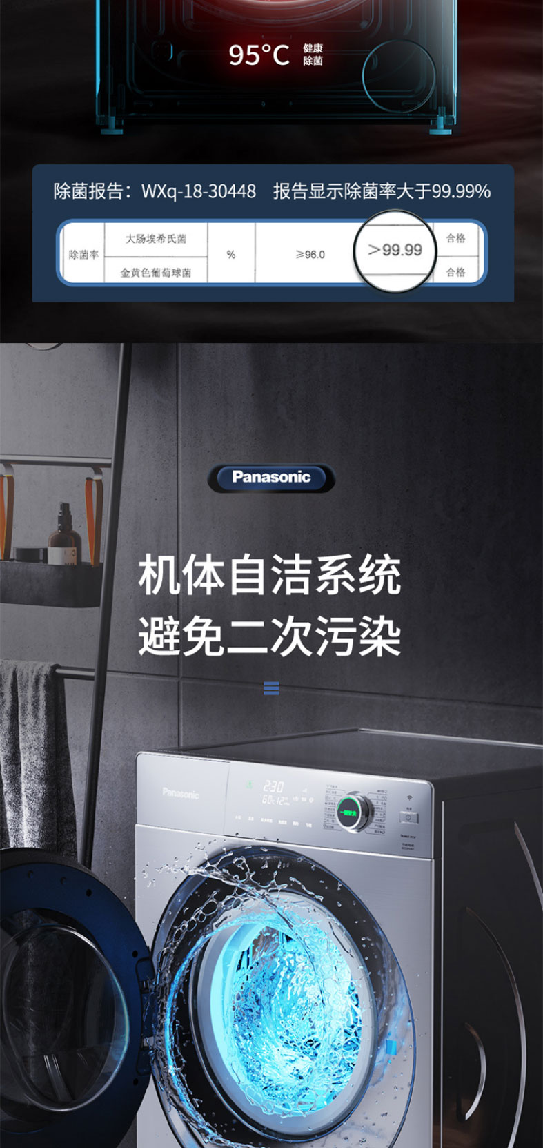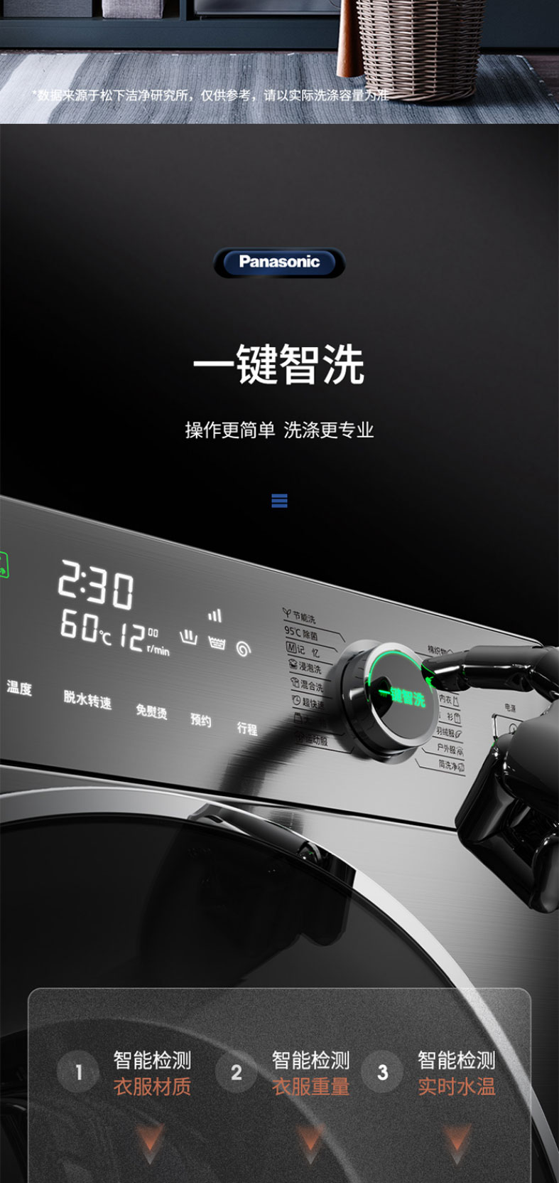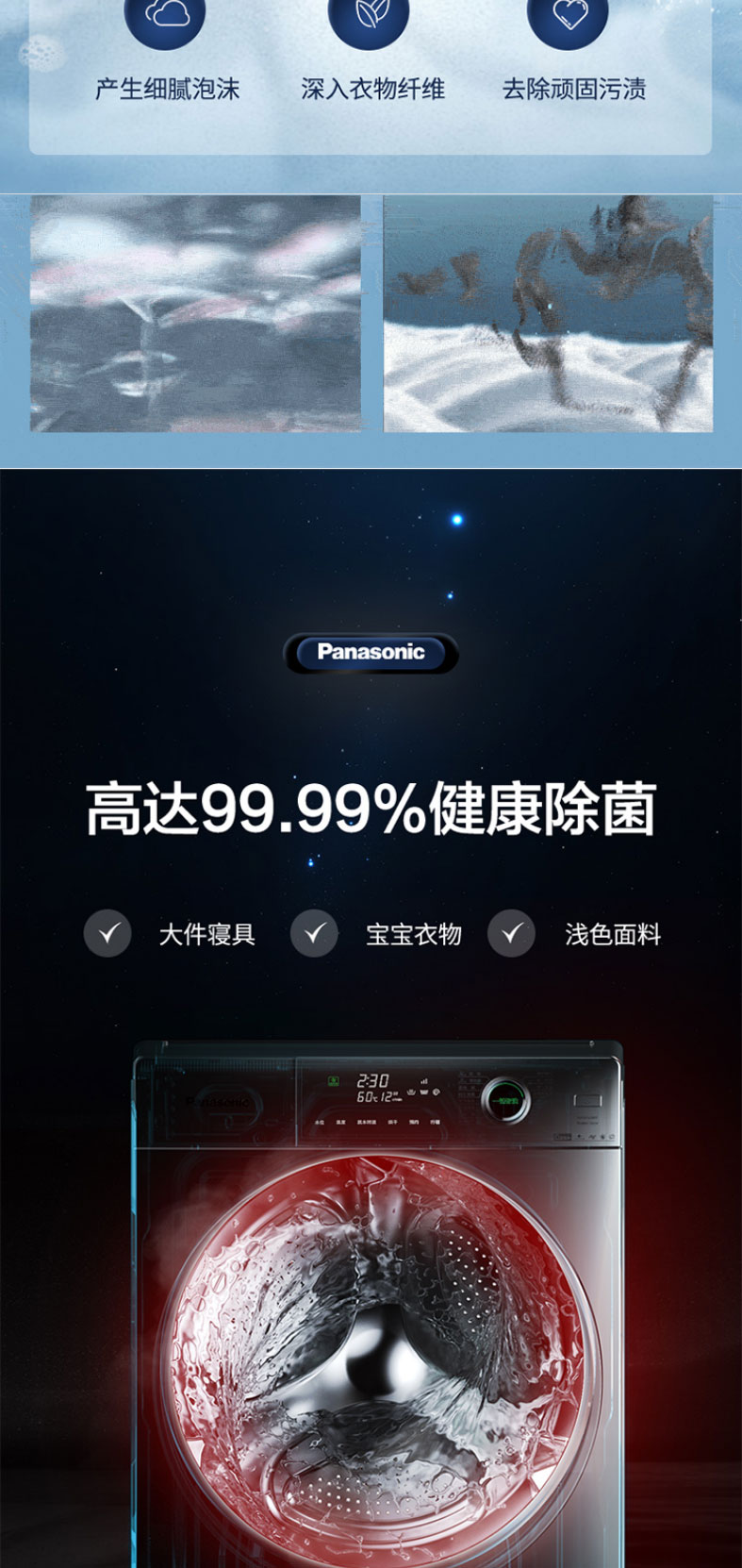 松下滚筒洗衣机全自动超薄10kg 50.6cm纤薄厚度 一键智洗XQG100-S135
