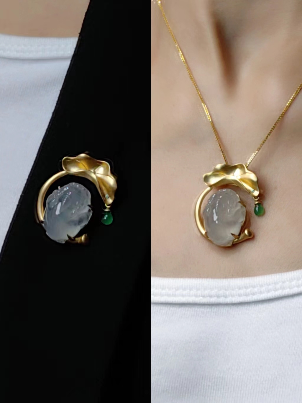 商 品:【戏荷】翡翠胸针项坠两用款