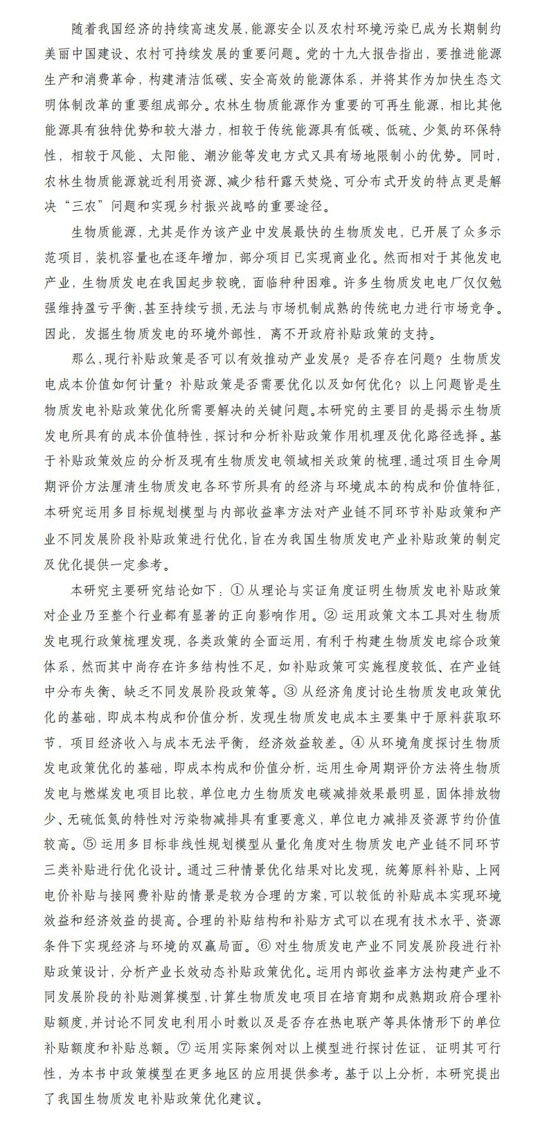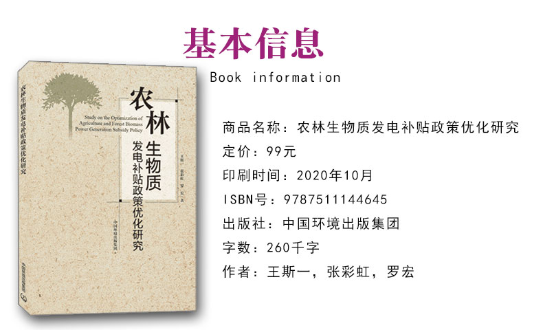 农林生物质发电补贴政策优化研究 中国环境出版集团 王斯一,张彩虹,罗宏 9787511144645